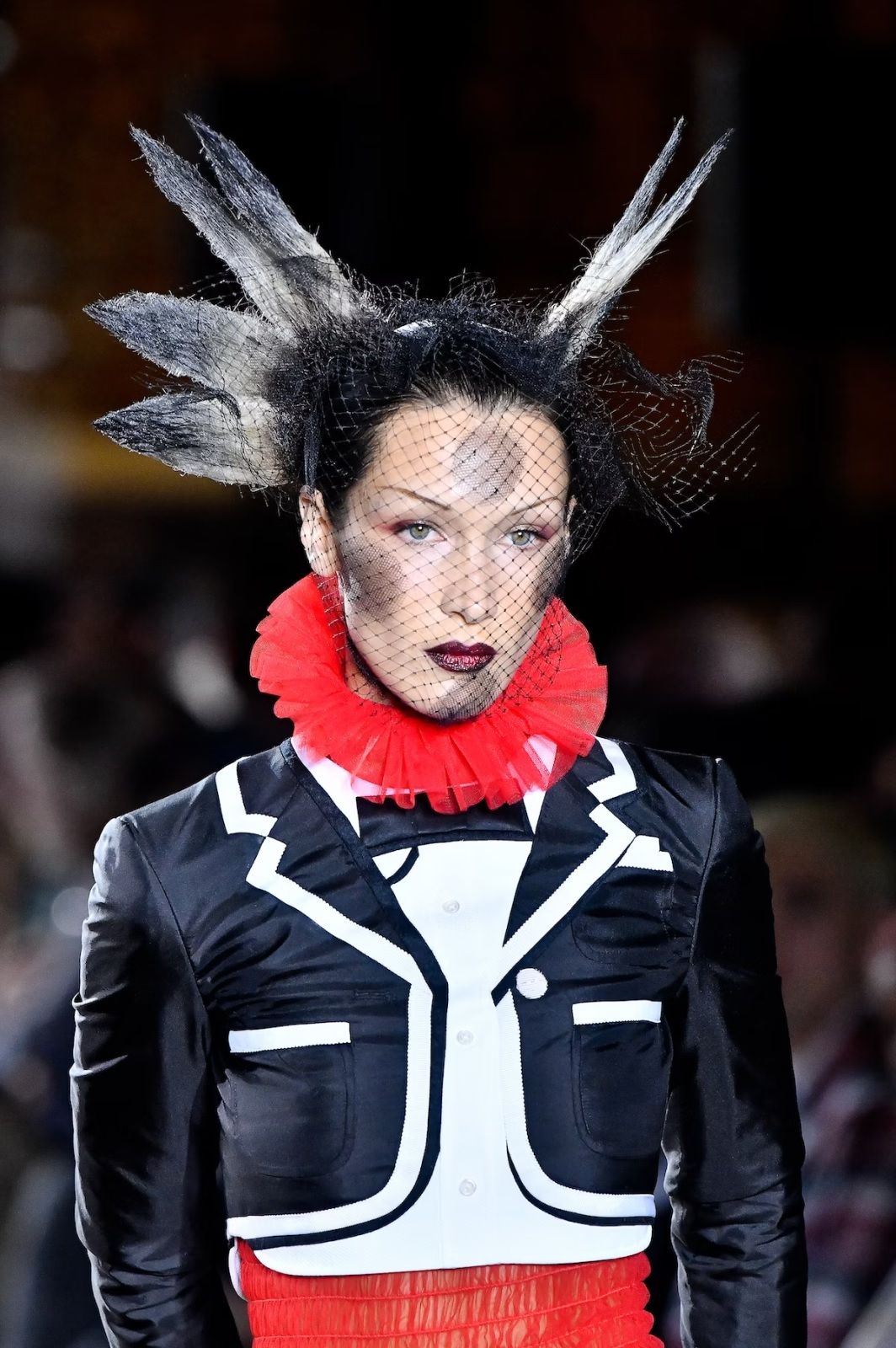 Have you ever seen one of those old-fashioned TV series or films in which the ladies of the upper middle class are very elegant, perfectly made up and have a handbag full of cruelty and snobbery as an accessory? Schiaparelli's models are just like that. If you want to be inspired by them for Halloween, you'll need tailored clothes, red lipstick and chunky gold jewellery. If you're more talented at crafting, you can try your hand at the dress made from fake nails worn by Kendall Jenner. Definitely scrachy!