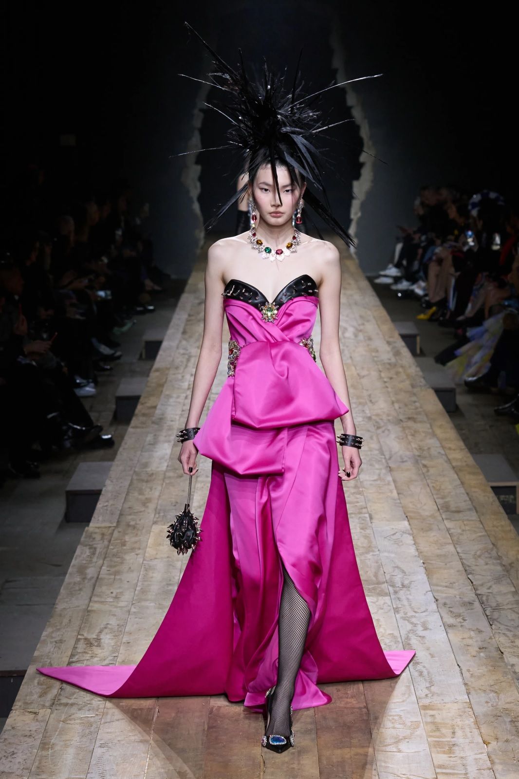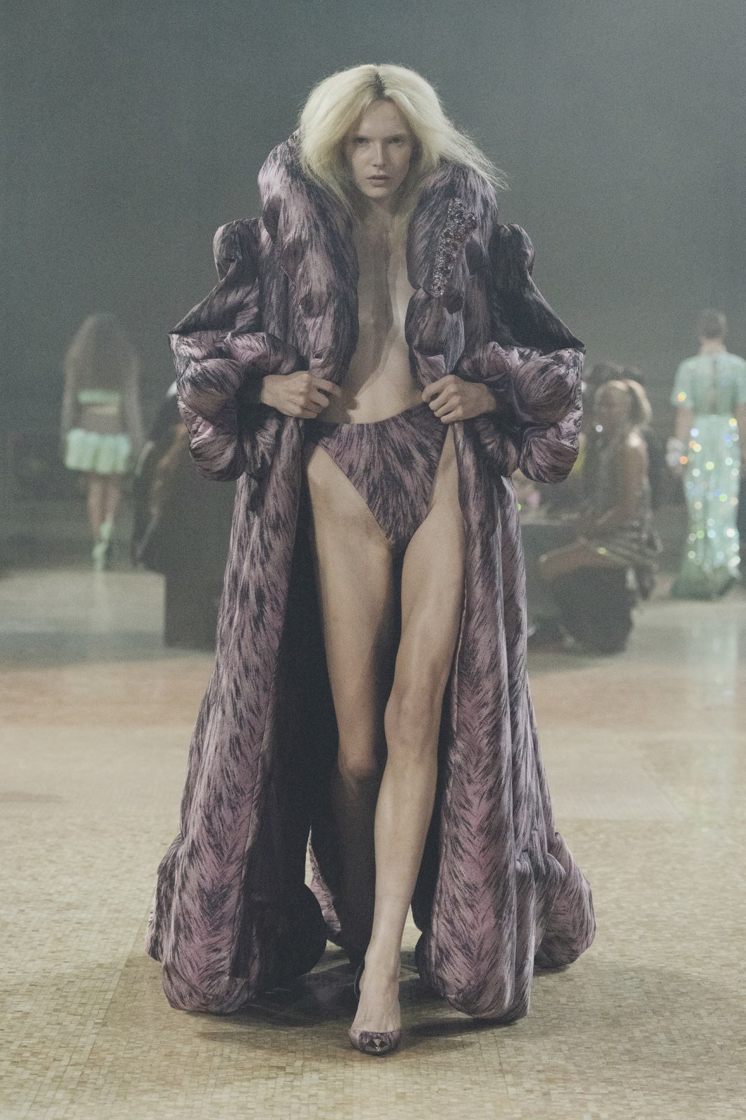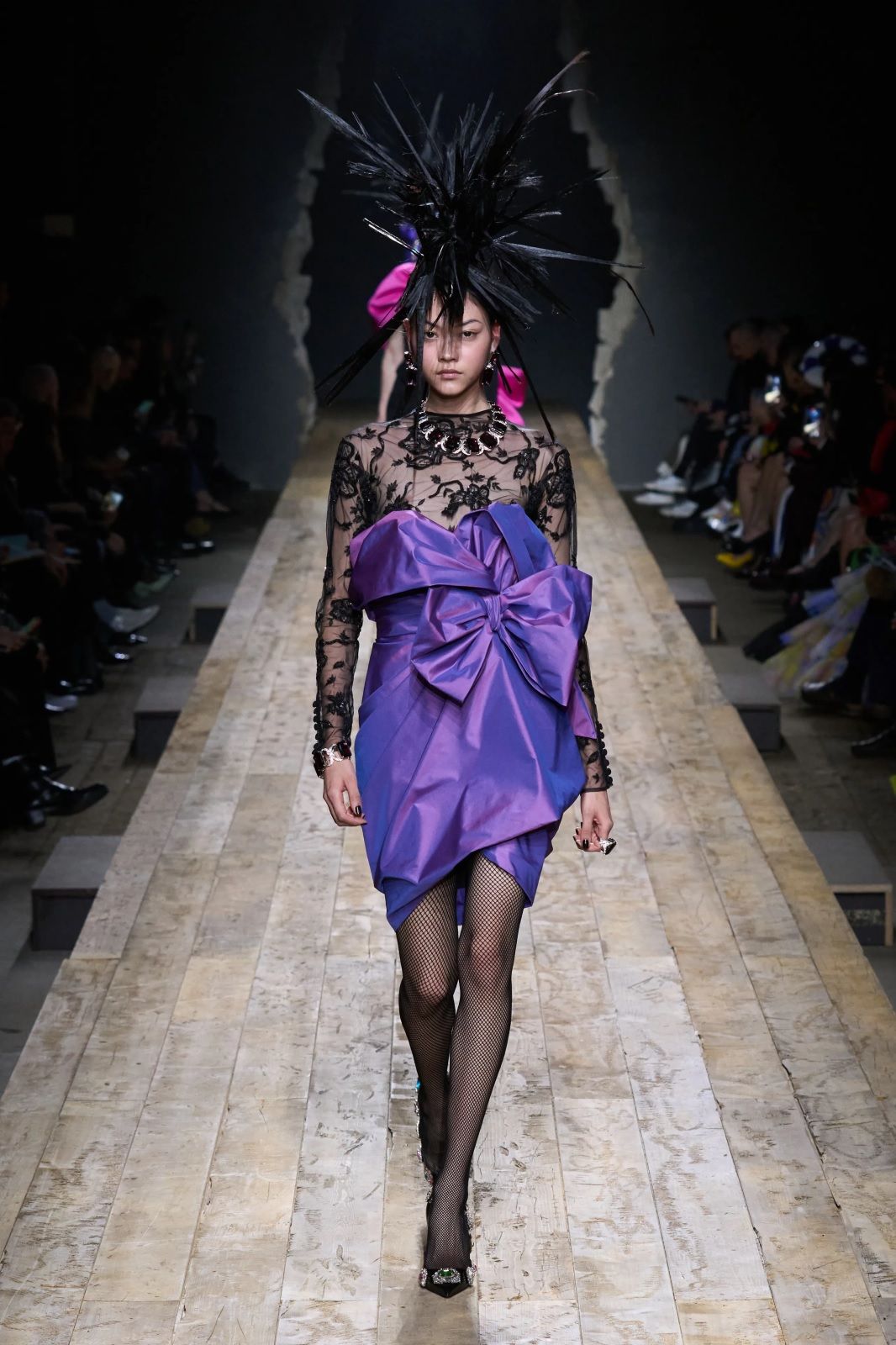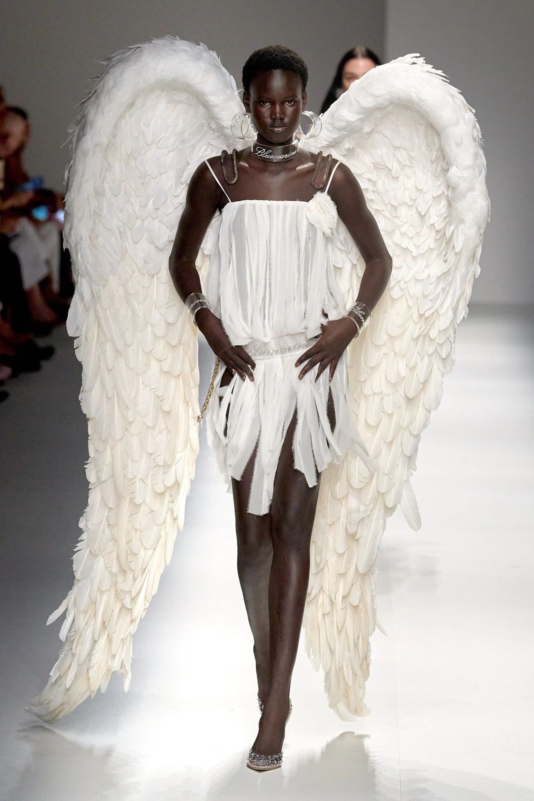Nicola Brognano brings a host of sinful and sensual fallen angels to the Blumarine catwalk. They have big wings on their shoulders and are dressed only in white, with touches of gold and little butterflies. Turning into one of them for Halloween is not difficult. Just find the wings, wear an all-white outfit and smudge some red eye shadow around the eyes.
