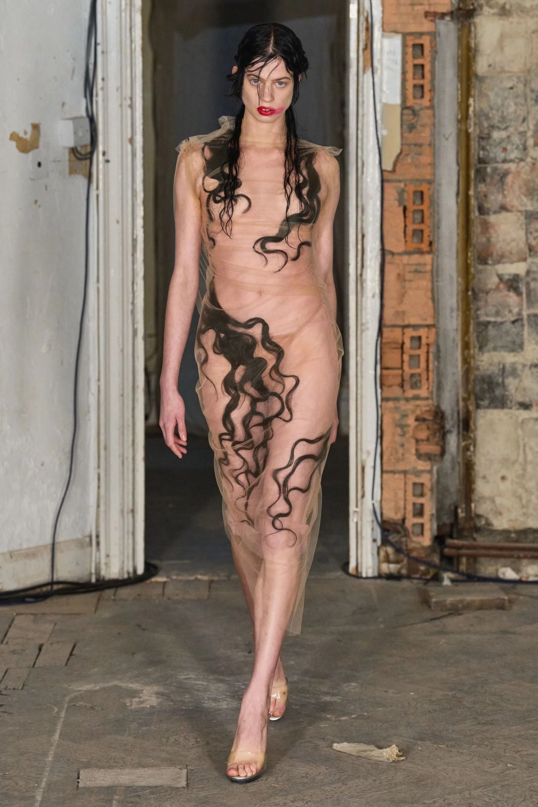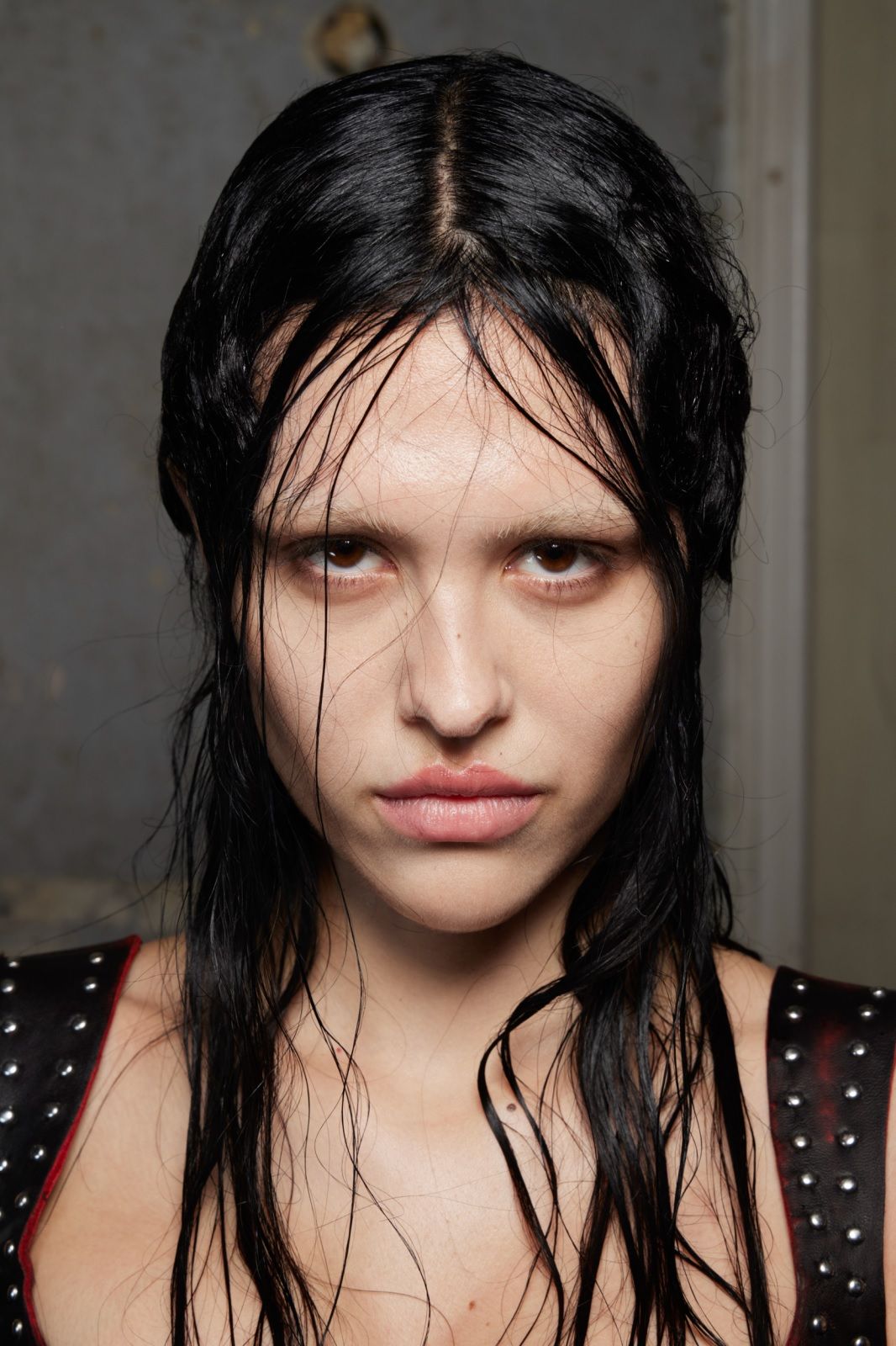 Beautiful and mysterious, Dilara Findikoglu's dark mermaids move with very long, wet hair made by Anthony Turner, wrapped around the body and illuminated by small pendants, smeared lipstick and see-through dresses that cling to the forms as if they had just come out of the water.