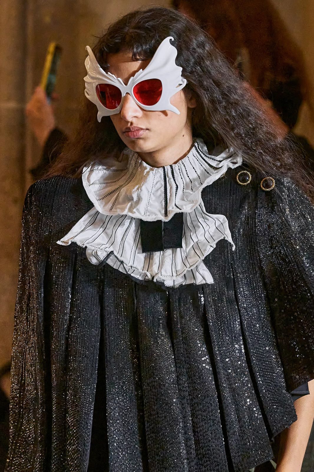 Halloween 2023 is coming soon. At least once a year, it can be fun to chase away the fear by dressing up - whether it's trick-or-treating in the neighbourhood or staying home and stuffing your face with sweets in front of Netflix with family, friends and roommates. To find the right inspiration and spice up our costume style, just take a look at the latest Fashion Months. Brands and designers love to explore the dark side of fashion, bringing intriguing veiled tangueros to the runway like Maison Margiela in its SS21 collection, romantic vampires like Louis Vuitton did in its SS22 show or Rodarte did in its FW20 show, ethereal aliens like Haider Ackermann, creepy red-eyed freaks like Balenciaga or witches with silver hair like Erdem.