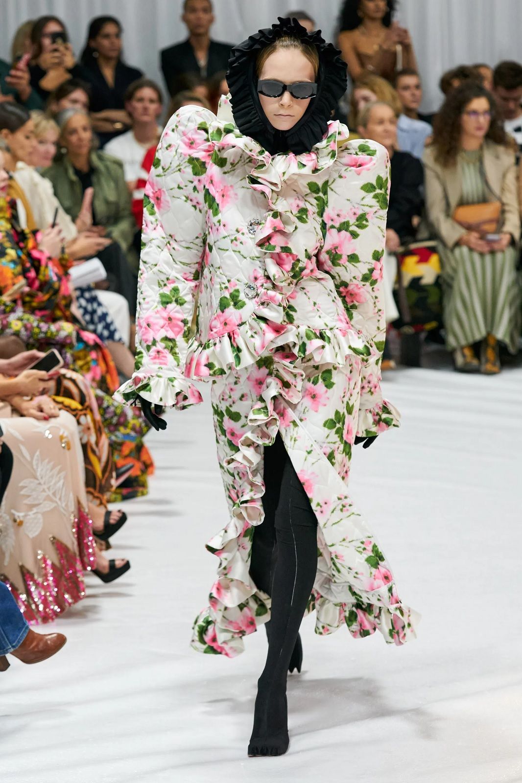 Quinn dresses models in floral prints and silhouettes that look like giant roses, sunflowers, lilacs and anemones. The result is strange, but perfect for Halloween, poised between a children's cartoon and a lysergic journey of Alice in Wonderland. For those who want to face the night of the witches with a more sunny and fun mood, but without renouncing to a touch of weirdness.