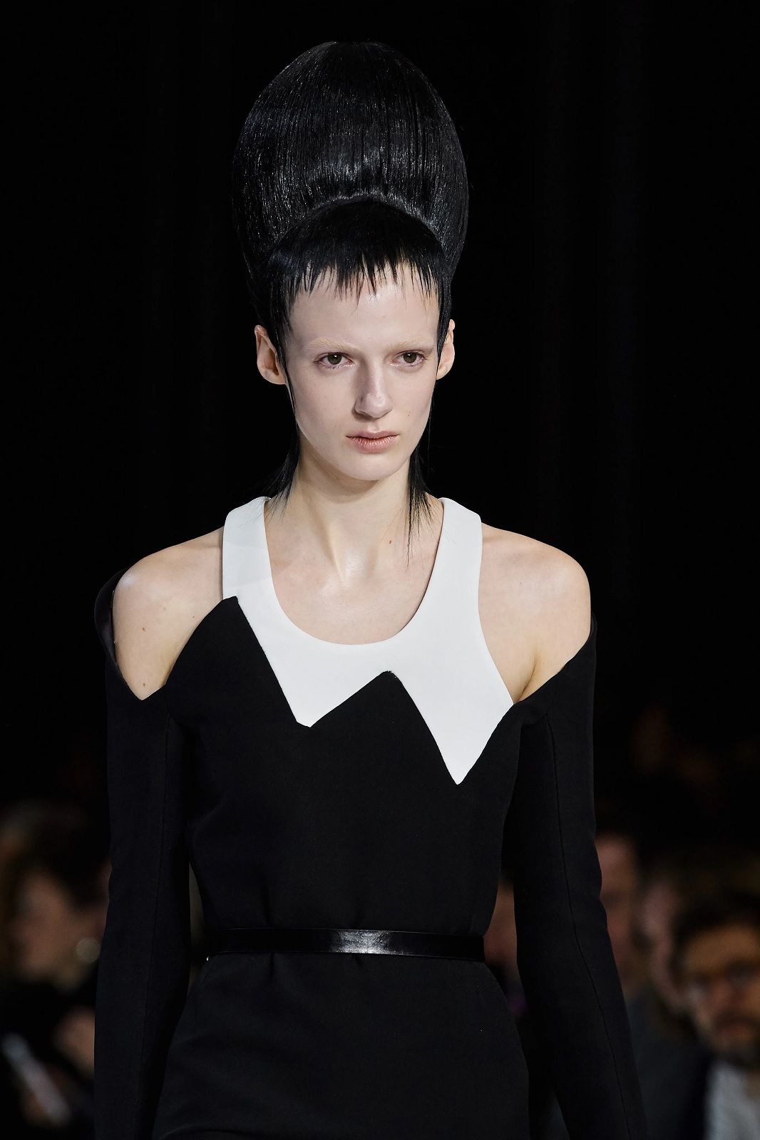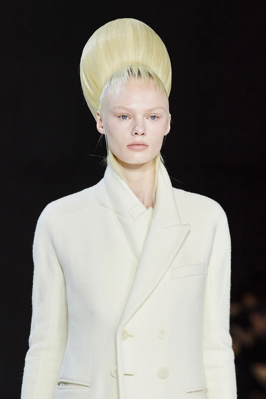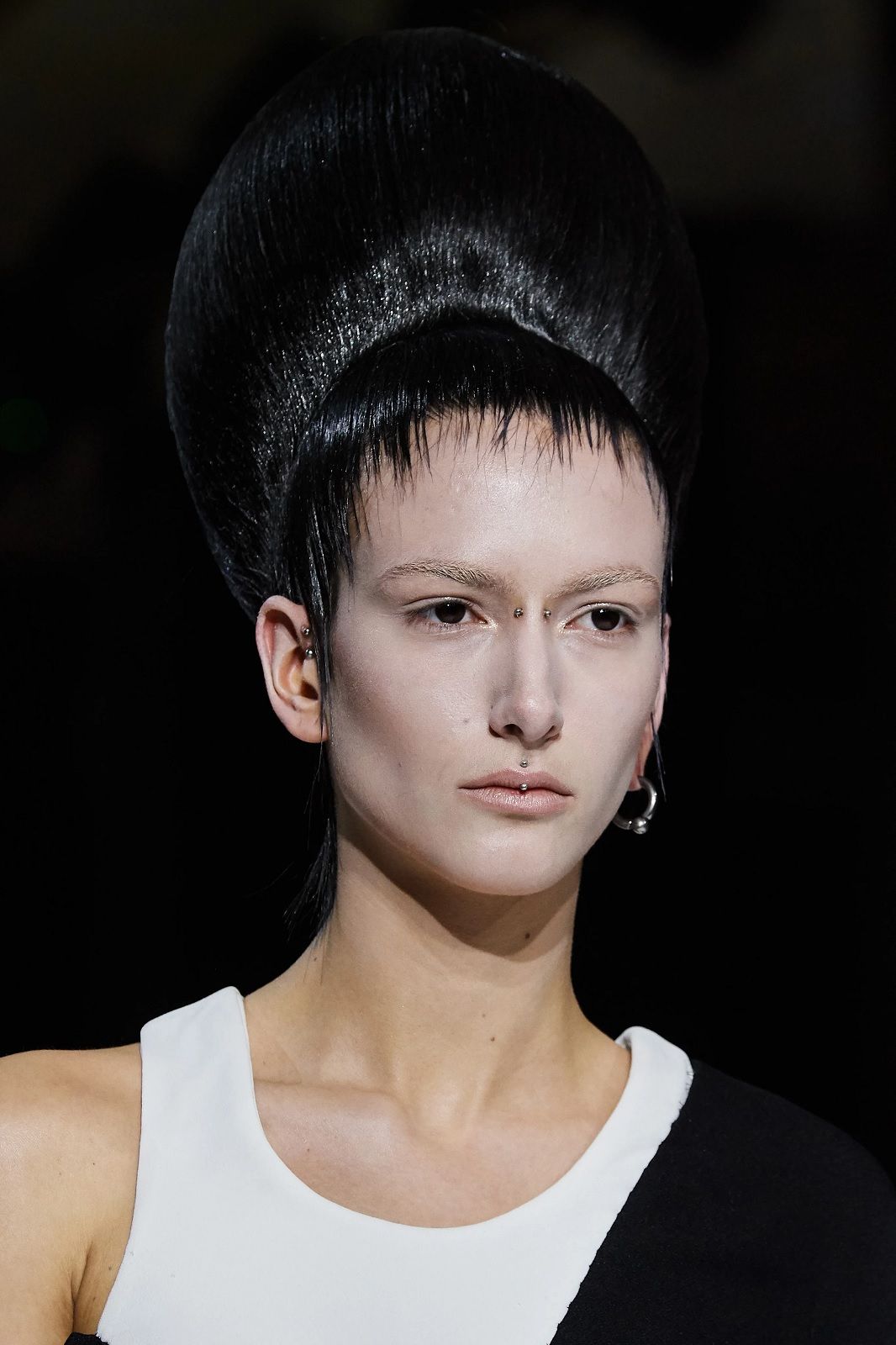 Haider Ackermann's genderless universe, with its sleek and conceptual fashion, brings alien creatures on the catwalk that look like a hybrid between the icy heroines of Alfred Hitchcock's movies and the huge-headed character played by Lisa Marie in Tim Burton's Mars Attacks!. If you want to copy one of these looks remember to wear a total black or total white outfit, to erase the eyebrows, make the skin as pale as possible and recreate the huge hairstyles as best as you can, maybe with the help of extensions or a wig.