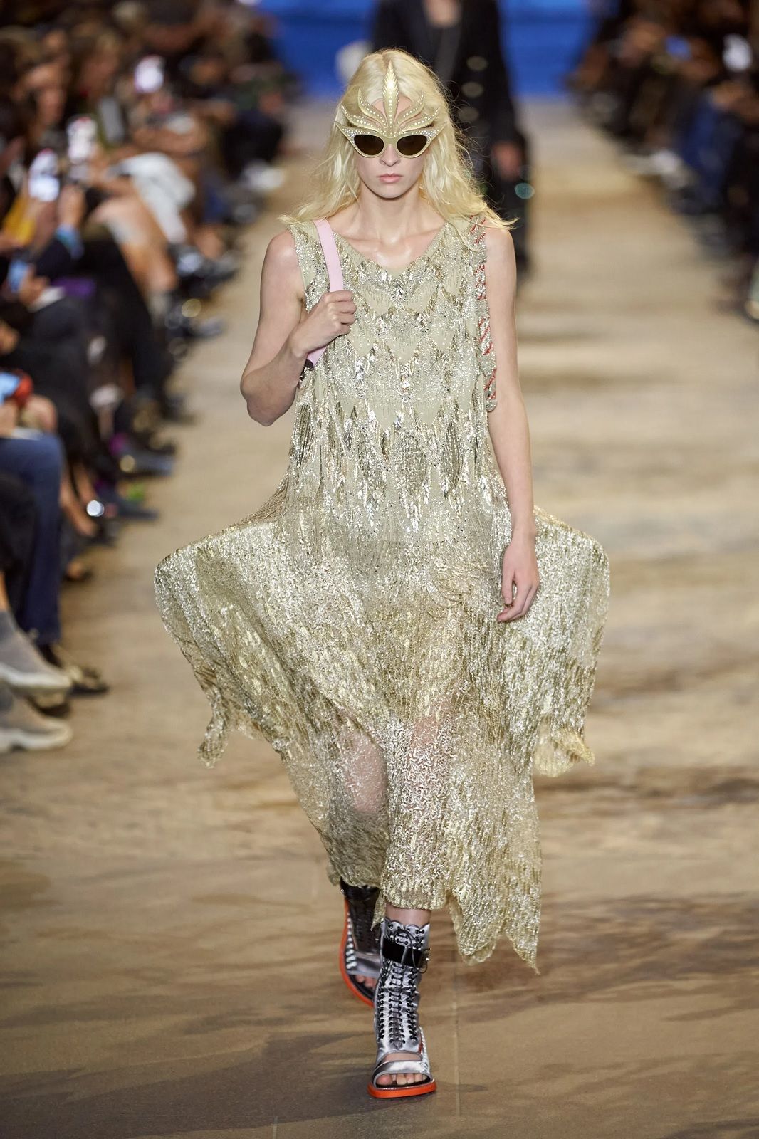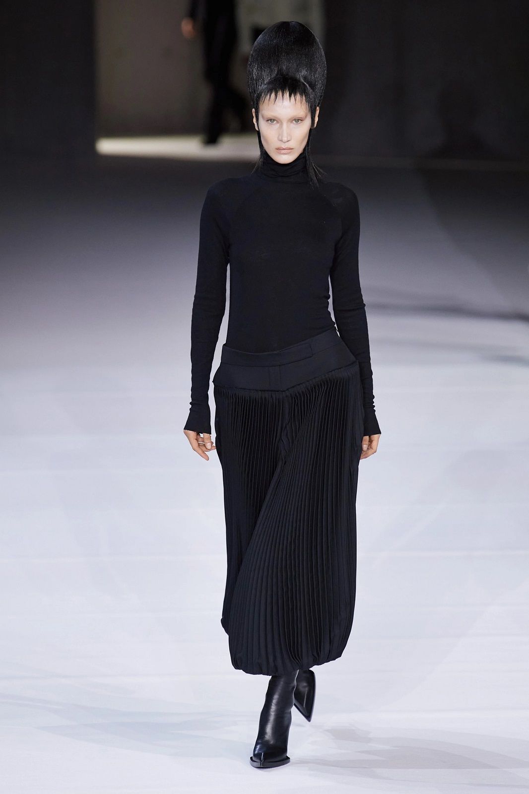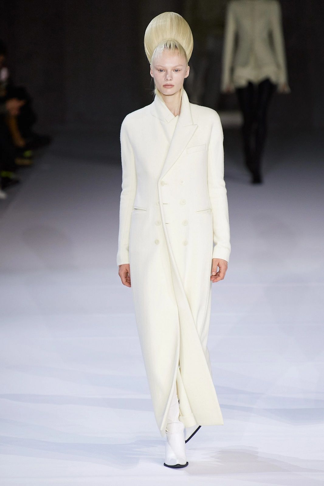 Haider Ackermann's genderless universe, with its sleek and conceptual fashion, brings alien creatures on the catwalk that look like a hybrid between the icy heroines of Alfred Hitchcock's movies and the huge-headed character played by Lisa Marie in Tim Burton's Mars Attacks!. If you want to copy one of these looks remember to wear a total black or total white outfit, to erase the eyebrows, make the skin as pale as possible and recreate the huge hairstyles as best as you can, maybe with the help of extensions or a wig.