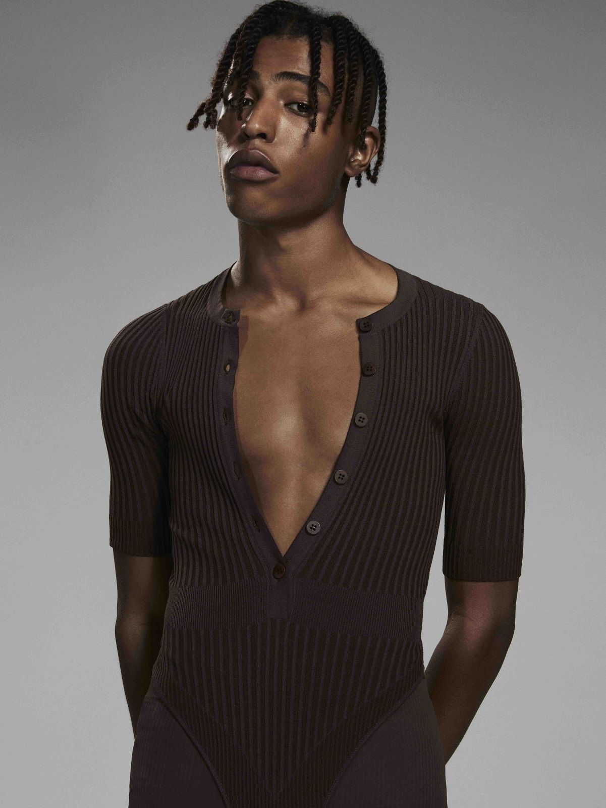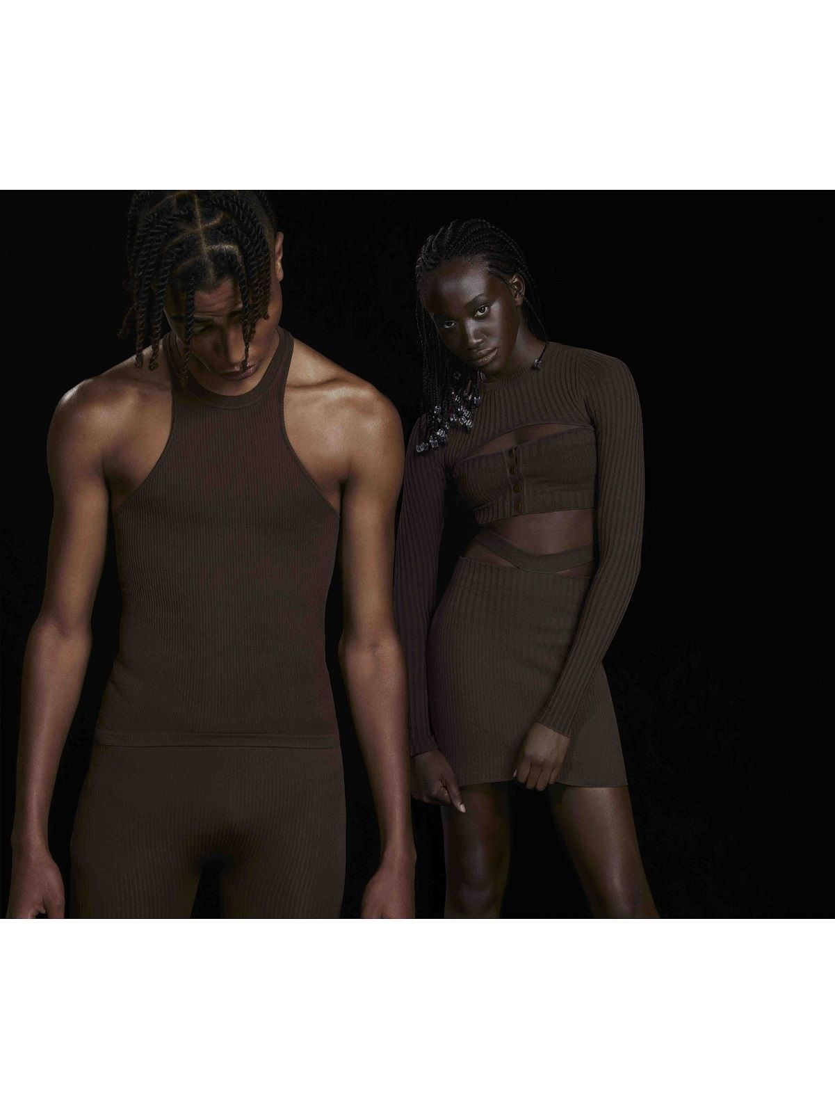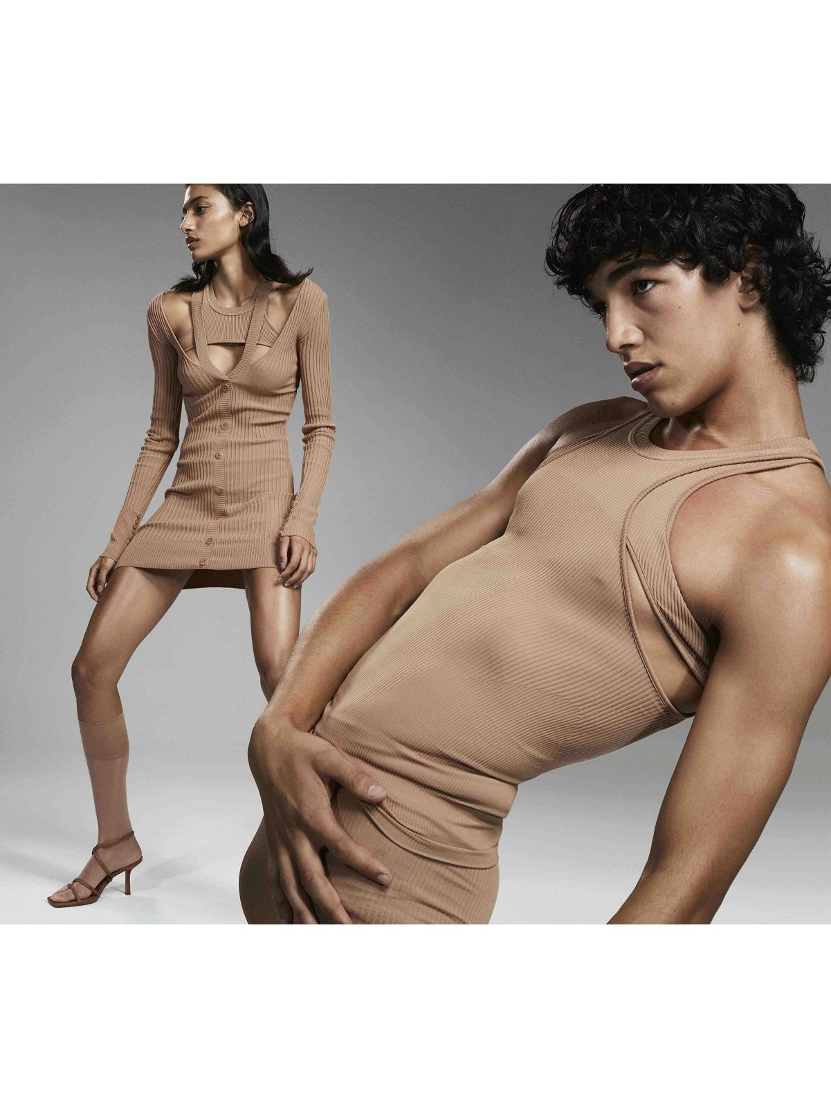 This is how NUDO was born, an SS21 collection based on the idea of inclusiveness, bodysuits positivity and genderless introducing a series of jersey and second-skin pieces, made without seams and available in leather shades: tank tops, cotton harnesses, cyclists, leggings and knitwear bodysuits, sequins and bodycon dresses. Among the most interesting offers there are two items that have become must-have in the last seasons: shapewear and the bodycon dress with cut-out details revealing the underwear, which Andrea Adamo inspired by some antique vases seen in an exhibition in Malpensa.