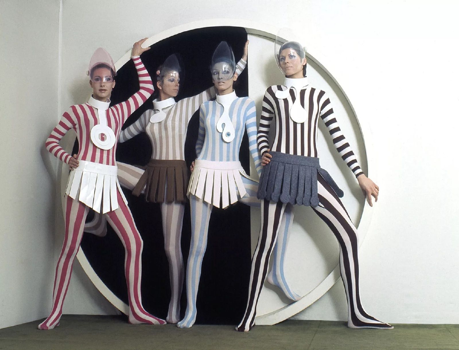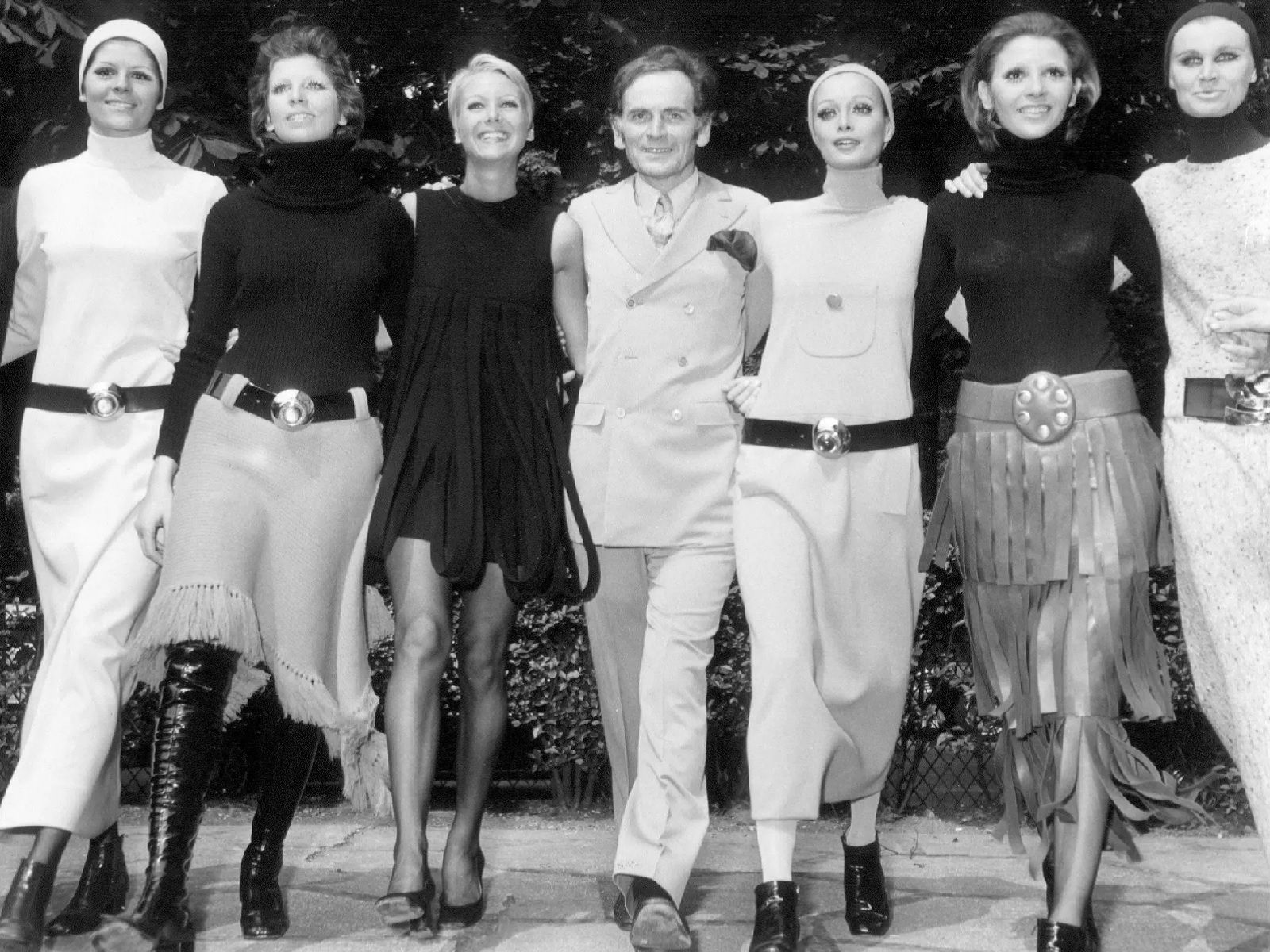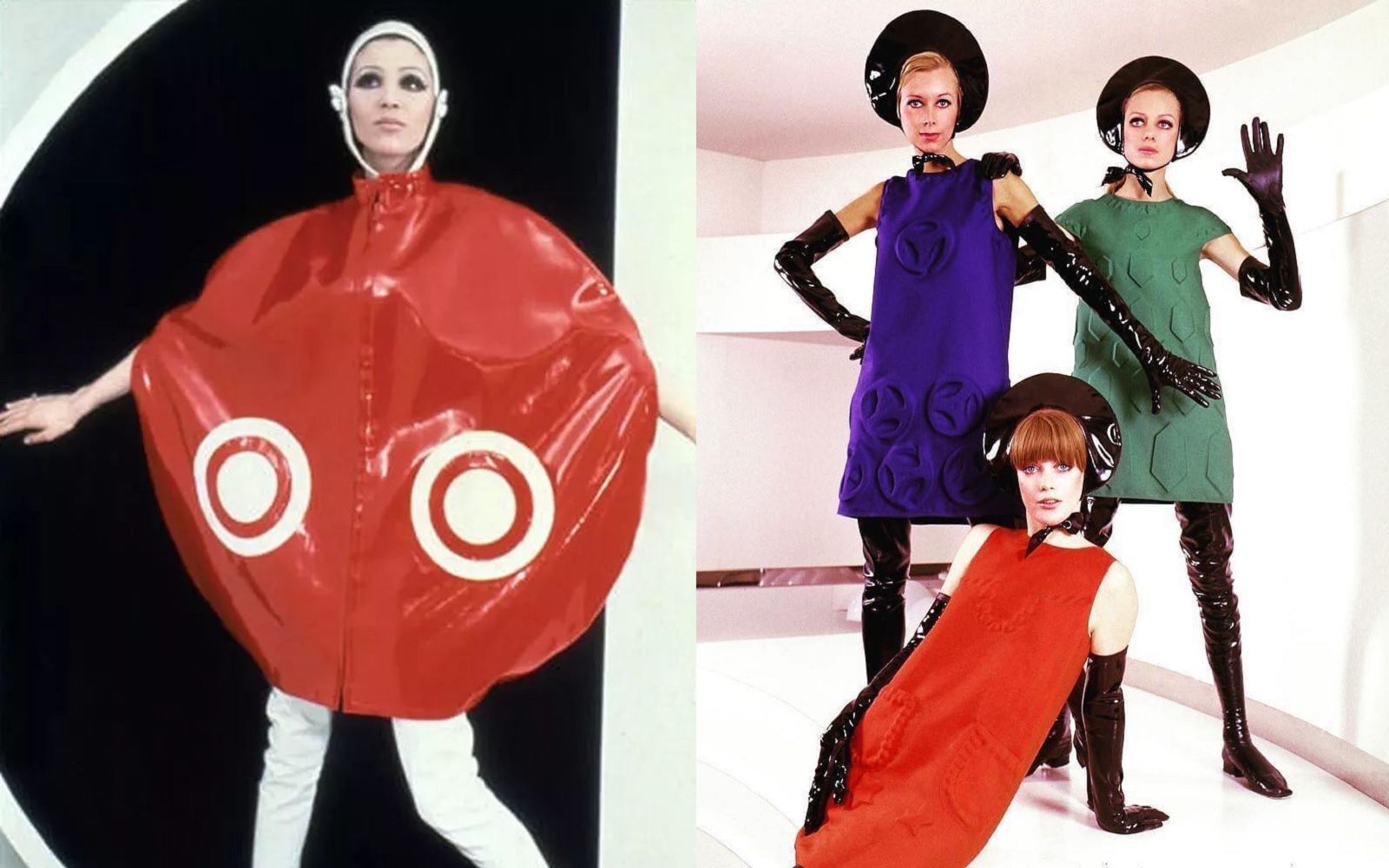 With these words, said in a lengthy interview with France Culture, Cardin tried to explain the origins of his creative process. His style was the child of an extremely personal vision, inspired by the motifs and colors of Pop Art and Op Art, but, above all, by the Space Age, the era of the race to the moon. He loved unisex pieces, experimentation with lines and materials, geometric shapes, especially circular ones that suggested the idea of his most iconic garment: the Bubble Dress. Did you know that it was also a tribute to the Bubble House, his famous summer residence built in collaboration with the architect Antti Lovag. He was obsessed with the future, with creating the garment that would dress tomorrow and, for this reason, he conceived his clothes as if they were sculptures. He mixed cut-outs and tight-fitting catsuits, tight leather pants and sweaters with bat sleeves, space glasses and geometric hats, miniskirts and PVC dresses. Like Paco Rabanne and André Courrèges, he preferred vinyl and metal to traditional fabrics, to the point of repeating:
