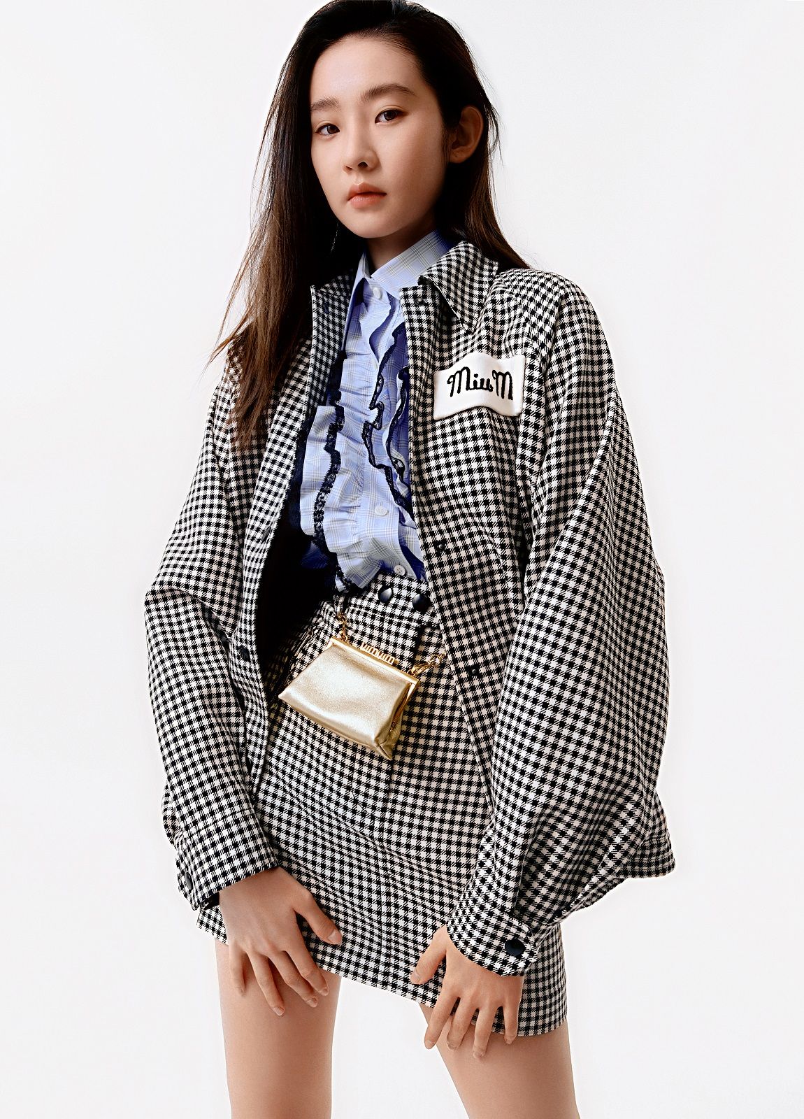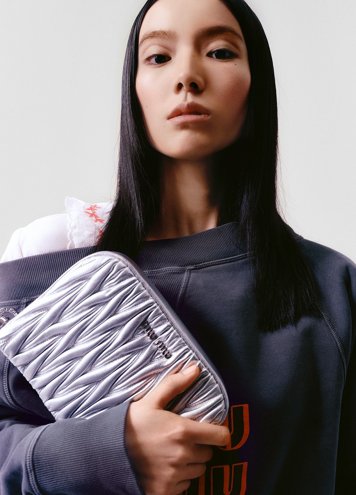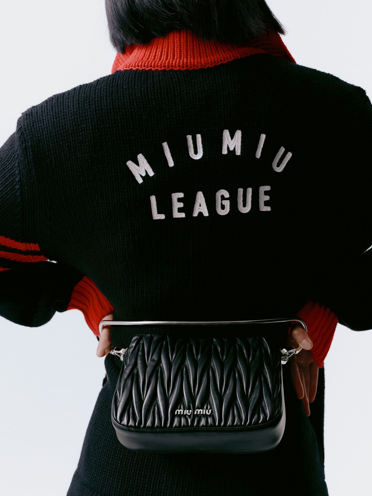 Actress Qiu Tan, teen idol Yifan Zhang, along with models Gu Xue and Yuru Zhang, make their debut as the faces of the brand wearing a mix of tailored pieces, sportswear and college style. Sweatshirts, wool crop sweaters, leather jackets, shorts, miniskirts and tops emblazoned with "Miu Miu Club" are spiced up with accessories. The Miu Belle and the Mini bag with their matelassé texture, the sneakers embellished with jewel details, the glittery slingbacks and the sparkling crystal necklaces give the looks a touch of femininity and irresistible exuberance.