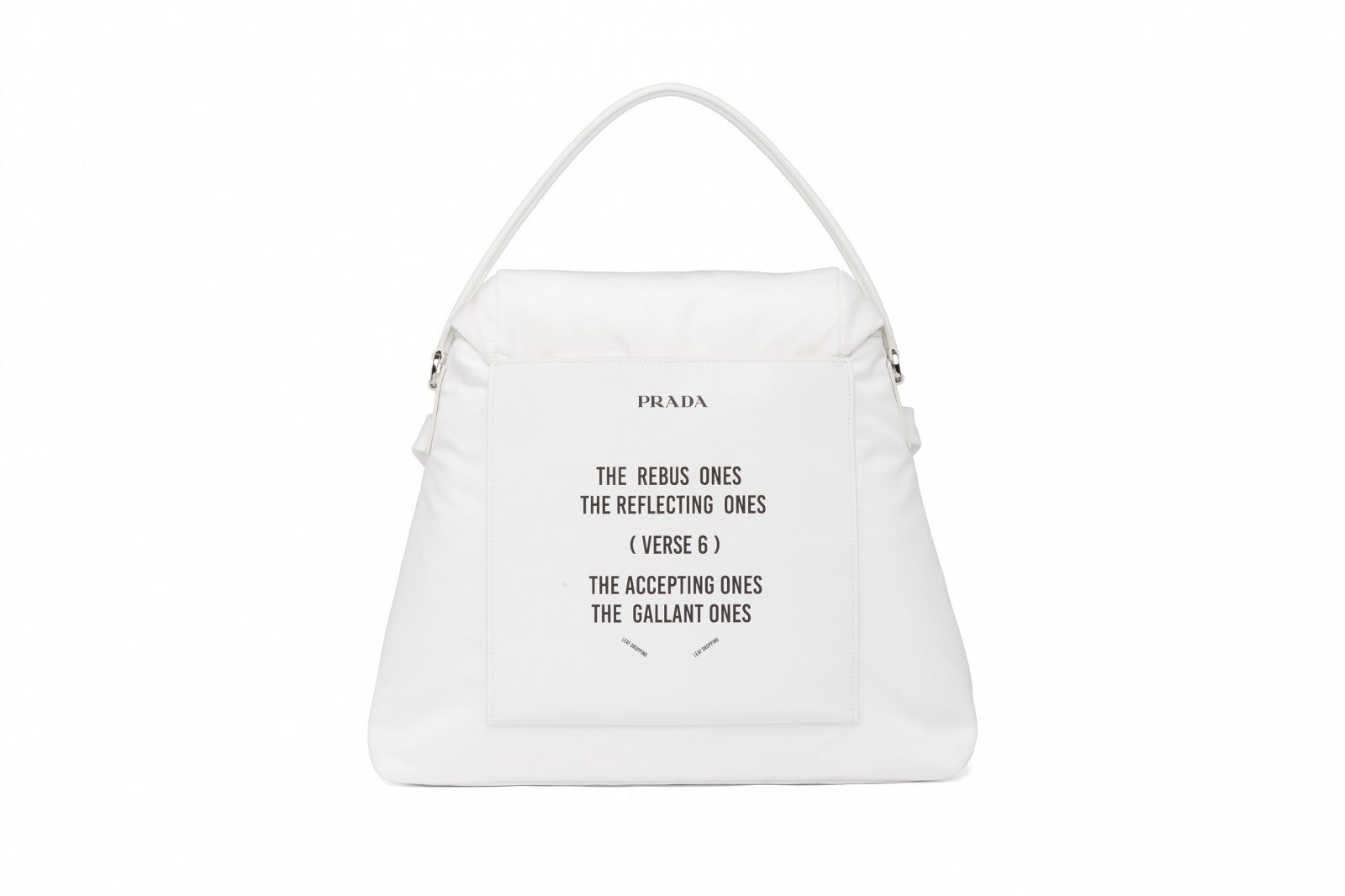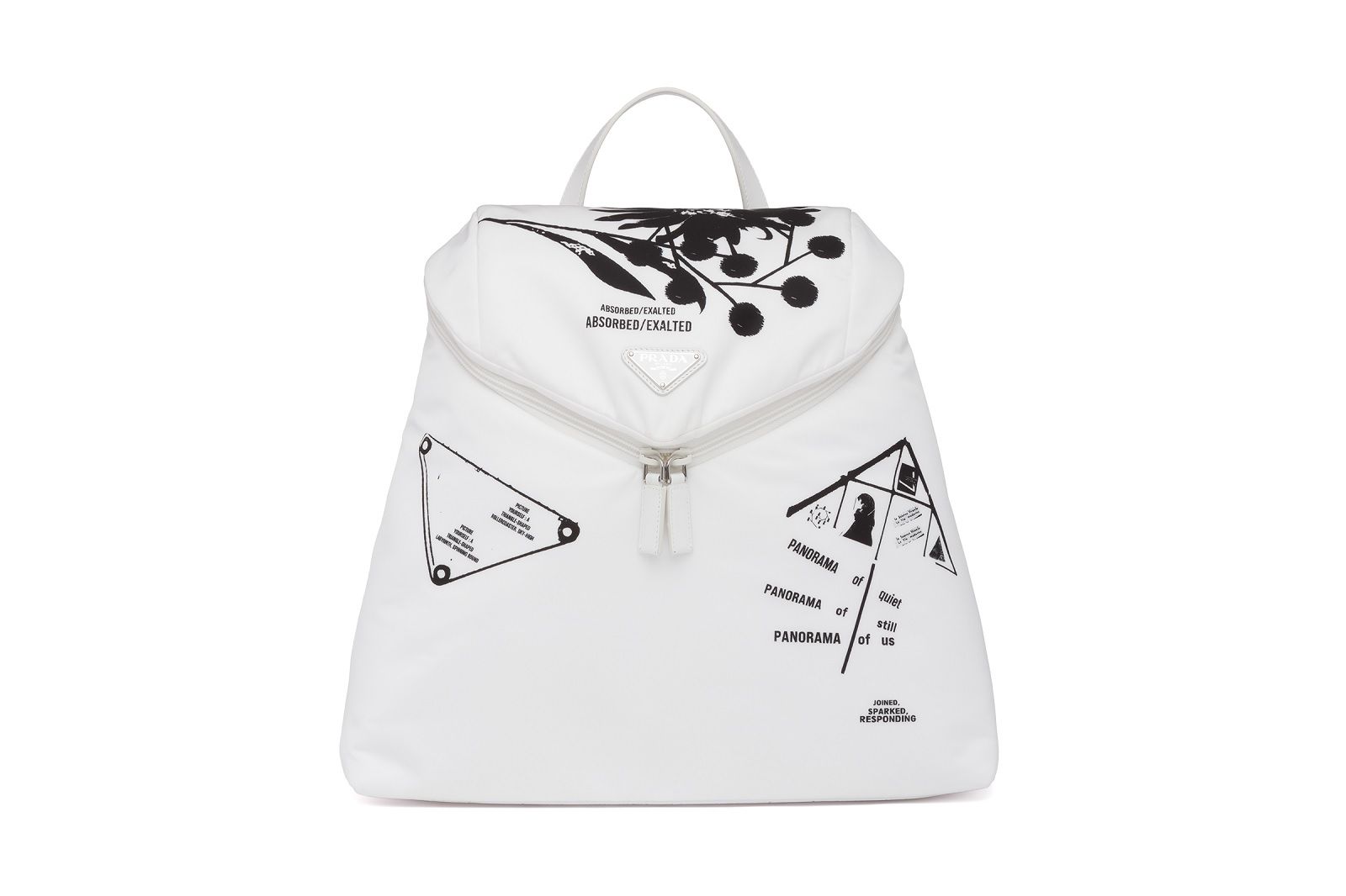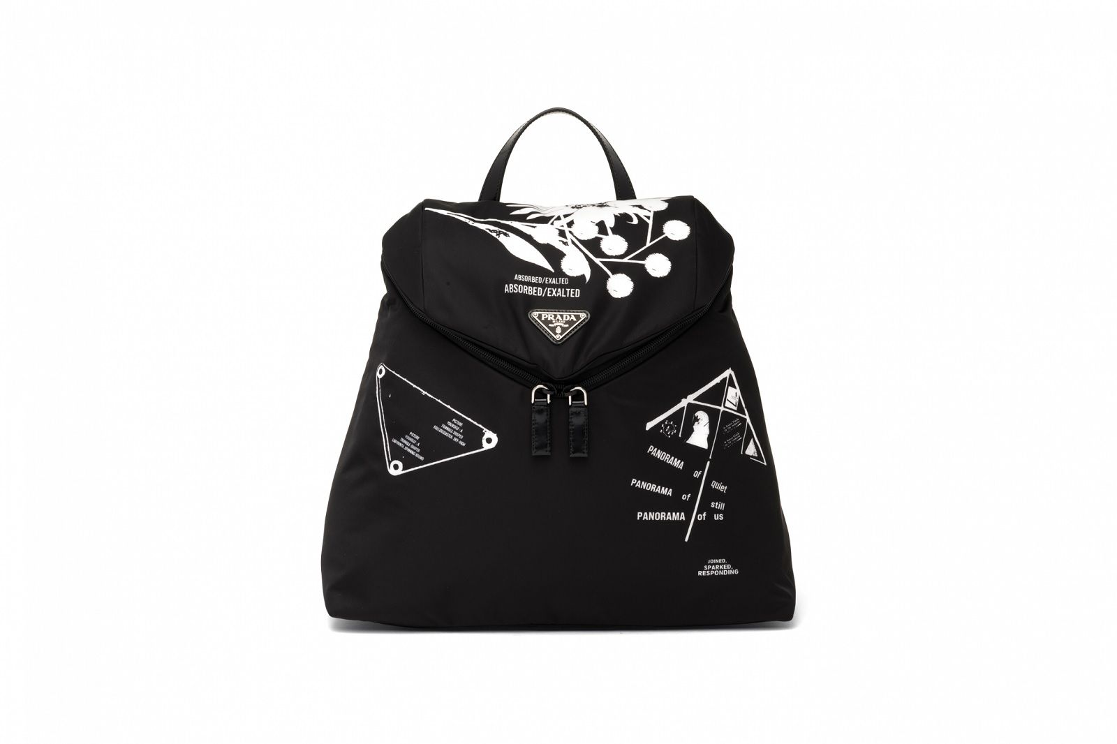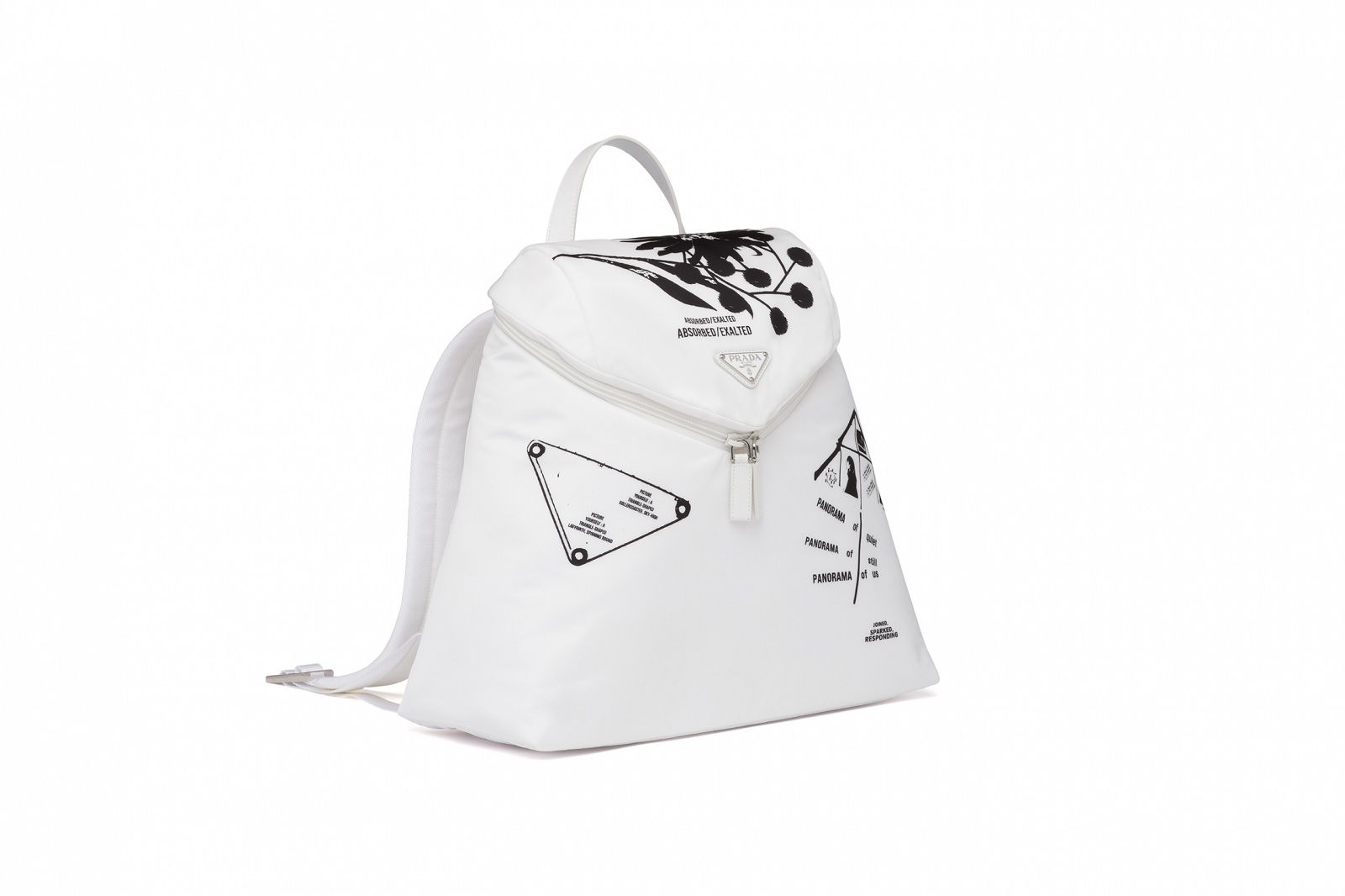 Prada's iconic nylon backpack is now updated with new prints taken from the works of Peter de Potter. The contrasting graphic designs (white on black or vice versa) break up the uniform and monochromatic surface of the item, becoming, as the brand itself says, the canvas of "worlds and aesthetic dialogs".