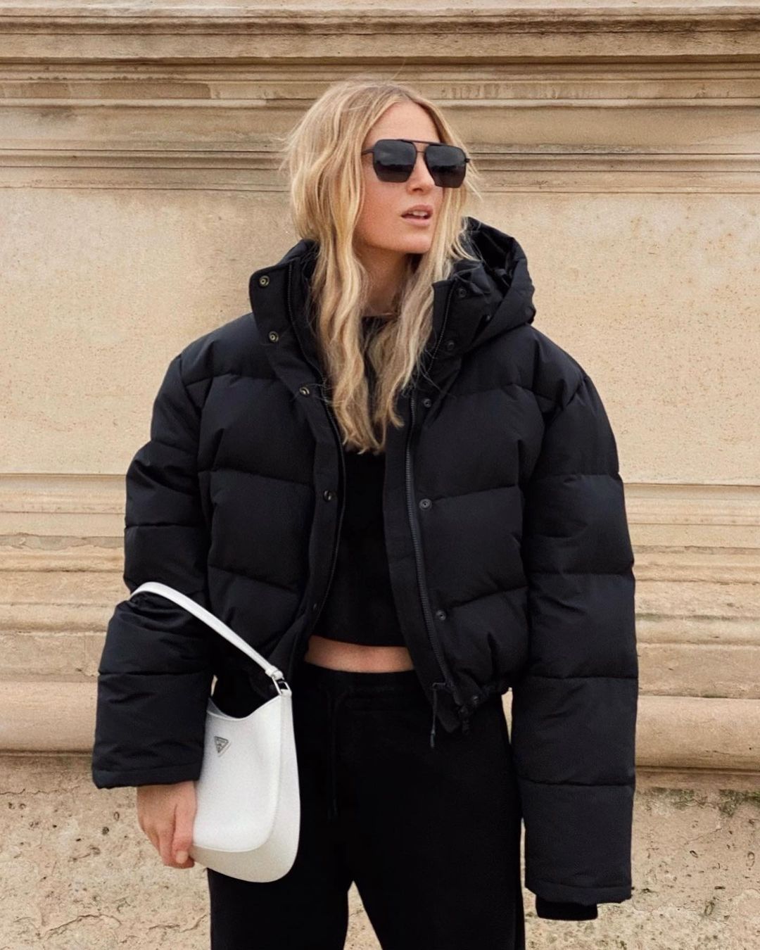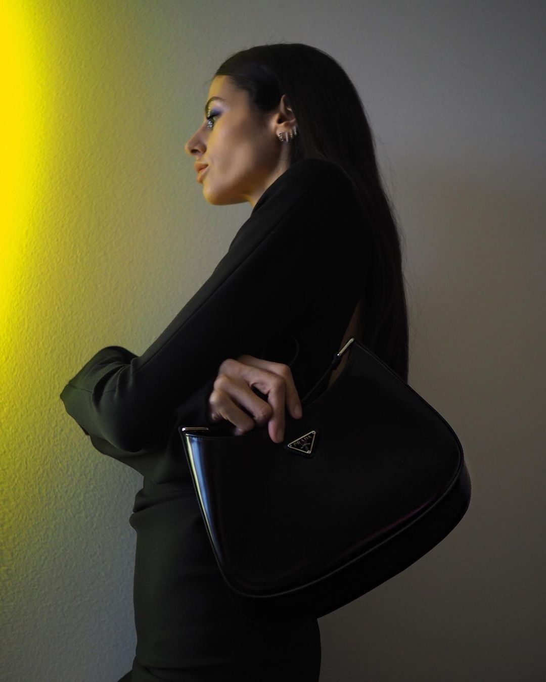 The must-have of the collection is the Cleo bag, which appeared for the first time in the Multiple Views fashion show and is already a favorite of influencers such as Chiara Ferragni, Gilda Ambrosio and Caro Daur. With its essential lines enhanced by the choice of brushed leather, the accessory is a reinterpretation of Prada's design in the 90s, a perfect "synthesis of classicism and futurism". Available in many colors, from classic black to teal, it is declined in two variants: with a top flap and with an open top. Although its slightly rounded shape at the bottom is designed to hug the body when you lay it over your shoulder, it can be worn in different ways. A few examples? Held by the handles as if it were a clutch or hand-held, clasped across the chest like the models on the runway.