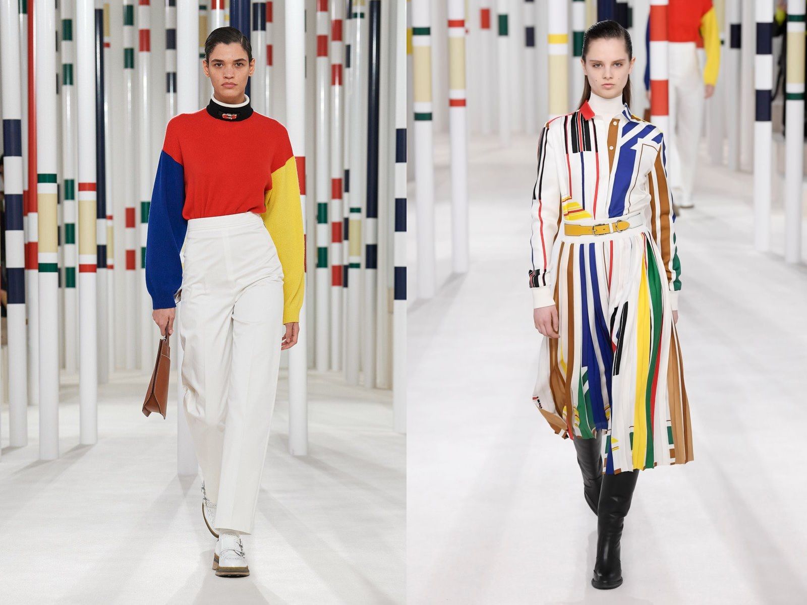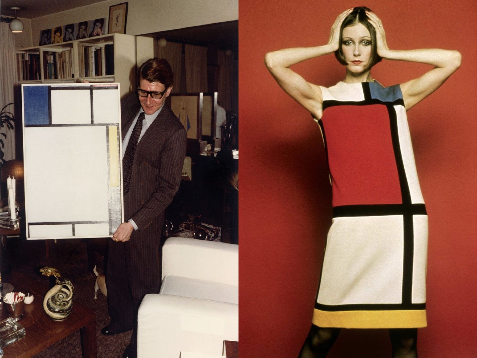 The Dutch painter's Neo-Plasticism and, in particular, his famous "colour-blocked" paintings, made of contrasting shades of black and white combined with red, blue and yellow, which he began to create towards the end of 1919, inspired the designer to create the 1965 autumn-winter Haute Couture collection, one of the most important and influential examples of the marriage between art and fashion. Amongst the many items on the catwalk, Mondrian's collection became famous for six cocktail dresses, known as De Stijl in honor of the movement founded by the artist. Each model, celebrated by the cover of Vogue Paris as "the dress of tomorrow", hid, behind the apparently minimalist look, meticulous workmanship that perfectly reproduced the color blocking pattern of Mondrian's works and integrated it with the avant-garde style of the youth movement of the Sixties. Extremely popular, this YSL creation has inspired many other designers over the years, such as Prada for the FW11 collection, Supreme for the SS16 lookbook, Balmain SS15 or Hermès FW20.