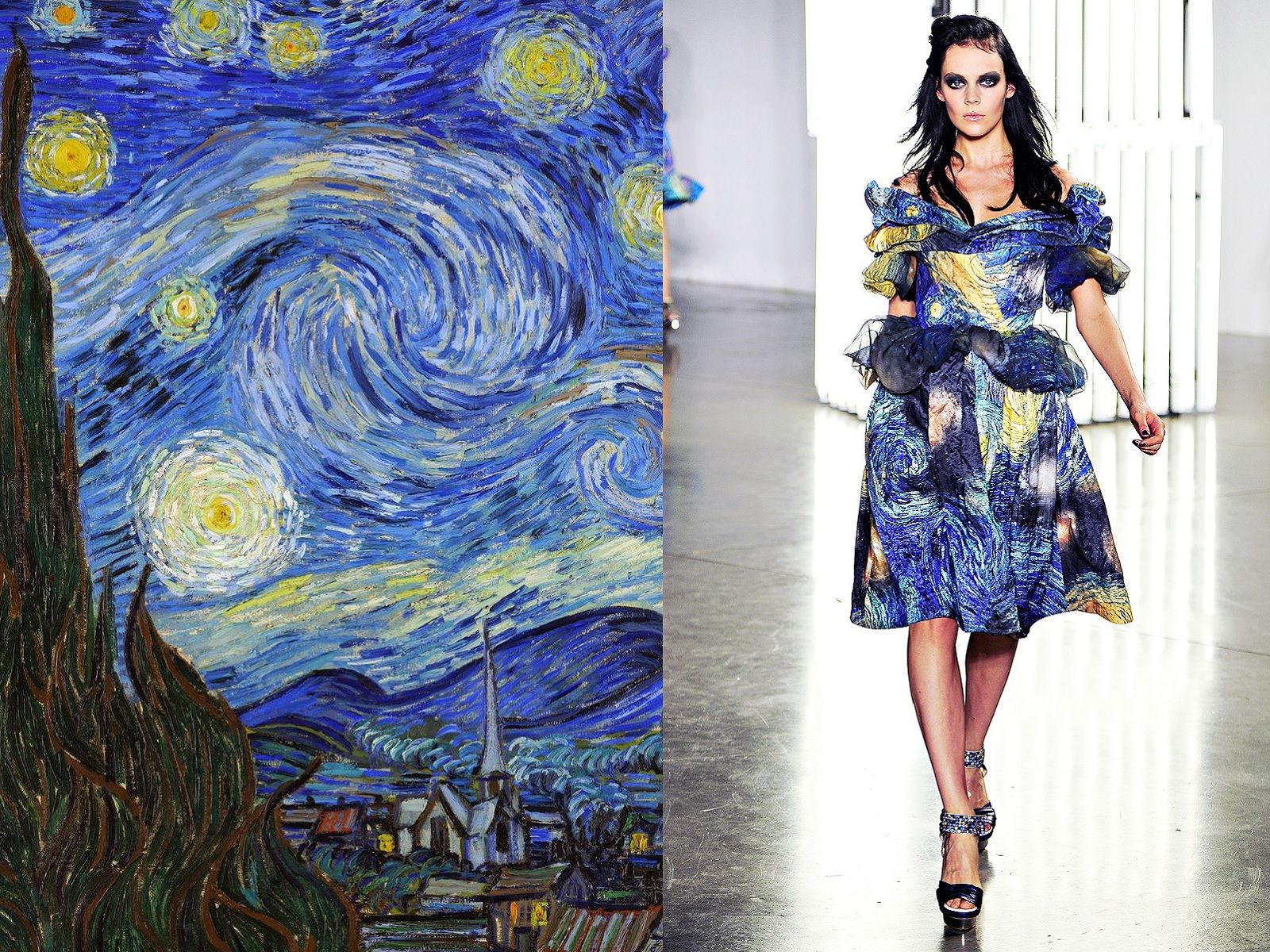 The Dutch painter's most famous paintings, from The Starry Night of 1889 to Vase with Twelve Sunflowers of 1888, have often been transformed into prints or inspirations for wonderful clothes. Any examples? Yves Saint Laurent SS88 Haute Couture, Maison Margiela FW15 Haute Couture, Viktor & Rolf SS15 Haute Couture or Rodarte SS12, during which sisters Kate and Laura Mulleavy brought to the runway an enchanting and ethereal tribute to van Gogh's works.