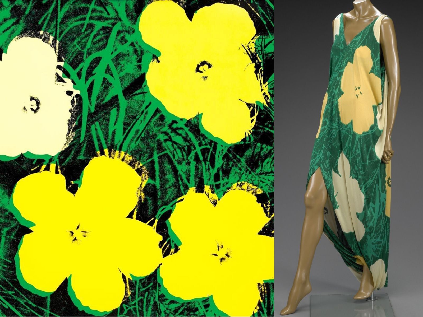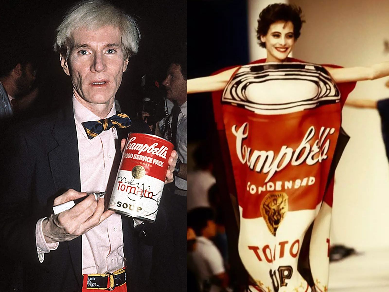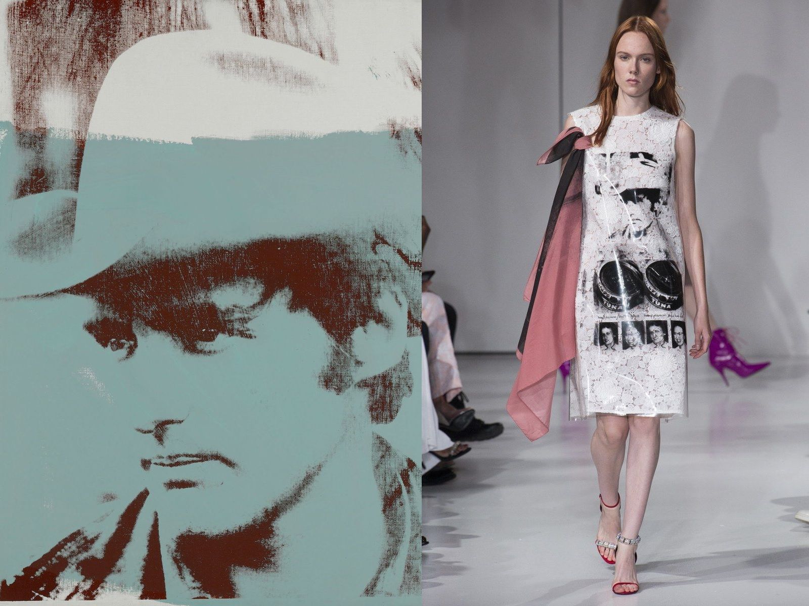 In 1962 Andy Warhol was one of the first pop artists to turn his work into fashion when he began printing his designs on clothes that were not sold in stores, but were created as one-off pieces for the women of New York society who wore them to gallery openings. In 1965, when those dresses were already a little fashion cult, he created the Souper Dress (reproposed in another version also by Jean-Charles de Castelbajac in 1984), inspired by his 1962 installation Campbell's Soup Cans, which, in a short time, sold like hot cakes and confirmed the power of the union between art and fashion. Since then, there have been many designers who have celebrated Warhol's Pop Art: from Halston, who collaborated for a long time with the Factory artist and reworked his Flowers in an evening dress version, to Gianni Versace, who in 1991 made super tops like Naomi Campbell and Linda Evangelista wear his iconic printed and tight-fitting dress decorated with the faces of Marilyn Monroe and James Dean. The Marilyn Dress returned to the Versace runway for the SS18 collection; while other pieces from Andy Warhol's vast archive-inspired the Pop Wrap series by designer Diane Von Furstenberg, Stephen Sprouse SS88, Jeremy Scott SS11 and Prada SS13. Raf Simons has also drawn on the Warholian aesthetic several times, first from Christian Dior for the FW13 collection and then from Calvin Klein thanks to a contract with the Andy Warhol Foundation.