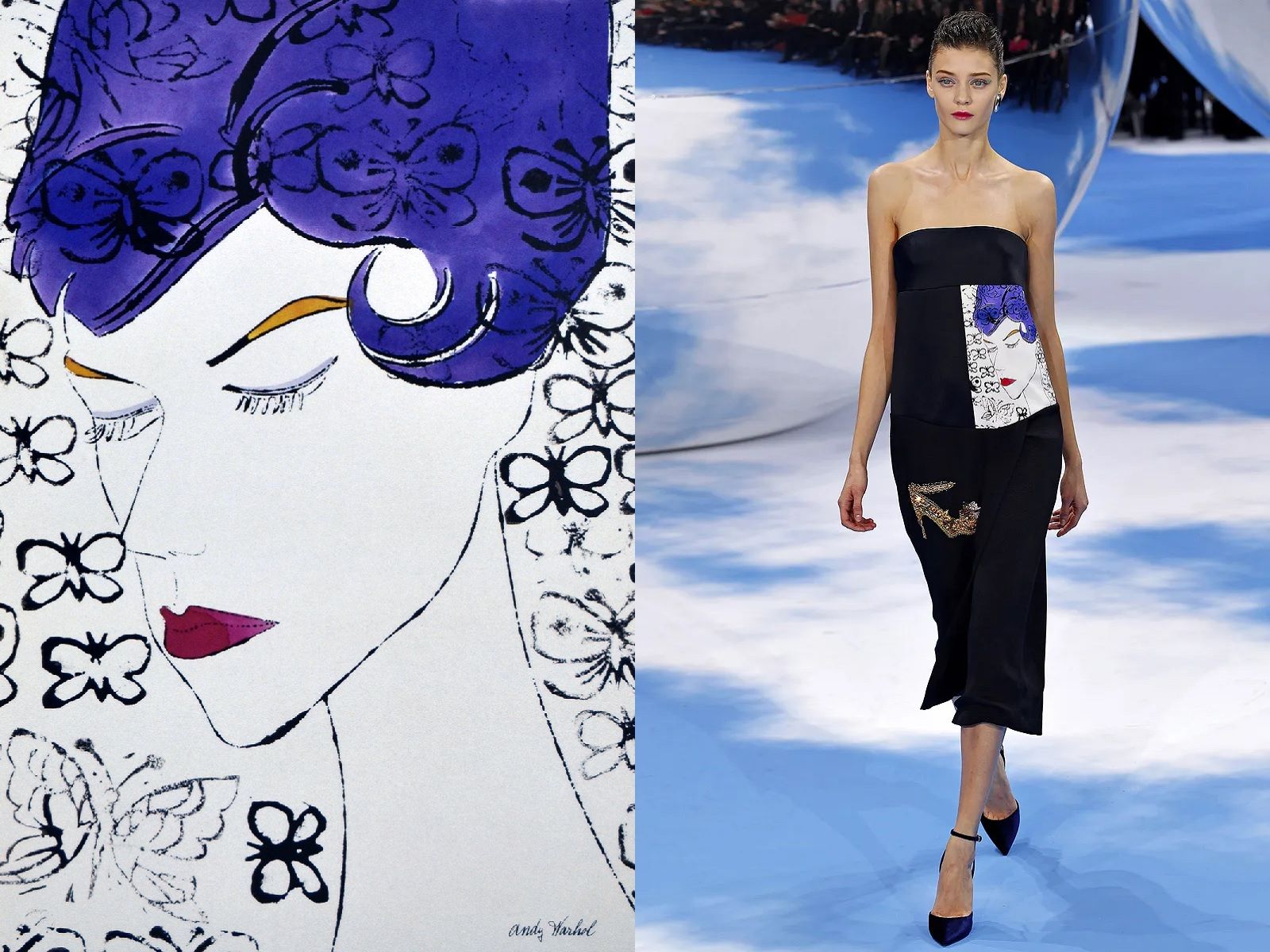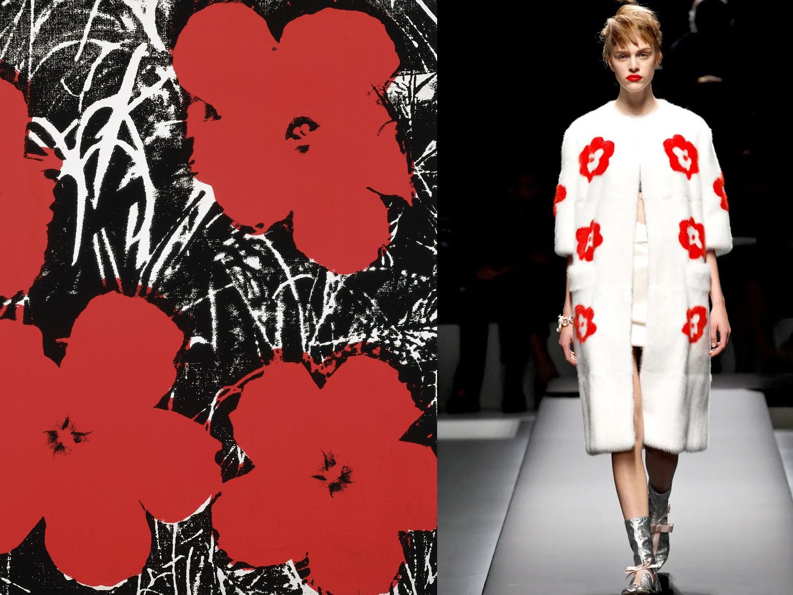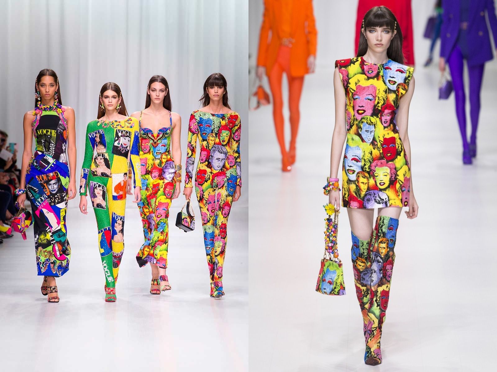 In 1962 Andy Warhol was one of the first pop artists to turn his work into fashion when he began printing his designs on clothes that were not sold in stores, but were created as one-off pieces for the women of New York society who wore them to gallery openings. In 1965, when those dresses were already a little fashion cult, he created the Souper Dress (reproposed in another version also by Jean-Charles de Castelbajac in 1984), inspired by his 1962 installation Campbell's Soup Cans, which, in a short time, sold like hot cakes and confirmed the power of the union between art and fashion. Since then, there have been many designers who have celebrated Warhol's Pop Art: from Halston, who collaborated for a long time with the Factory artist and reworked his Flowers in an evening dress version, to Gianni Versace, who in 1991 made super tops like Naomi Campbell and Linda Evangelista wear his iconic printed and tight-fitting dress decorated with the faces of Marilyn Monroe and James Dean. The Marilyn Dress returned to the Versace runway for the SS18 collection; while other pieces from Andy Warhol's vast archive-inspired the Pop Wrap series by designer Diane Von Furstenberg, Stephen Sprouse SS88, Jeremy Scott SS11 and Prada SS13. Raf Simons has also drawn on the Warholian aesthetic several times, first from Christian Dior for the FW13 collection and then from Calvin Klein thanks to a contract with the Andy Warhol Foundation.