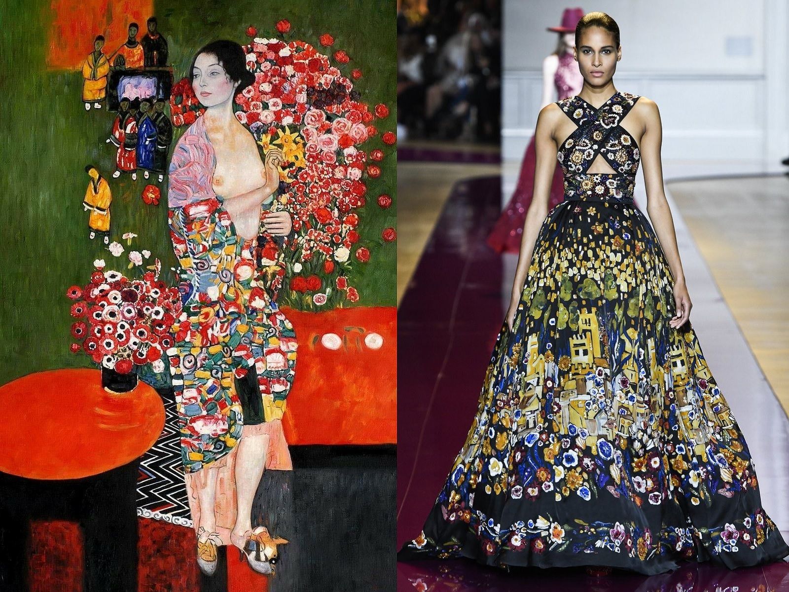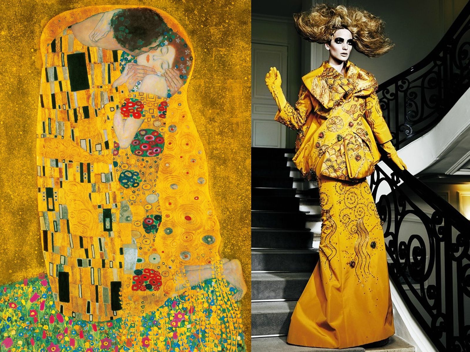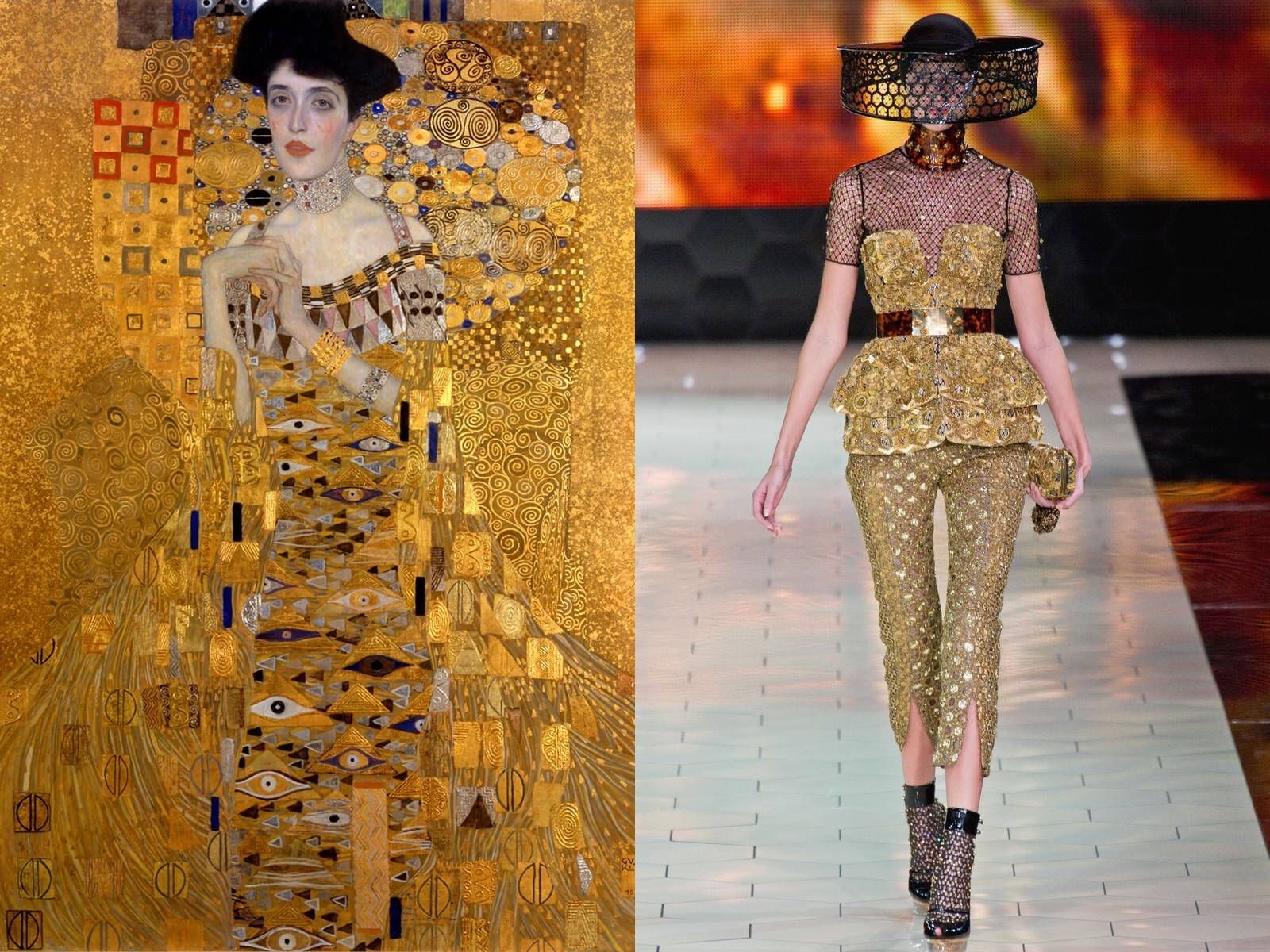 For Dior's SS08 Haute Couture collection, John Galliano revisited the art of Gustav Klimt, bringing all the beauty and opulence of the Vienna Art Nouveau movement to the runway. The details painted by the symbolist painter have often come back to life thanks to the creativity of many other designers: from Alexander McQueen to Givenchy, from Zuhair Murad to Rick Owens. All of them have been inspired by iconic pieces such as Adele Bloch-Bauer I or The Kiss which, by mixing shapes, fabrics, prints, golds, small stones, geometric graphics have become equally rich and sensual dresses. But there are also those who, like Valentino for the FW15 collection, decided to make a different choice and, instead of starting from the work of Klimt, opted to share the same muse: Emilie Flöge.