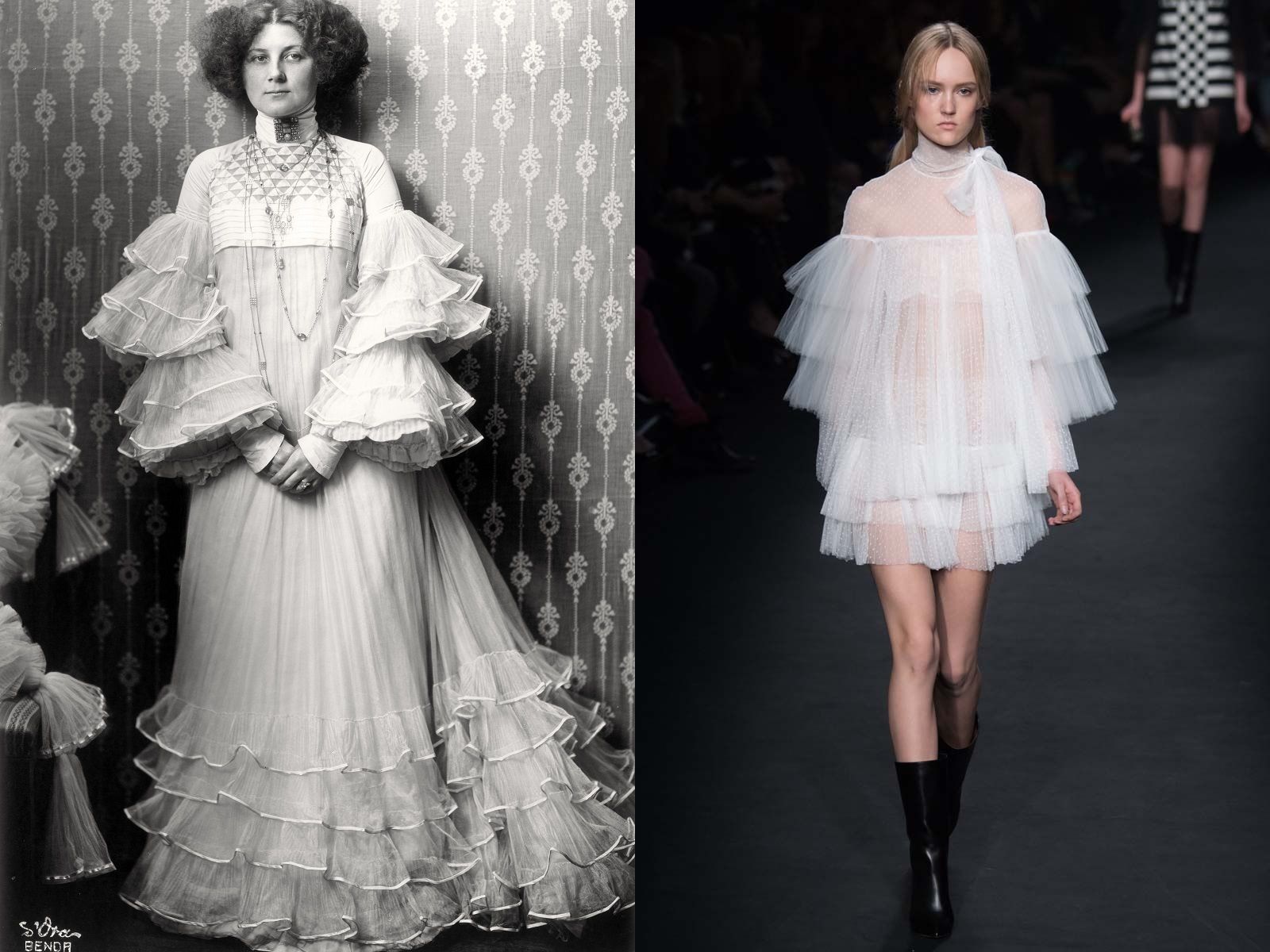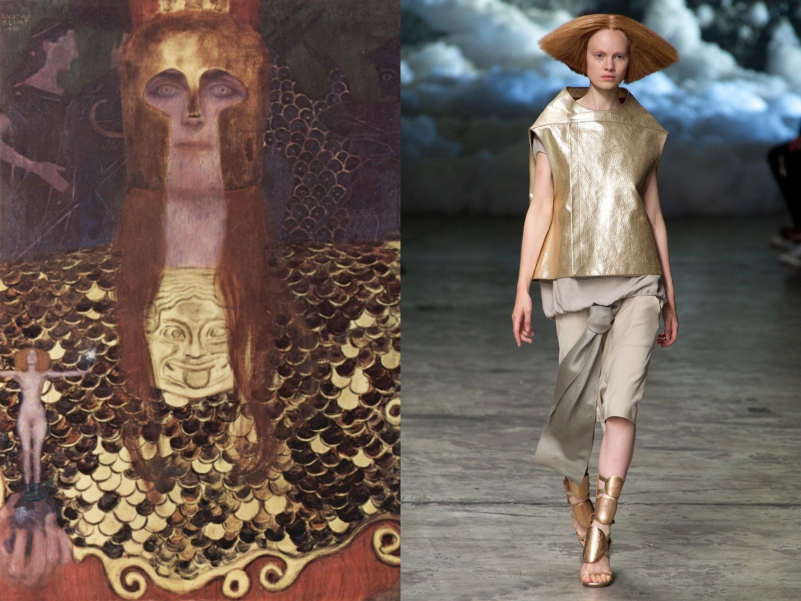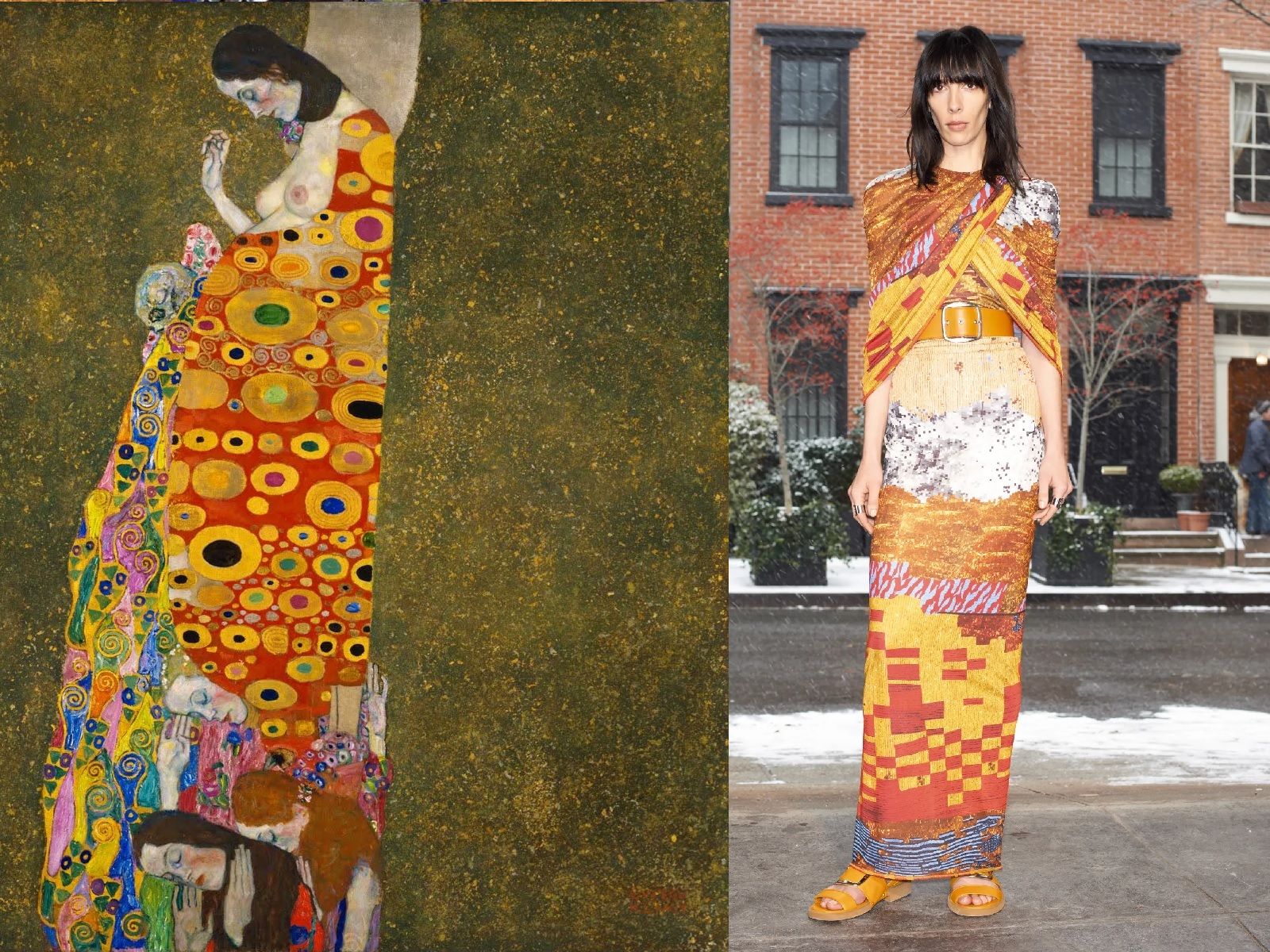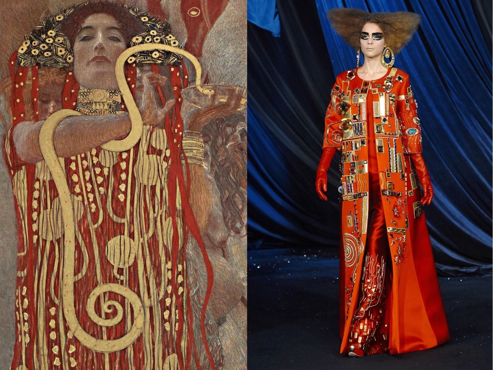 For Dior's SS08 Haute Couture collection, John Galliano revisited the art of Gustav Klimt, bringing all the beauty and opulence of the Vienna Art Nouveau movement to the runway. The details painted by the symbolist painter have often come back to life thanks to the creativity of many other designers: from Alexander McQueen to Givenchy, from Zuhair Murad to Rick Owens. All of them have been inspired by iconic pieces such as Adele Bloch-Bauer I or The Kiss which, by mixing shapes, fabrics, prints, golds, small stones, geometric graphics have become equally rich and sensual dresses. But there are also those who, like Valentino for the FW15 collection, decided to make a different choice and, instead of starting from the work of Klimt, opted to share the same muse: Emilie Flöge.