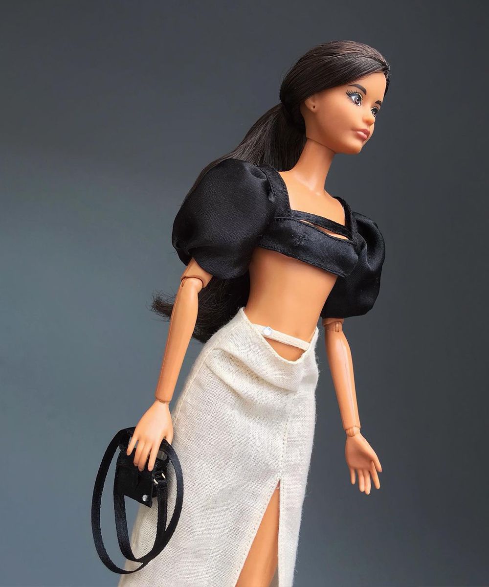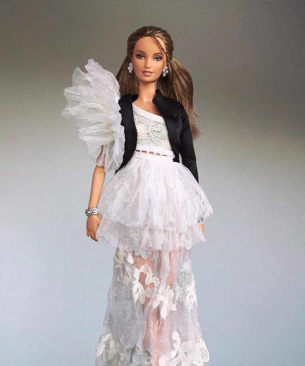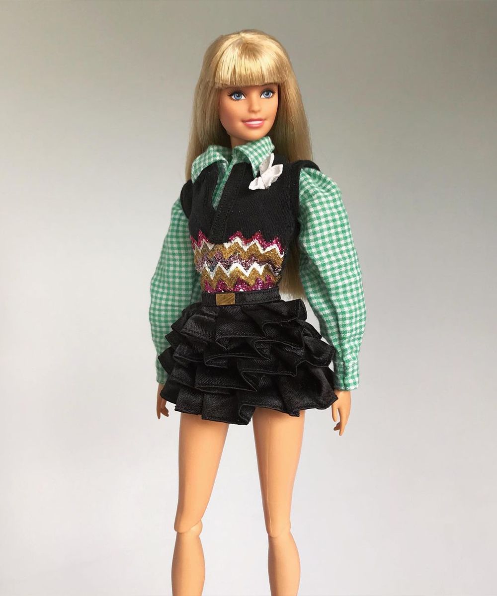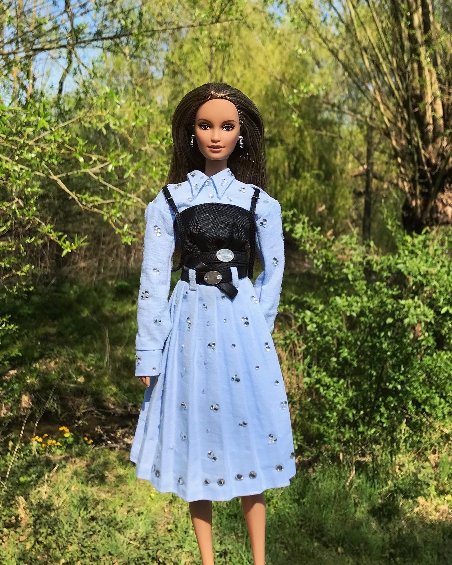 I try to make my Barbie looks with as many recycled materials as possible. So while choosing the looks I always keep in mind which fabrics I have at home. To accurately replicate the real outfits sometimes I have to create my own fabrics, using embroidery or hand paint.