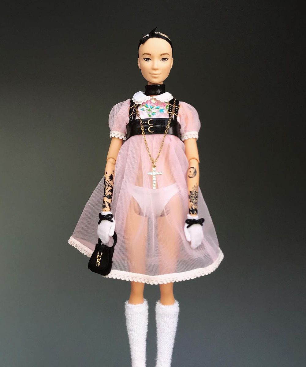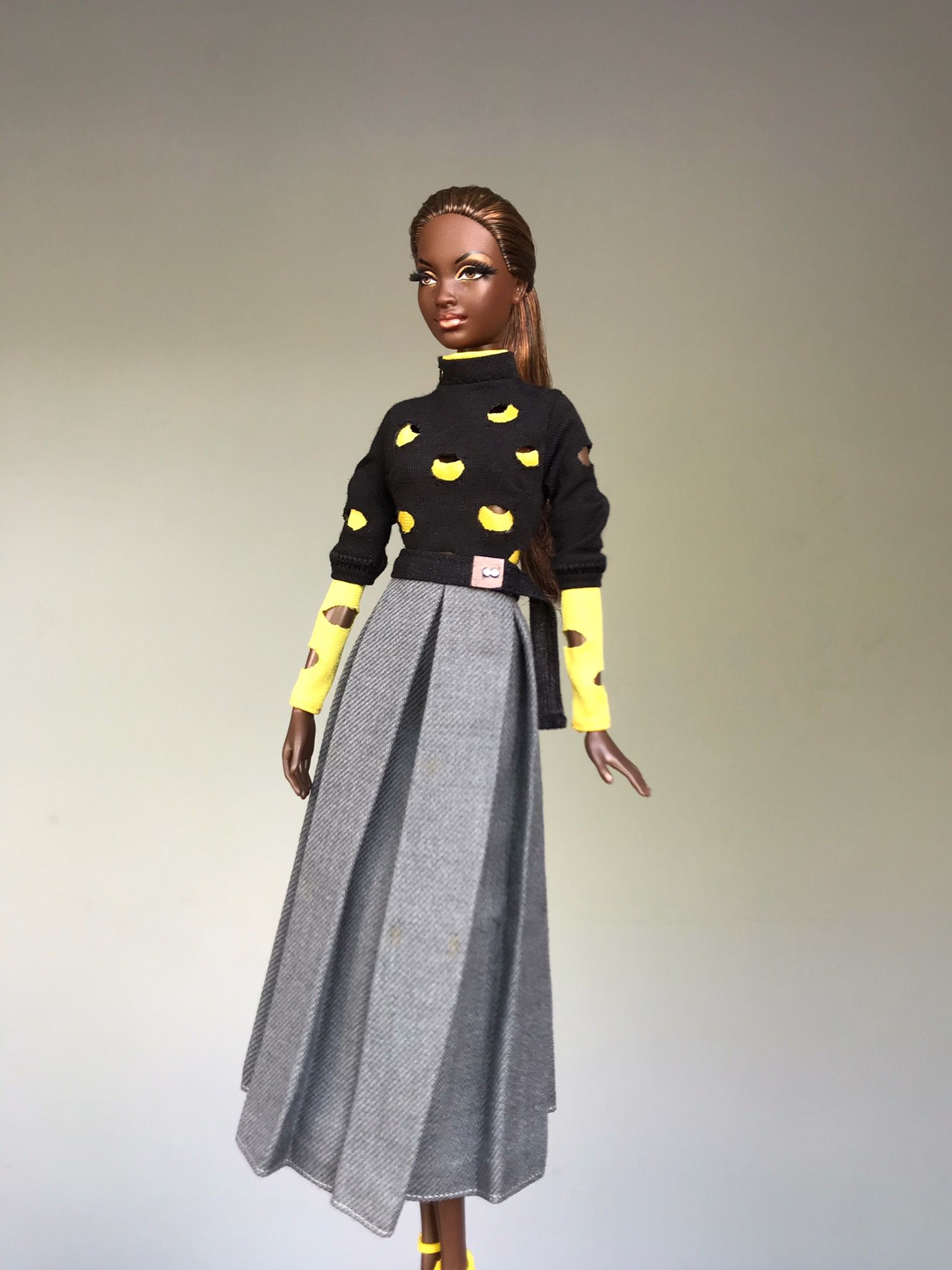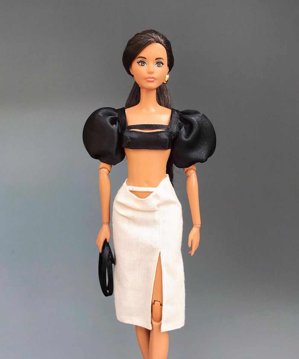 I started making doll clothes when I was 13. At the time me and my younger sister still played with dolls: we really disliked all the pink, glittery clothes Barbie wore. So I started making outfits that reflected more what we wanted to wear, like runway outfits.