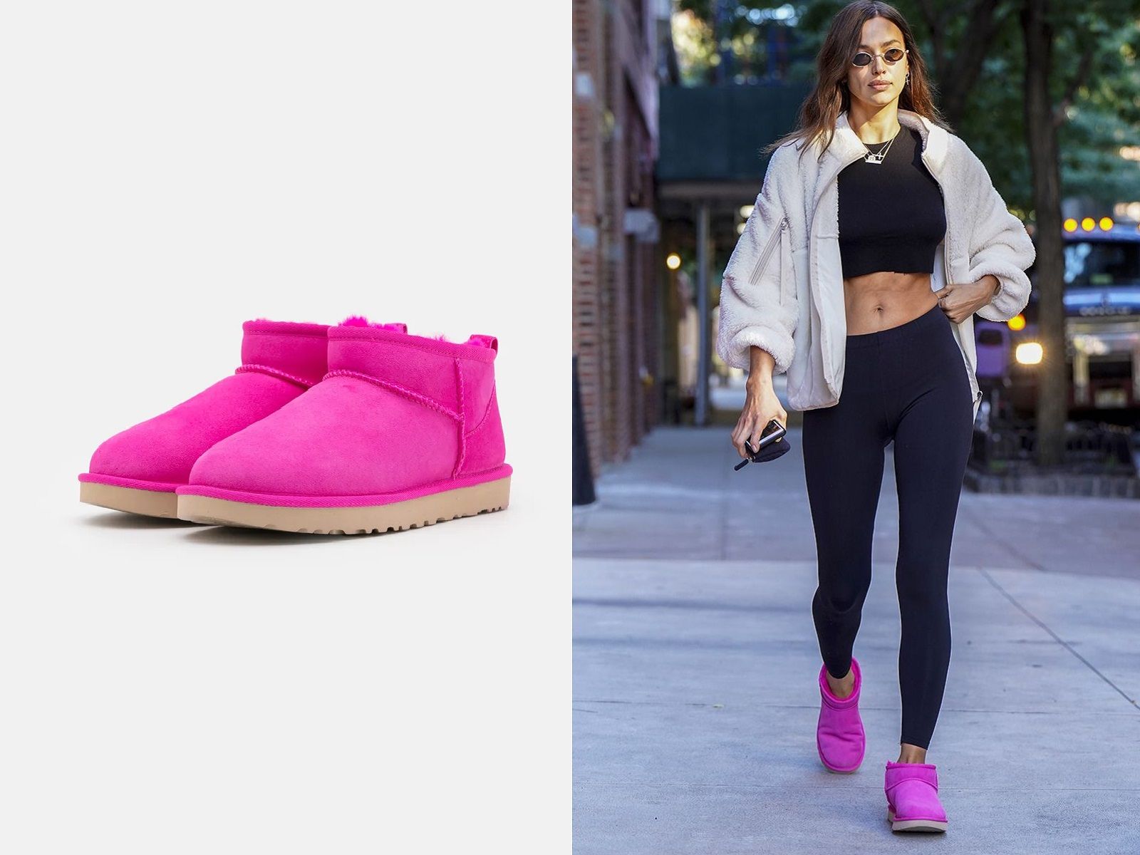 With searches up 242% compared to the same period in 2019, the real new entry among in our daily outfits are slippers. Whether you're watching a TV series while sitting on the couch, sipping drinks with friends connected via Zoom or hanging out to walk the dog, Boston clogs with shearling padding by Birkenstock are the favorite footwear of the female consumer, followed by Ultra Mini boots by UGG. Leaving sandals and heels, even the top Irina Shayk and Joan Smalls wear the models of the American brand, perhaps in the new neon colors.