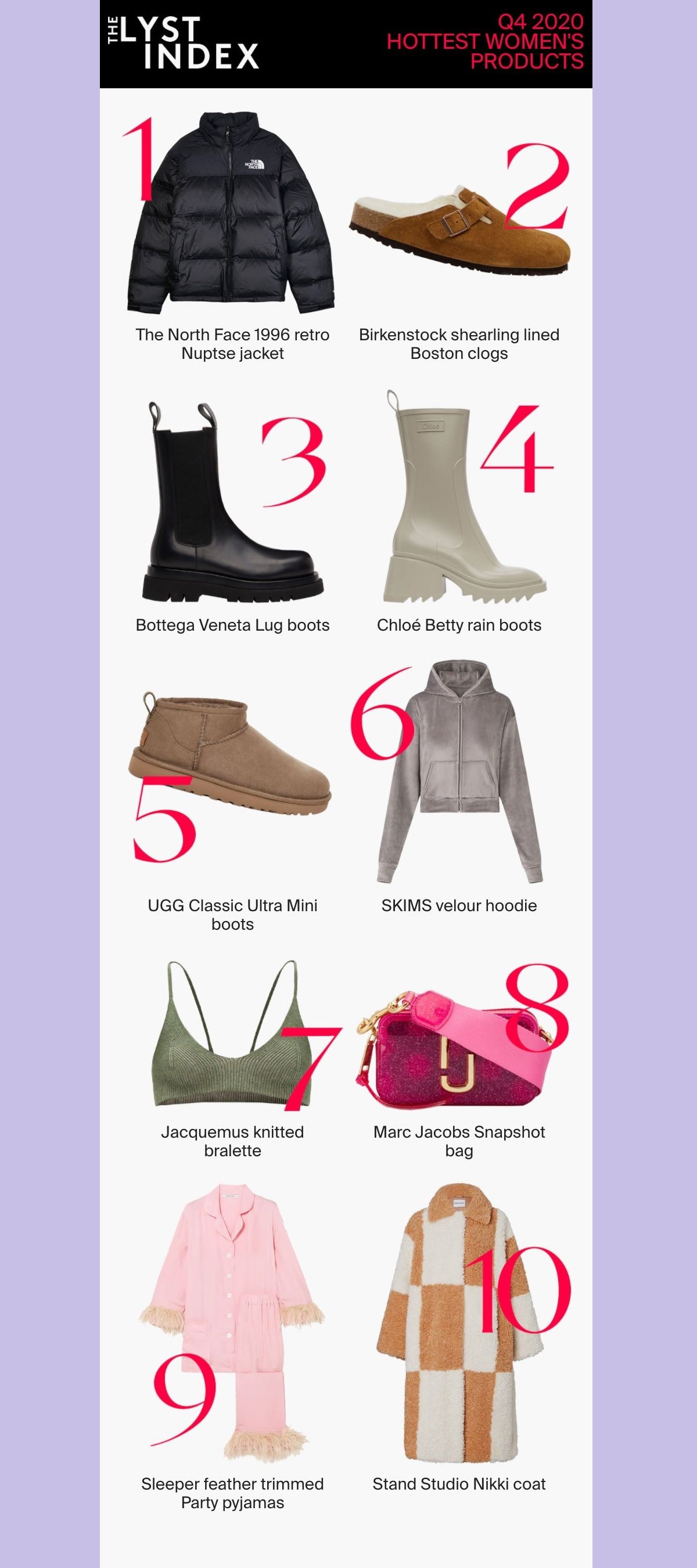 The 10 most desired items for women according to Lyst The Birkenstock Boston, at the top among footwear, wins over Bottega Veneta boots