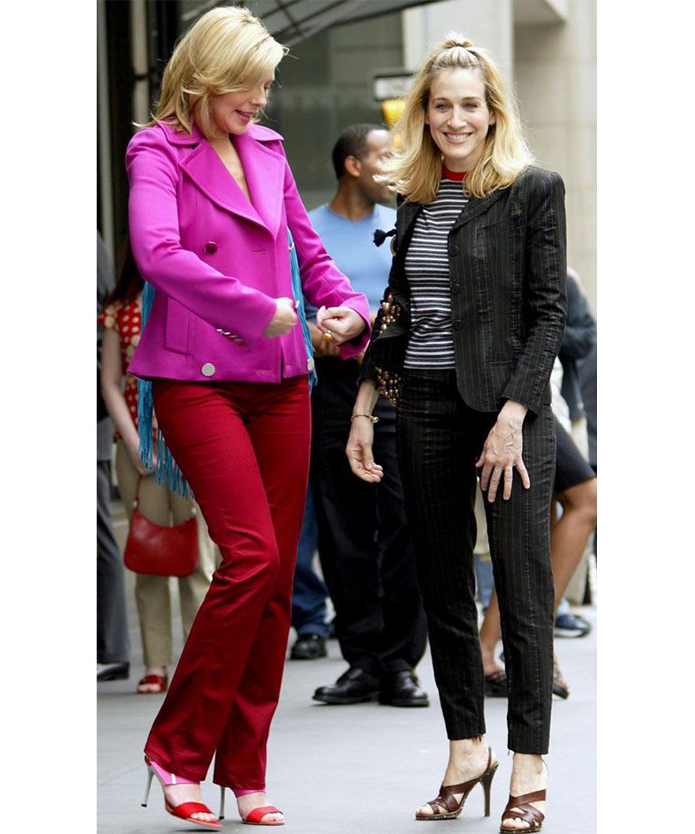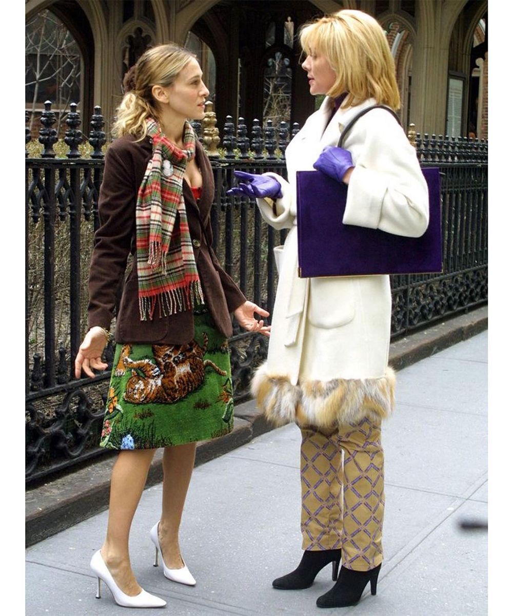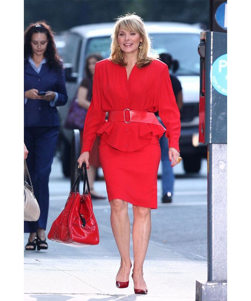 Samantha taught us to be bossy and chic in a metropolis like The Big Apple, but always maintaining a super glamorous allure. The suits (with skirt or trousers) with vibrant color blocks seem to be a must-have for Sam, to be worn accompanied by exuberant coats, strictly designer heels, it-bags, accessories and an impeccable hairstyle.