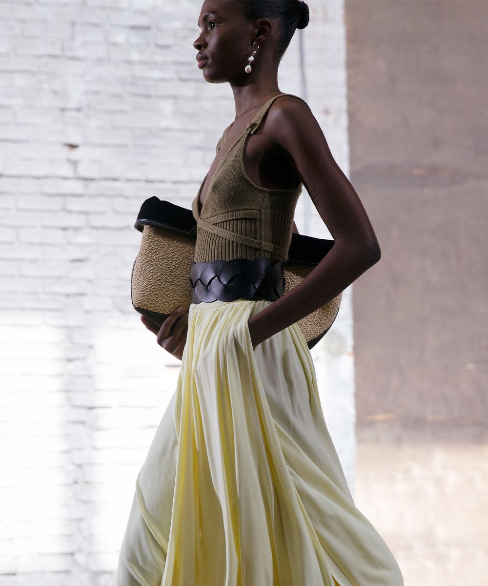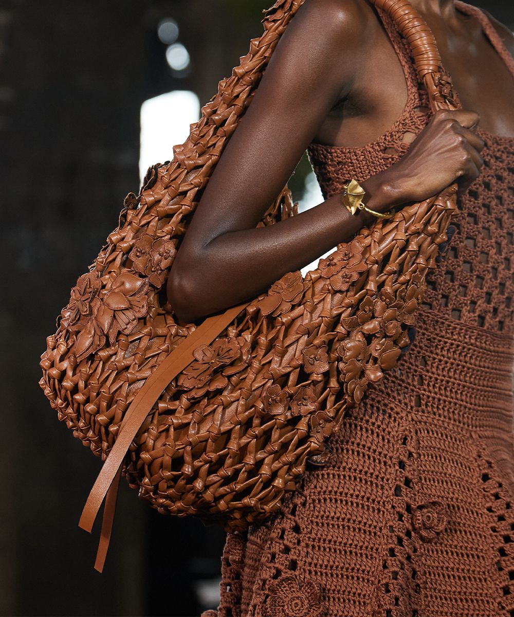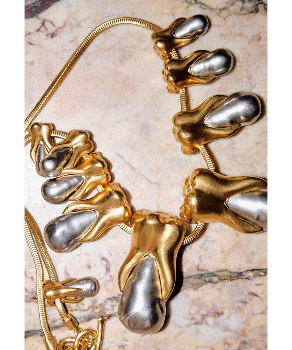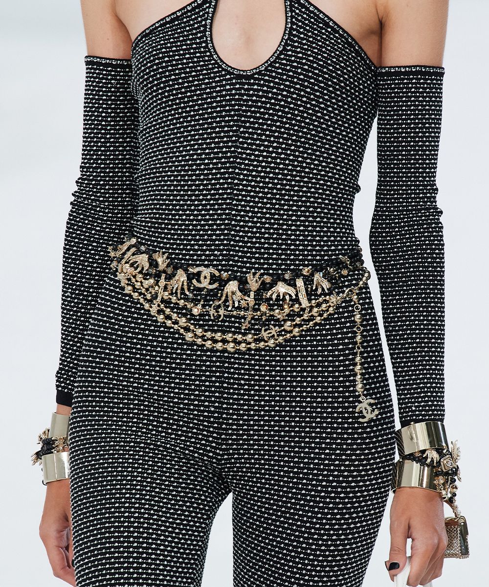 Chain jewels continue to dominate the scene also in the spring/summer 2021 season. One opts for elegant variants, XL silhouettes or golden necklaces. Not just at the neck, chains can also decorate the body if worn around the waist or tied to bags.
