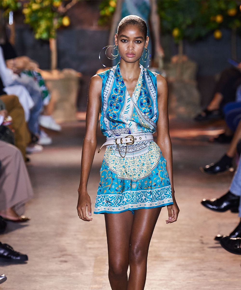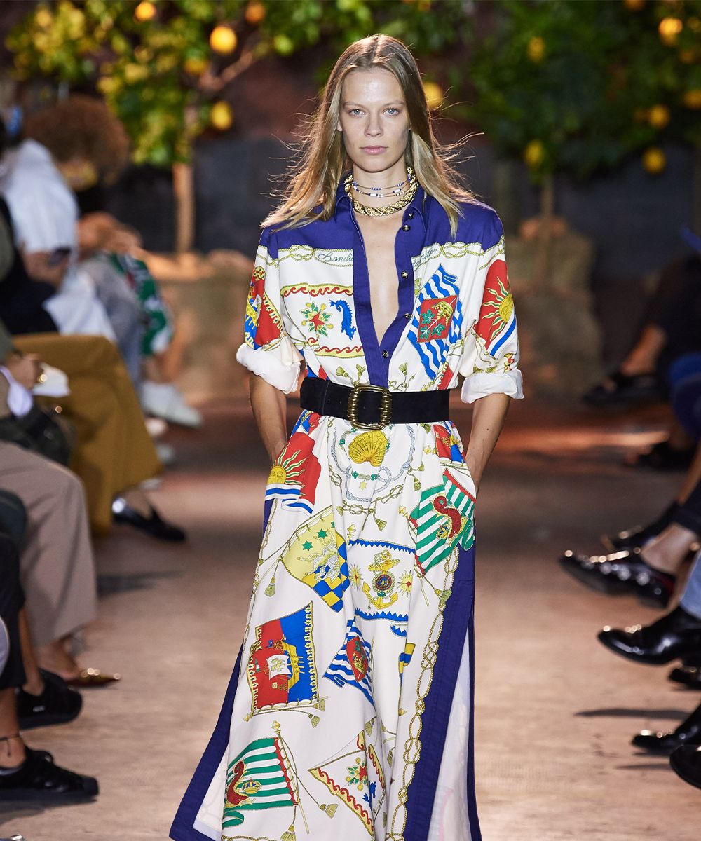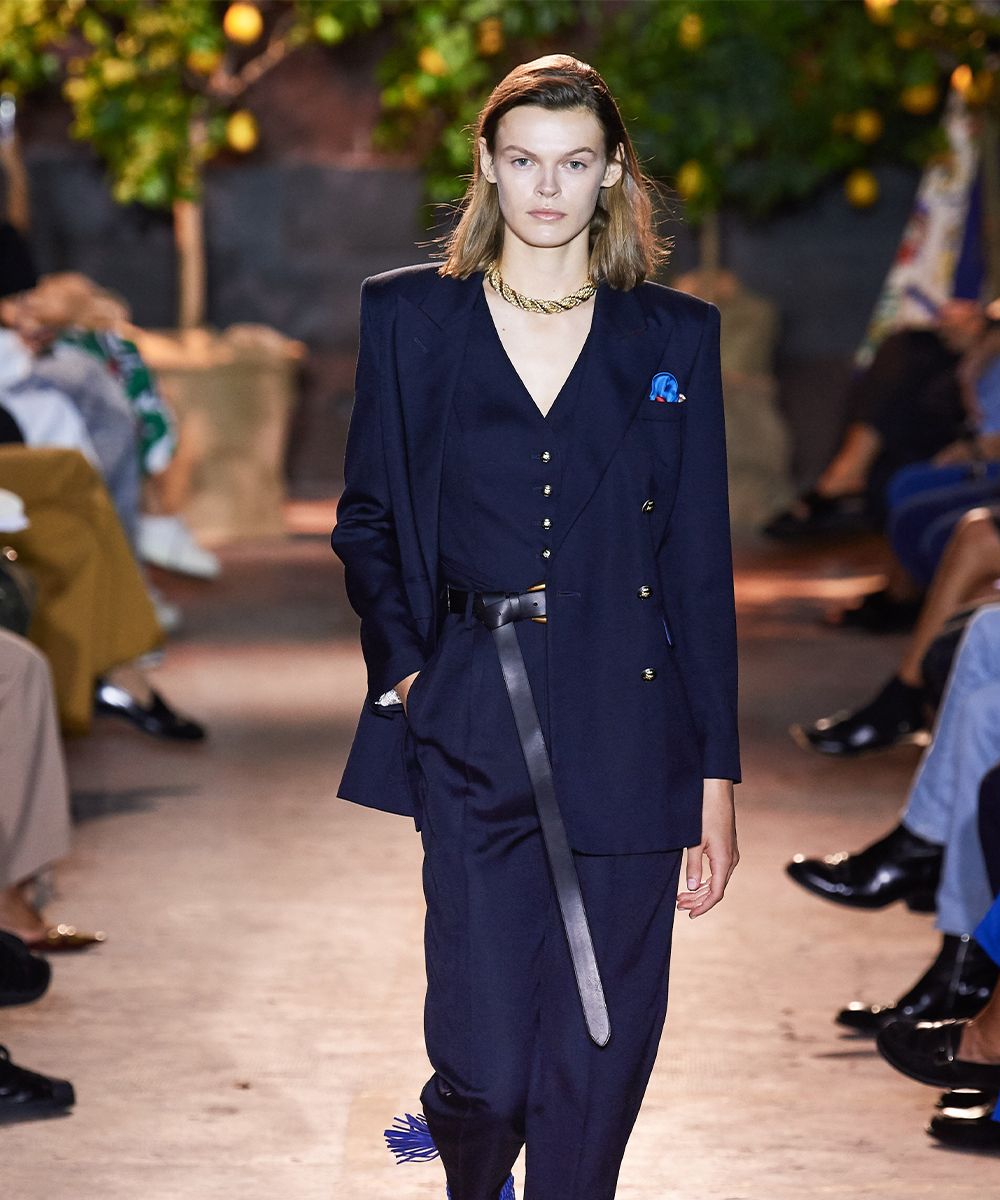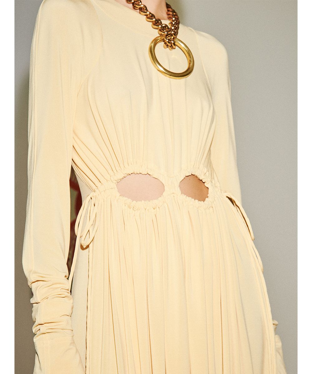 Chain jewels continue to dominate the scene also in the spring/summer 2021 season. One opts for elegant variants, XL silhouettes or golden necklaces. Not just at the neck, chains can also decorate the body if worn around the waist or tied to bags.