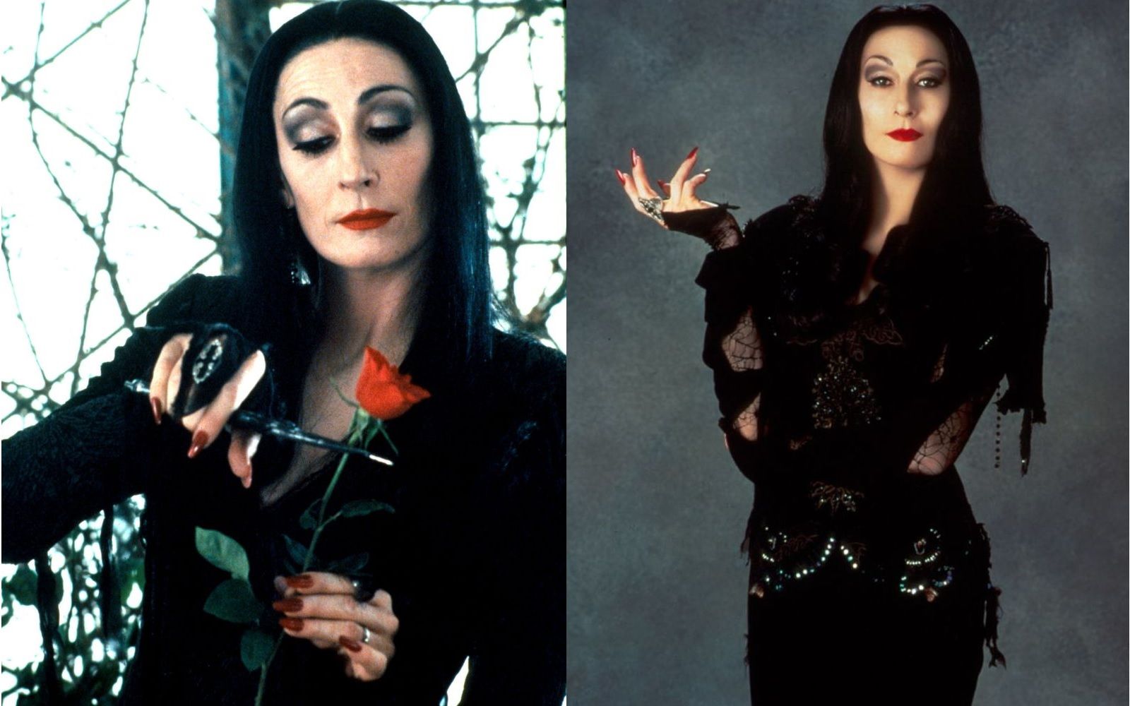 It was September 18, 1964 when the ABC channel brought to television The Addams Family, the popular comic strip of The New Yorker. The producers hired the beautiful Carolyn Jones to play Morticia Addams. With her physical features and charm, she embodied the perfect femme fatale: pale complexion, long black hair, doll-like face. Thanks to this black and white version, the character of the dark lady who dresses only in a black evening gown, has long, red-lacquered nails, speaks French and loves to cut rosebuds, became iconic. A strange woman, but lovely, elegant and eccentric, who acquired an even more glamorous twist in the '90s, when Anjelica Huston played her in the movies. Her Morticia looked like an aristocratic witch: high cheekbones sculpted by makeup, red lipstick, like nail polish, false eyelashes and degradé eye shadow. From me as a teenager, through Kate Moss, to Game of Thrones star Sophie Turner, there isn't a girl in the world who hasn't wanted to be the matriarch of the Addams at least for a day.