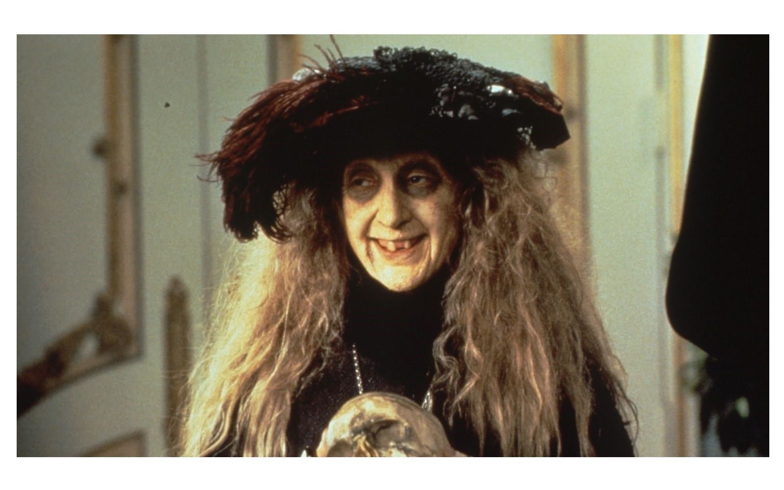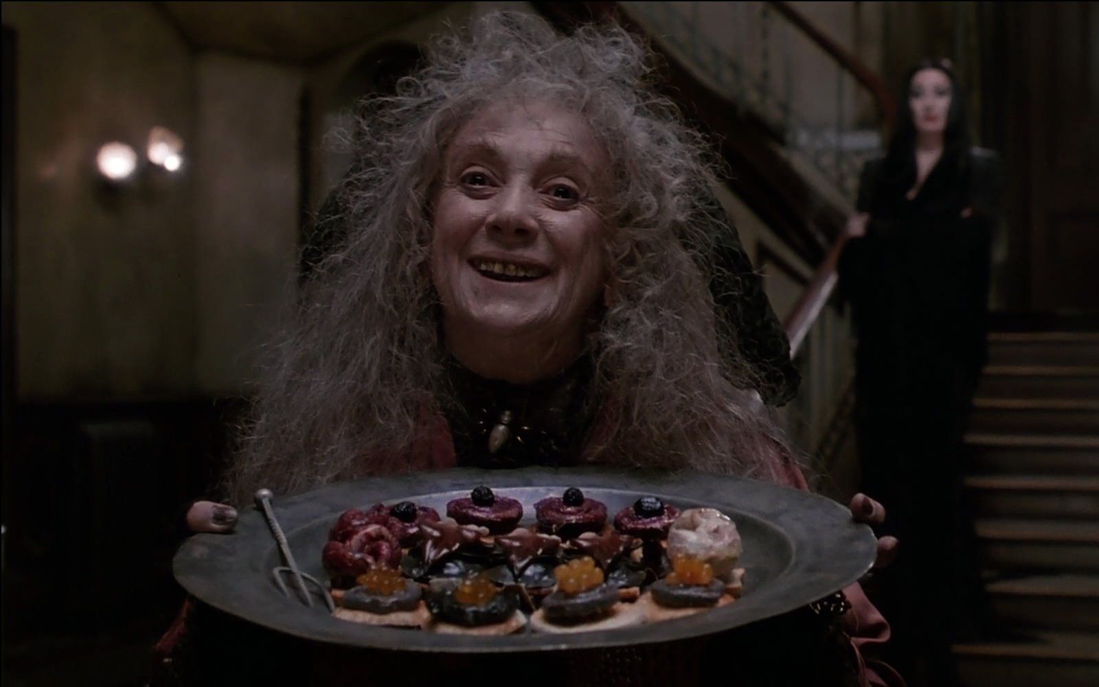 Her name is Eudora and, no matter if she is Gomez's mother like in the TV series or Morticia's mother like in the movies. Grandmama Addams is the real witch of the family who makes potions in large steaming cauldrons and flies her broomstick. Even her look is that of the classic fairy tale hag: shaggy white hair, rotten teeth and the decadent vintage clothes.