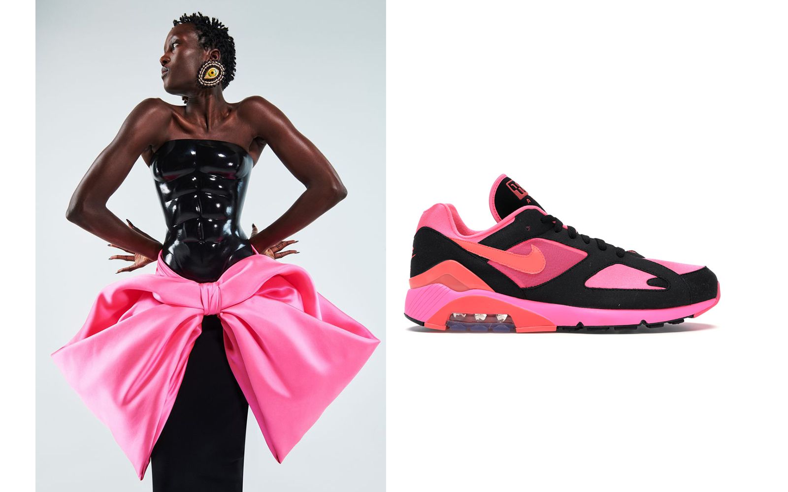 Proceeding by free association, starting with shapes, colors, silhouettes and materials, in absolute freedom, we have associated the Couture dresses from the 90s up to the last SS21 season, with iconic and seasonal sneakers. Here is the result.