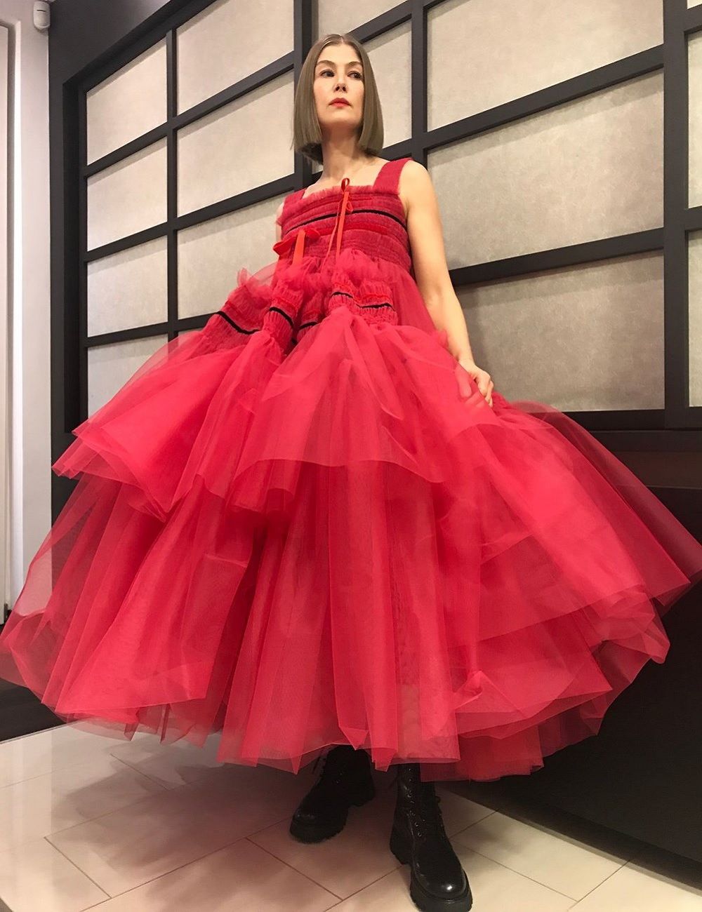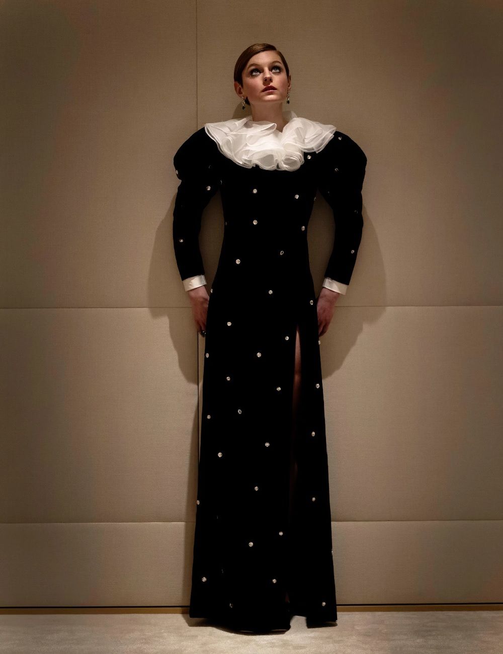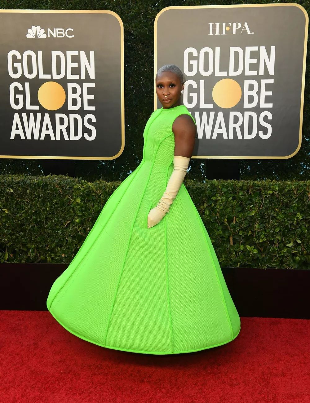 The Crown collected a lot of awards and celebrated the talent of Emma Corrin in the role of Diana Spencer who thanked in a black and white look by Miu Miu, featuring a Pierrot-style ruffled maxi collar; while Anya Taylor-Joy aka The Queen's Gambit triumphed as best dressed in a custom Dior Haute Couture green lurex dress with cape. Very elegant were also Elle Fanning who opted for an ethereal sky-blue slip dress by Gucci; Sarah Paulson in Prada; Andra Day (Best actress in a motion picture - drama for The United States vs Billie Holiday, a movie with costumes by Prada) in Chanel; Amanda Seyfried in a creation with a bare back by Oscar de la Renta; Tiffany Haddish in custom Alberta Ferretti; Kate Hudson in Louis Vuitton. The most eccentric? For example, Cynthia Erivo in a fluorescent green model by Valentino paired with very high silver platform; Nicola Coughlan who, paying homage to her character in Bridgerton, opted for a cloud of yellow tulle created by Molly Goddard, the same designer who was also picked by Rosamund Pike.