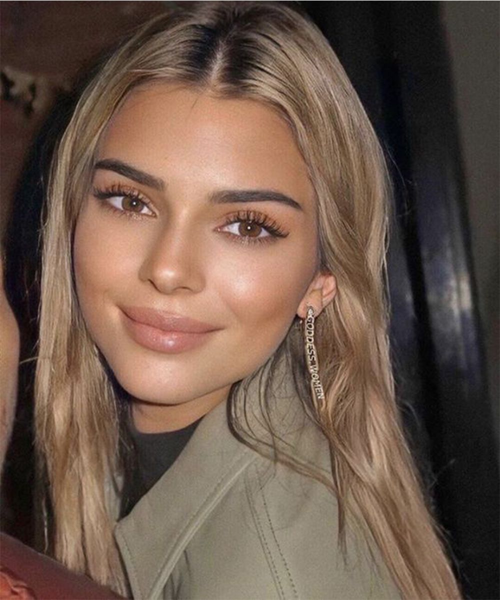 Despite having a sister with a multi-million dollars beauty line, Kendall has always remained very loyal to the idea of less is more when it comes to make-up, obviously with the exception of the catwalk. Her style has remained very natural over the years, with light shades of smokey eyeshadow, and lip gloss or nude lips. Among her trademarks are her extra-long lashes and intense eyebrows for a magnetic look.