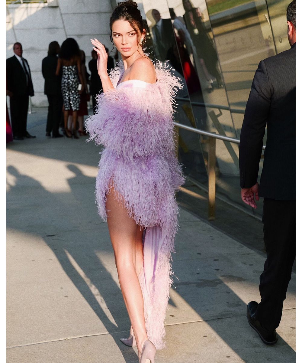 Far from the super glam looks of the catwalk or the red carpets, Kendall prefers a minimal and functional style, even though versatility in dressing has always been one of her strong points. In fact, the model wears nonchalantly ultra-grippy 12 heels and OG sneakers mixed with 90s-inspired outfits, jeans, sweatshirts, t-shirts and basic tops, or biker shorts, mini and bodycon dresses, oversized blazers, leather pants, and denim jumpsuits. Among her must-haves? A nice pair of dark sunglasses and the it-bag of the moment. However, Kendall certainly gives her best on special occasions, when she wears couture dresses by big designers or emerging talents and makes us dream of her breathtaking beauty. On those occasions, the top has gone from wearing tight-fitting mini-dresses to maxi-lengths with plunging necklines and interesting cut-outs. One thing's for sure, for the red carpet Kendall always sticks to the go big or go home philosophy, opting for super glamorous looks, including sparkles, sequins, transparencies, lace, very long train, animal prints or vibrant colour blocks, like a real diva.