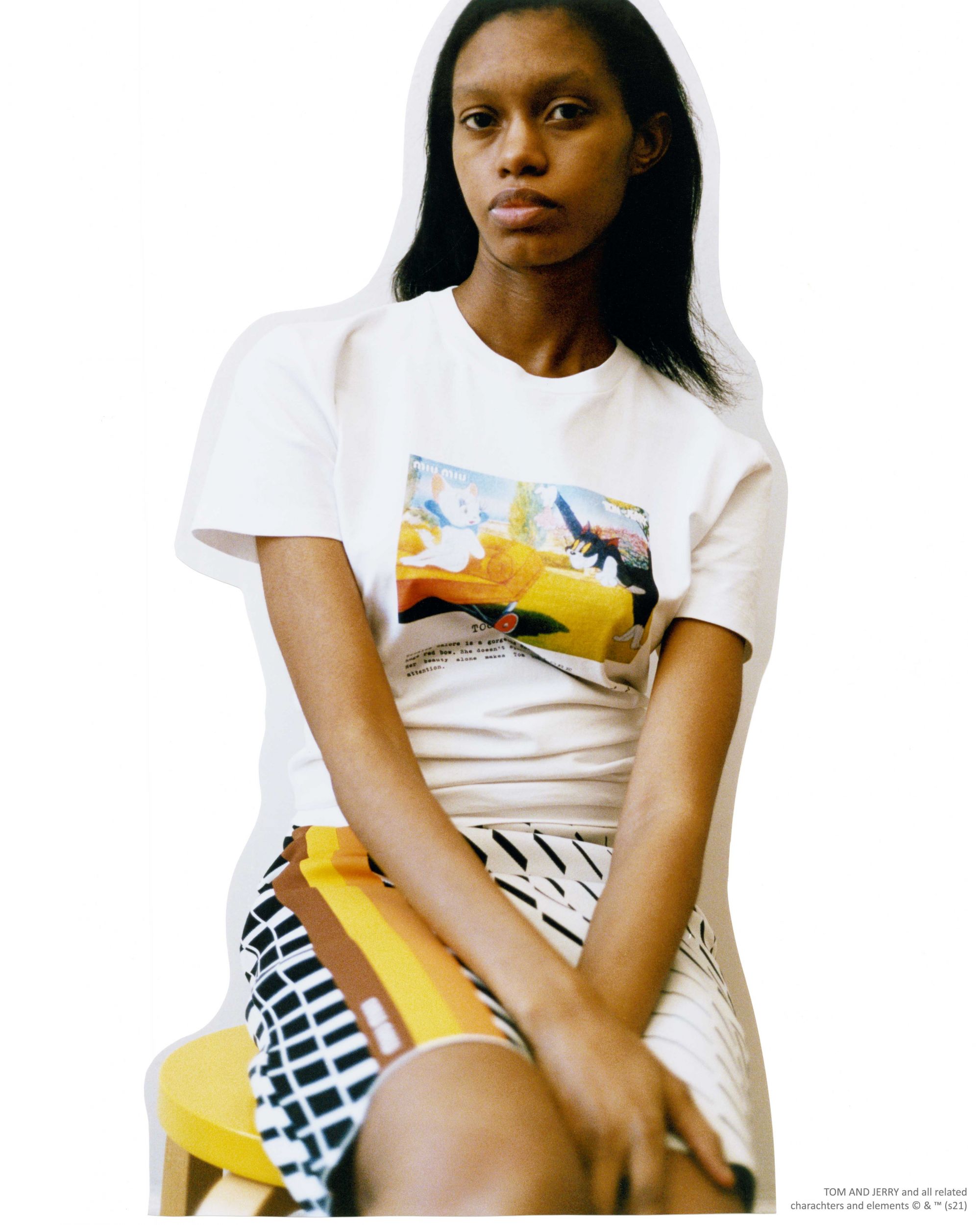 The new t-shirts "Famous Cats" by Miu Miu The portrait of five famous, multifaceted and free-spirited cats on a white shirt