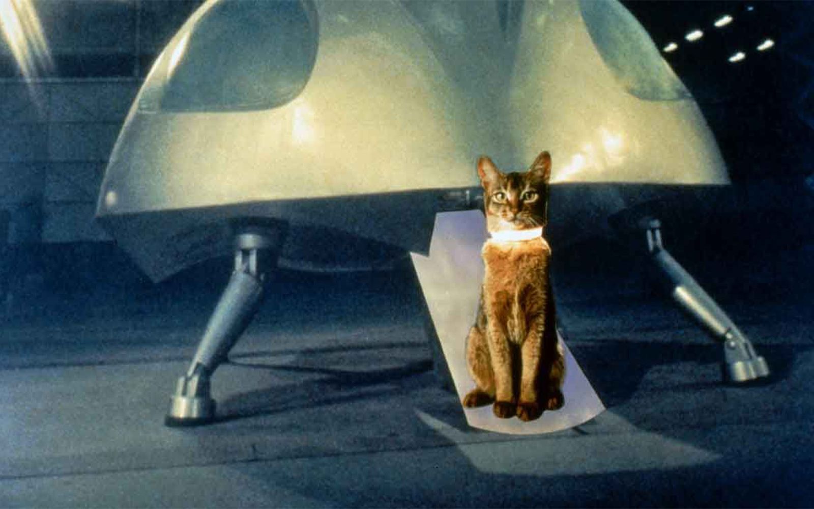 Jake is the extra-terrestrial cat from the 1978 American science fiction comedy, The Cat From Outer Space. Forced to land his spaceship on earth, he leads various humans on a series of tumultuous and overwhelming escapes; Jonesy is the red cat chasing mice, residing on the ill-fated USCSS Nostromo starring in the 1979 film, Alien. With Ellen Ripley, he is the only survivor of the mission.