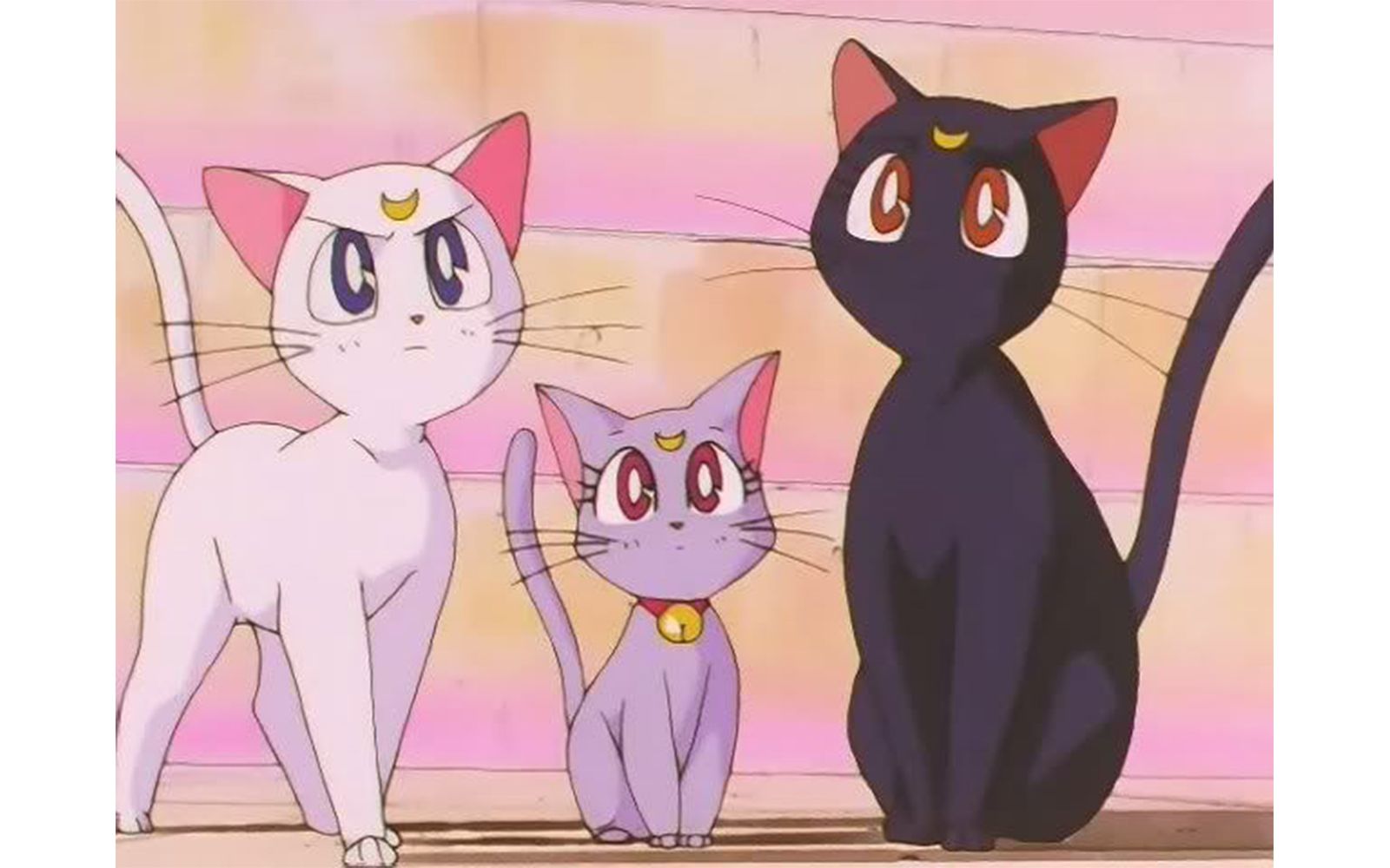 Anime time for the three talking cats - Luna, Artemis and their daughter, Diana - who always sit on Chibiusa's shoulders, in the 1990s Japanese animation series Sailor Moon.