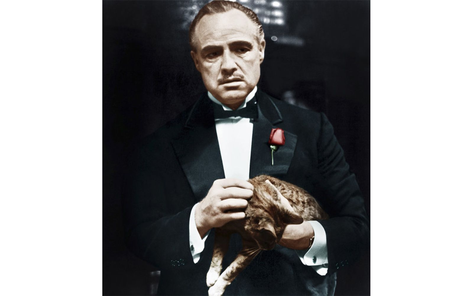 And then there's the unnamed cat from Francis Ford Coppola's The Godfather, who was found wandering around the set, and who was later greeted by the cast and suddenly placed on Marlon Brando's lap. His purr further obscures the actor's famous muffled dialogue. Last but not least, Toodles Galore, from the cartoon Tom & Jerry created by Hanna Barbera, is the white cat with red lipstick and XXL lashes who always drives Tom crazy (and stammers), every time he meets him. As they say in France, c'est l'amour.