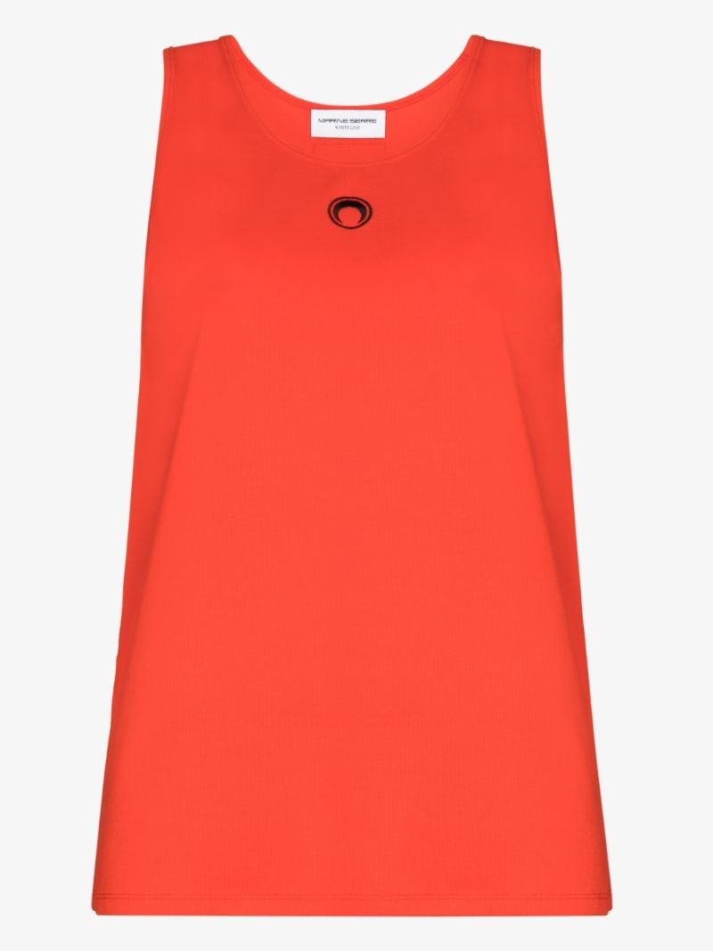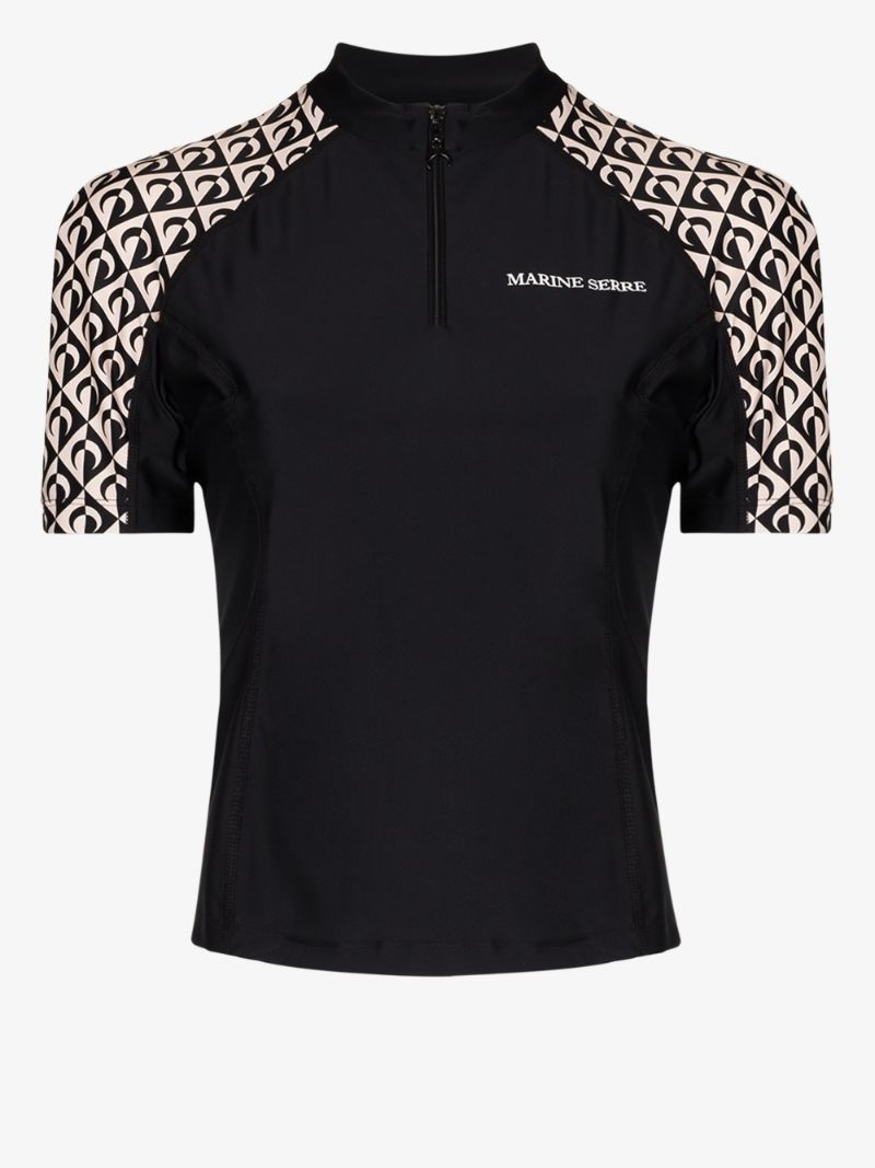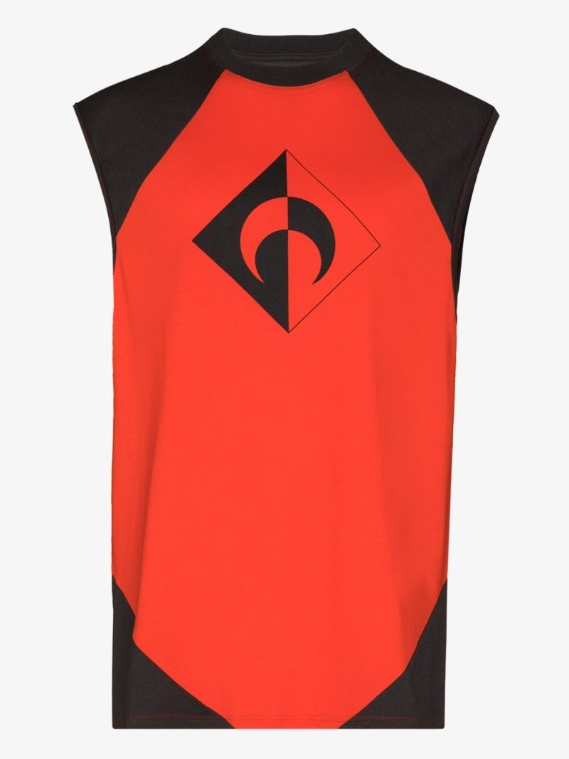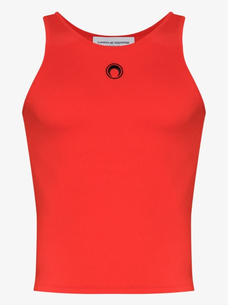 The new items were designed as an extension of Amor Fati, Marine Serre's SS21 collection which wanted to overcome reality by embracing both positive moments and chaos, and feature all the signature elements of the French designer's activewear: from the crescent moon logo to the use of recycled fabrics. The black and white print alternates with total red and decorates the sports bra, floaty dresses, and flared pants; while on the more structured items like the track jacket and pants, the Moire design created with red recycled nylon thread stands out.