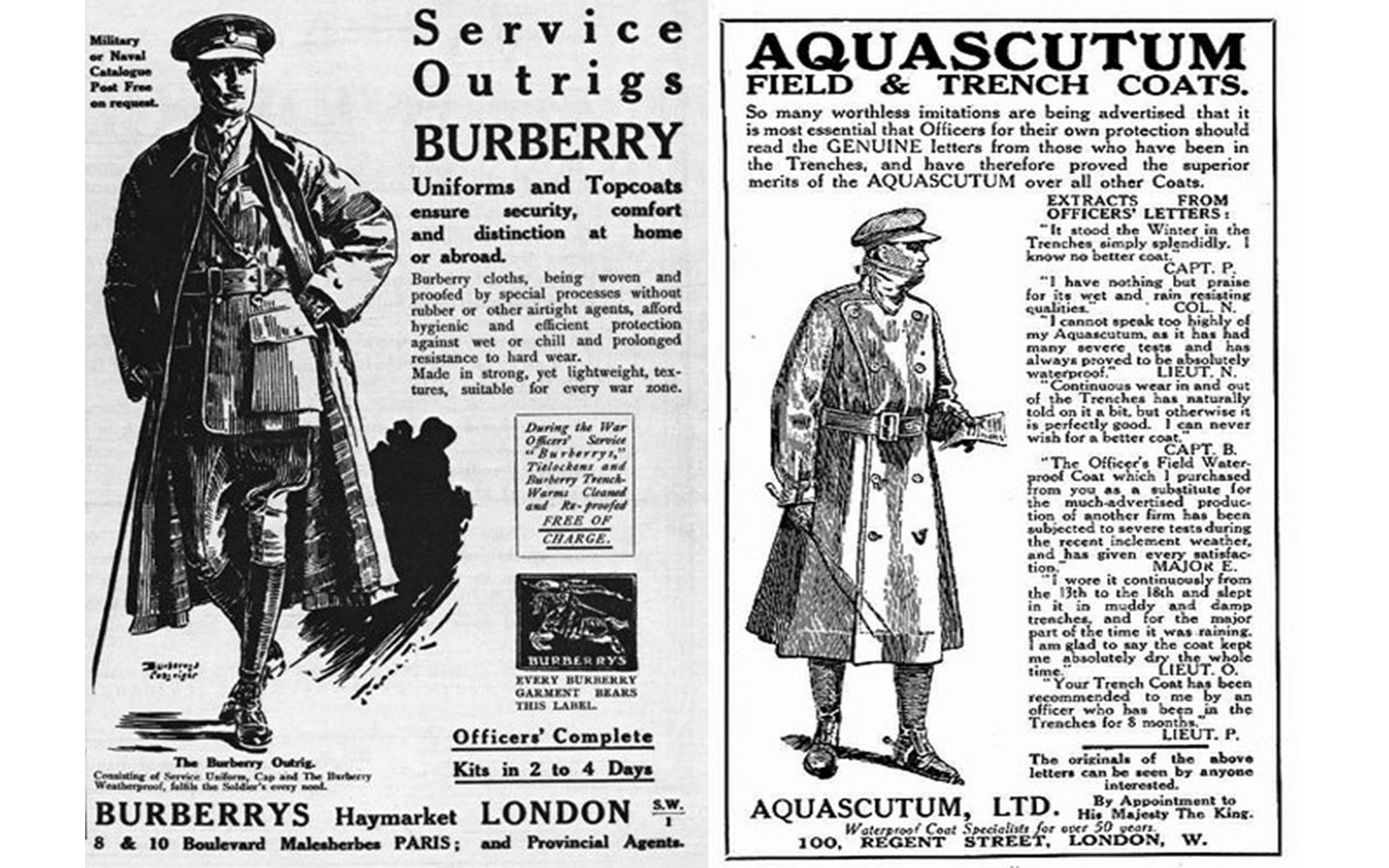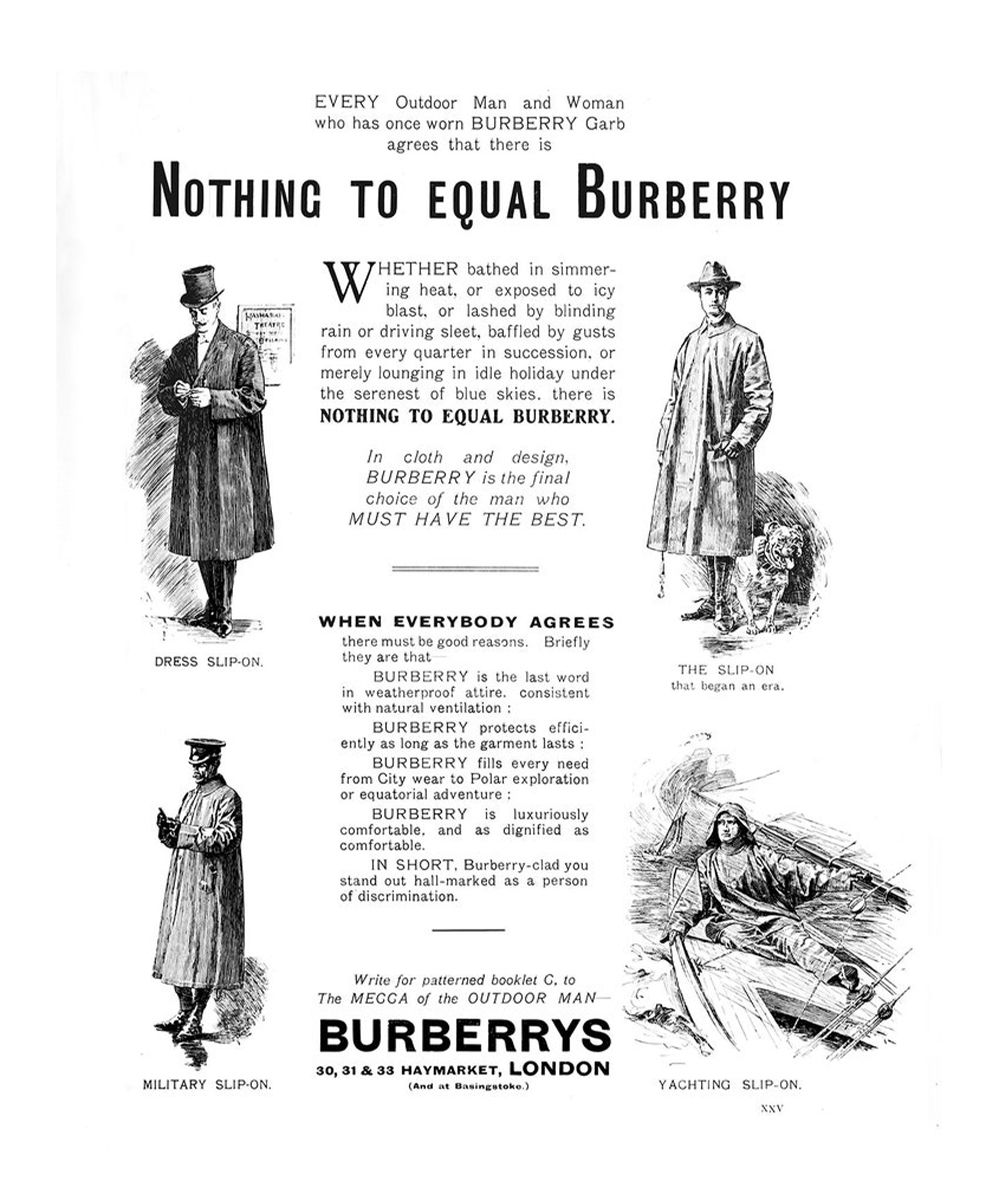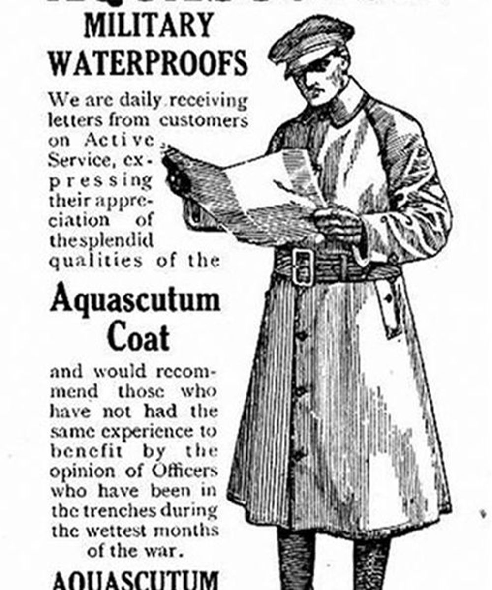 Later in 1853, John Emary - a Mayfair tailor - thanks to the evolution of technology and the development of more breathable rubber coatings, produced an improved raincoat, which he gave his company name, Aquascutum, and a few years later in 1856, Thomas Burberry - a Hampshire tailor - founded his namesake company by inventing Burberry's gabardine fabric in 1879, which is the most resistant and breathable fabric used for outerwear.