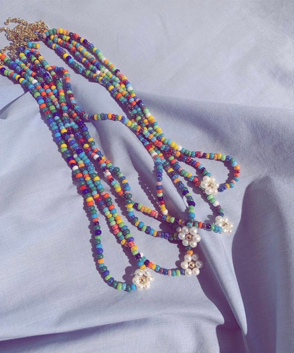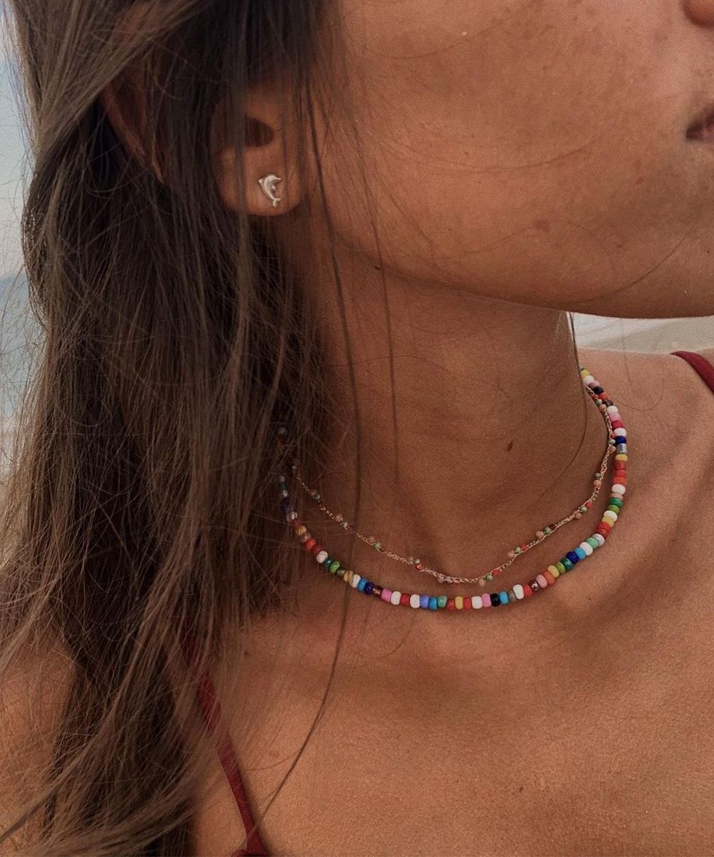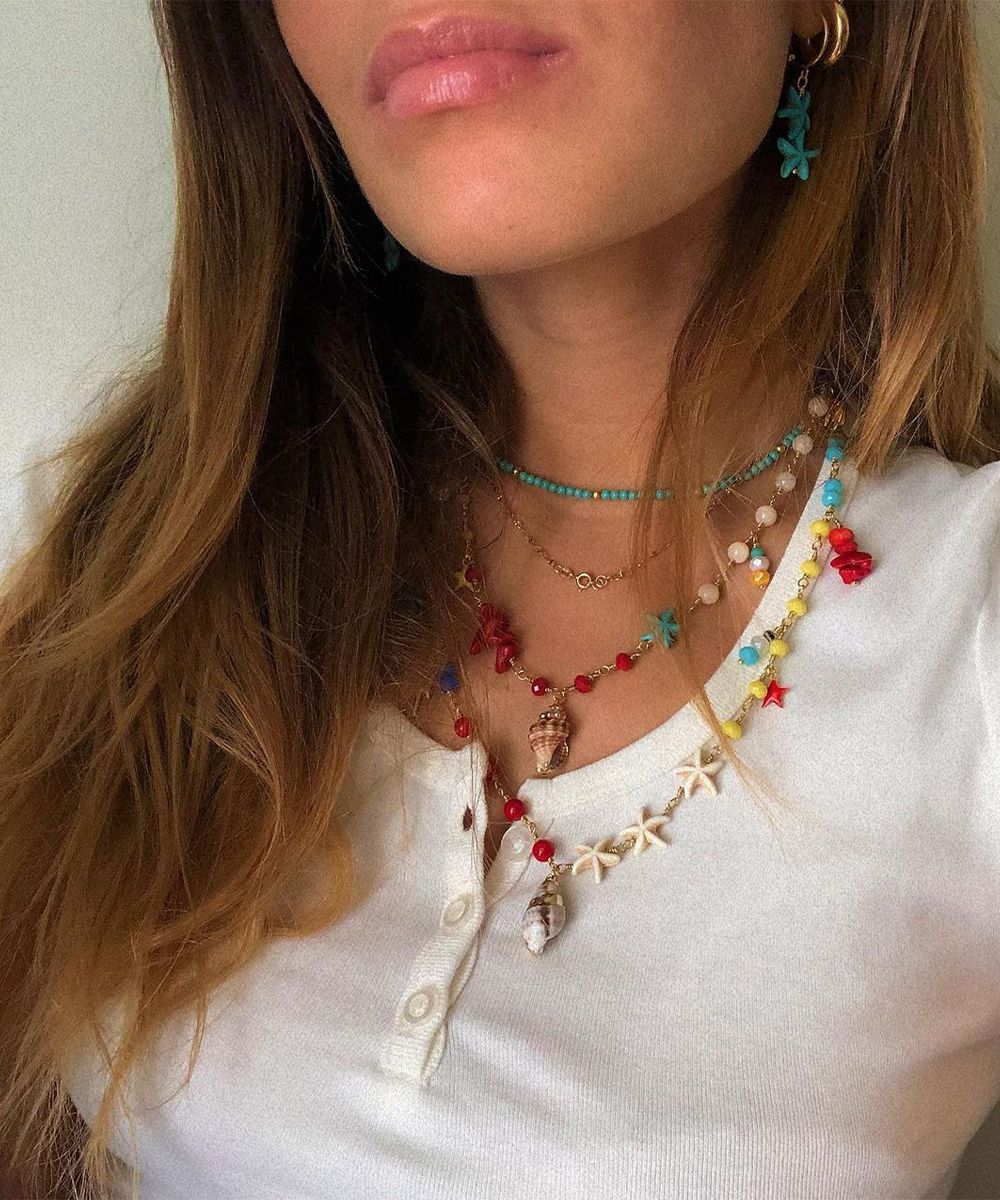 One of the most famous is éliou, an American brand that became famous thanks to Harry Styles who wore the necklace in the video clip of Golden, thanks to the attentive eye of his stylist Harry Lambert who finds the coolest and eye-catching trends. In Italy, the trend was brought into vogue by Jìjì, who literally made his creations "speak" thanks to lettering beads combined with lots of color and freshwater pearls. nss G-Club has selected for you the coolest brands of the moment. Just choose your favorite, buy it with a click and show it off all summer long!