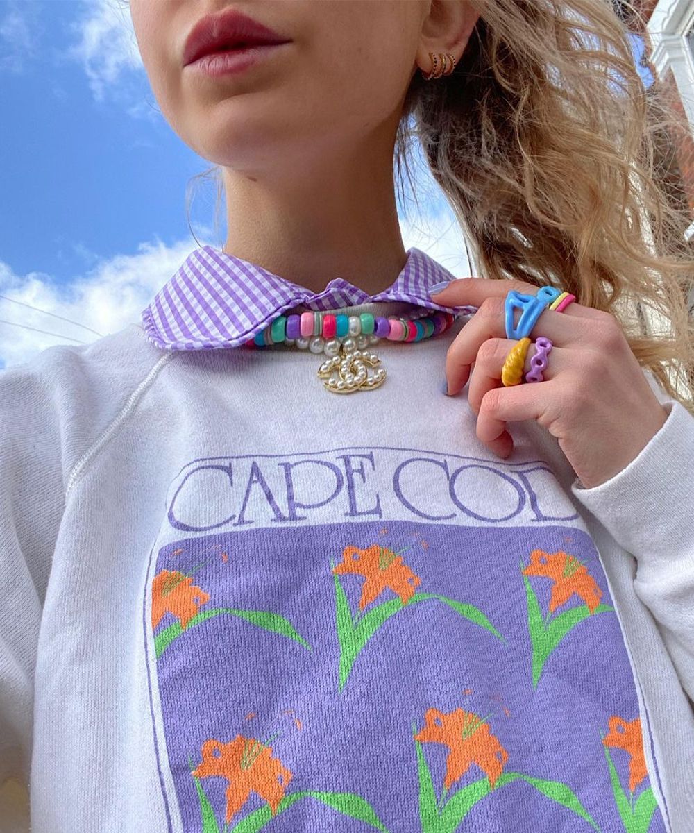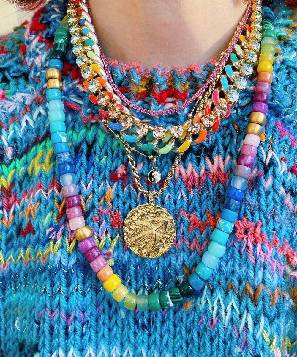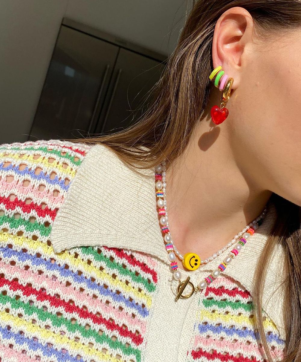 One of the most famous is éliou, an American brand that became famous thanks to Harry Styles who wore the necklace in the video clip of Golden, thanks to the attentive eye of his stylist Harry Lambert who finds the coolest and eye-catching trends. In Italy, the trend was brought into vogue by Jìjì, who literally made his creations "speak" thanks to lettering beads combined with lots of color and freshwater pearls. nss G-Club has selected for you the coolest brands of the moment. Just choose your favorite, buy it with a click and show it off all summer long!