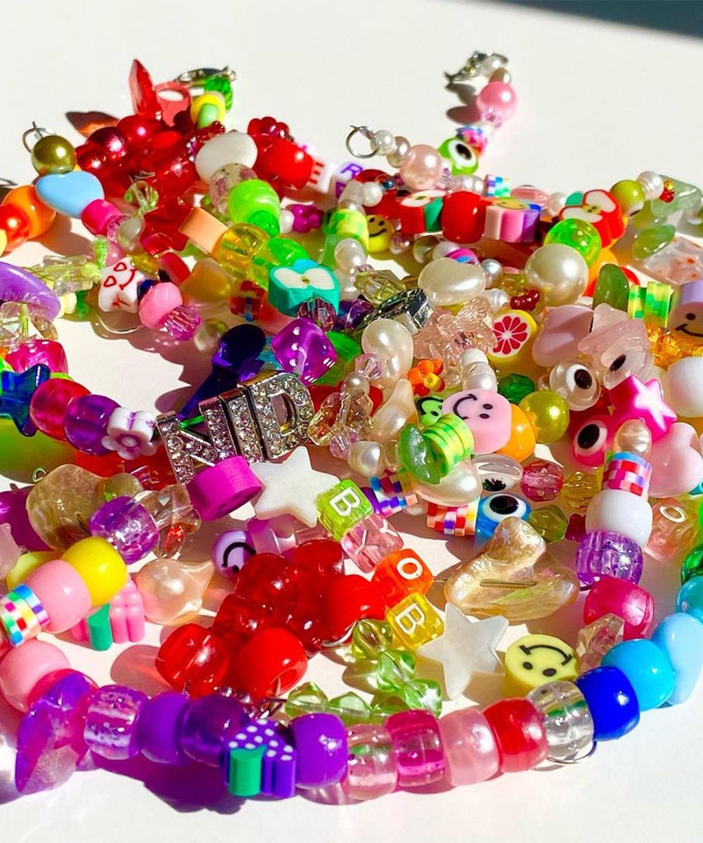 The beaded creations therefore do not want to lose their popularity. And with them a cascade of letters, bears, hearts, stars, shells, smileys, and words like amulets. The beauty of these chokers is that with the passing of the seasons - also thanks to the lockdowns - they have evolved, made more sophisticated and totally trendy. Even brands of the caliber of Bottega Veneta and Balenciaga have created their own version, highly branded and not very accessible, infuriating the Diet Prada moral watchdog precisely because of the unjustified prices for bijoux in simple resin beads, which on Depop or Etsy do not exceed the 100 euros. Yes, because the beauty of these creations is that they don't (necessarily) have to be signed. Indeed, anyone can create their own DIY version by purchasing the beads on Amazon. If you don't have the creative flair, no problem, Instagram is the right place to look for your favorite homemade beaded chains from small, really cool artisan brands.