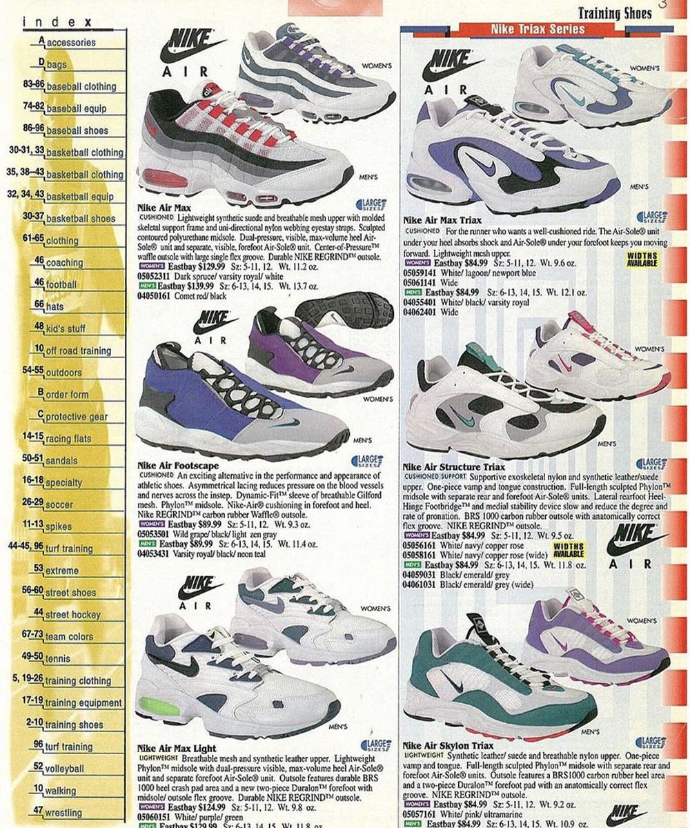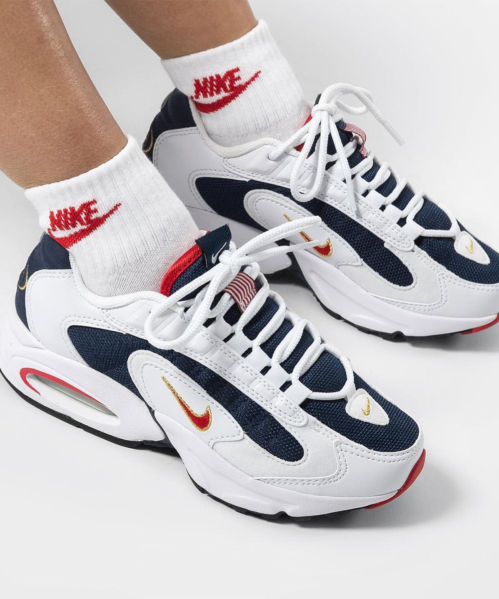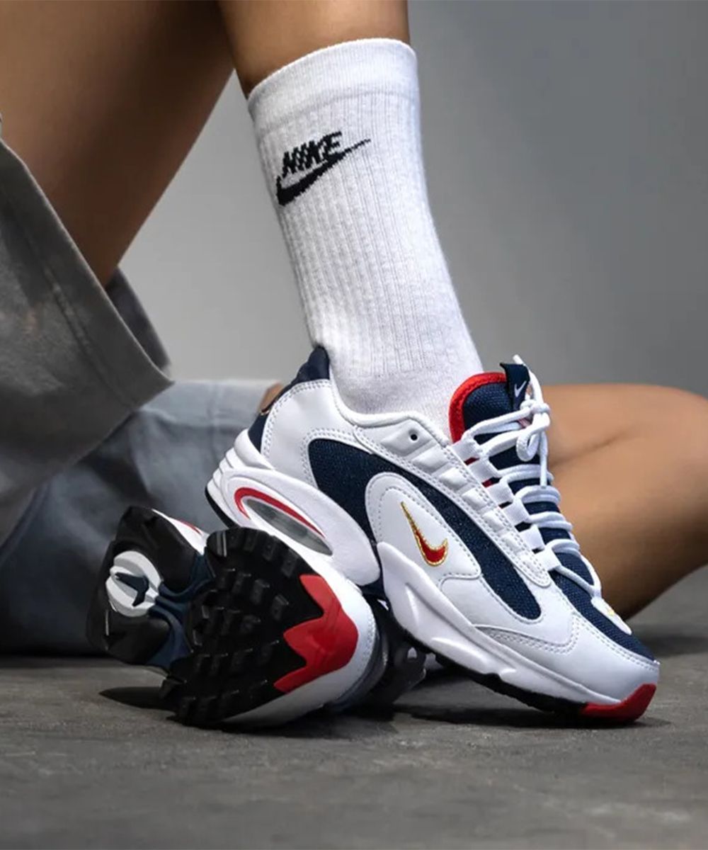 The first sneaker on this list is a reissue of Nike's Air Max Triax 96. The sneaker first debuted in 1996 and became popular among athletes when US sprinter Gwen Torrence rocked them on the cover of Sports Illustrated that year. The sneaker made a comeback 23 years later, remaining true to its original design, complete with a huge air unit. Nike continues to release a number of vibrant colorways, including Magma Orange and Ash Purple.