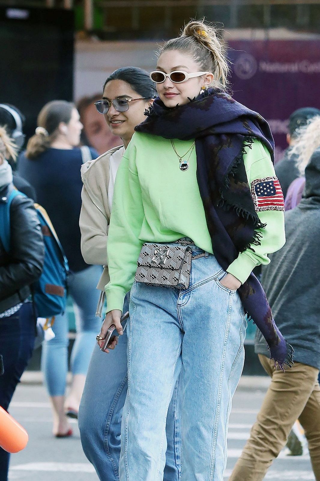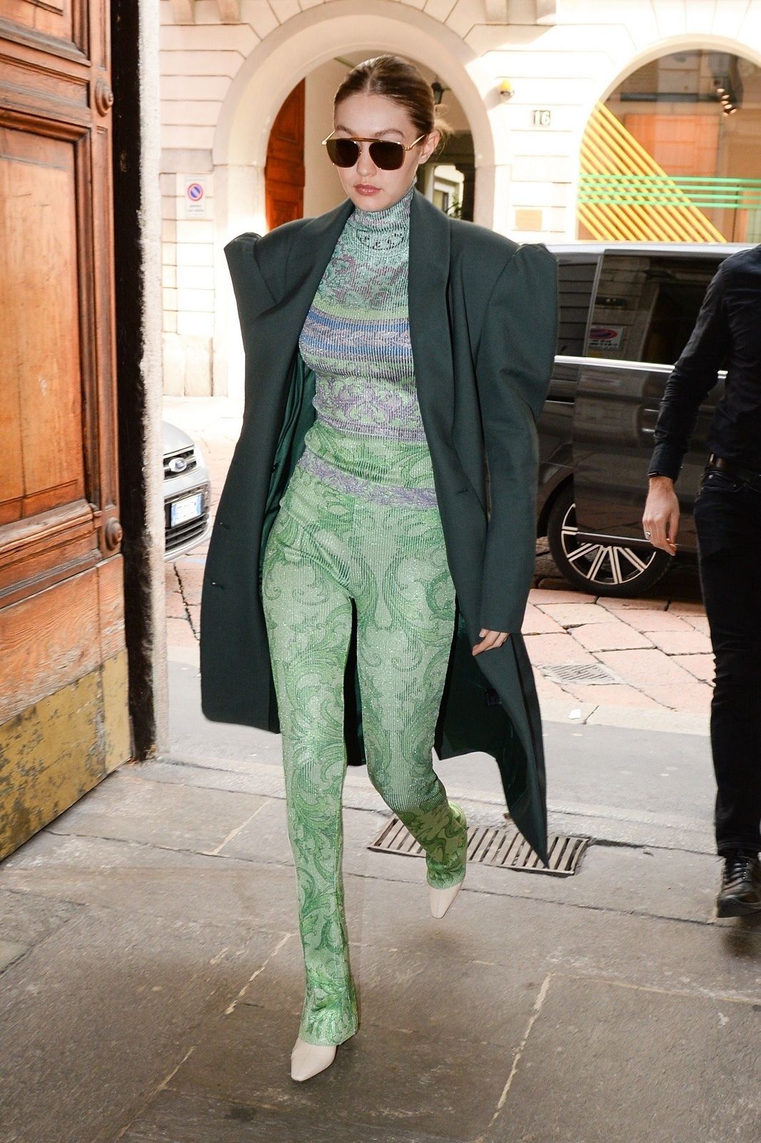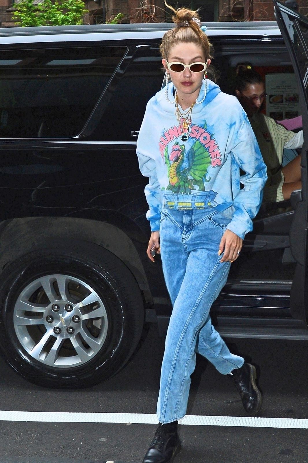 If her looks on the catwalk bring out her bombshell side and those as a mom combine functionality with a street twist, with the arrival of the warm season, the girlfriend's wardrobe reflects her sunny personality as a California girl. Among the signature styles that Gigi loves to wear in spring there are full-color looks, declined in a real rainbow of shades ranging from orange to light blue; high-waisted pants, often matched with crop tops and vintage t-shirts; tie-dye prints, which invade everything from jumpsuits to mini dresses; denim pieces in every shape and form. The must-have accessory? Sunglasses, a pair for every mood: with colored lenses, round, square, vintage, hyper-modern, designer, tiny Matrix-style or oversized like a true '60s diva.