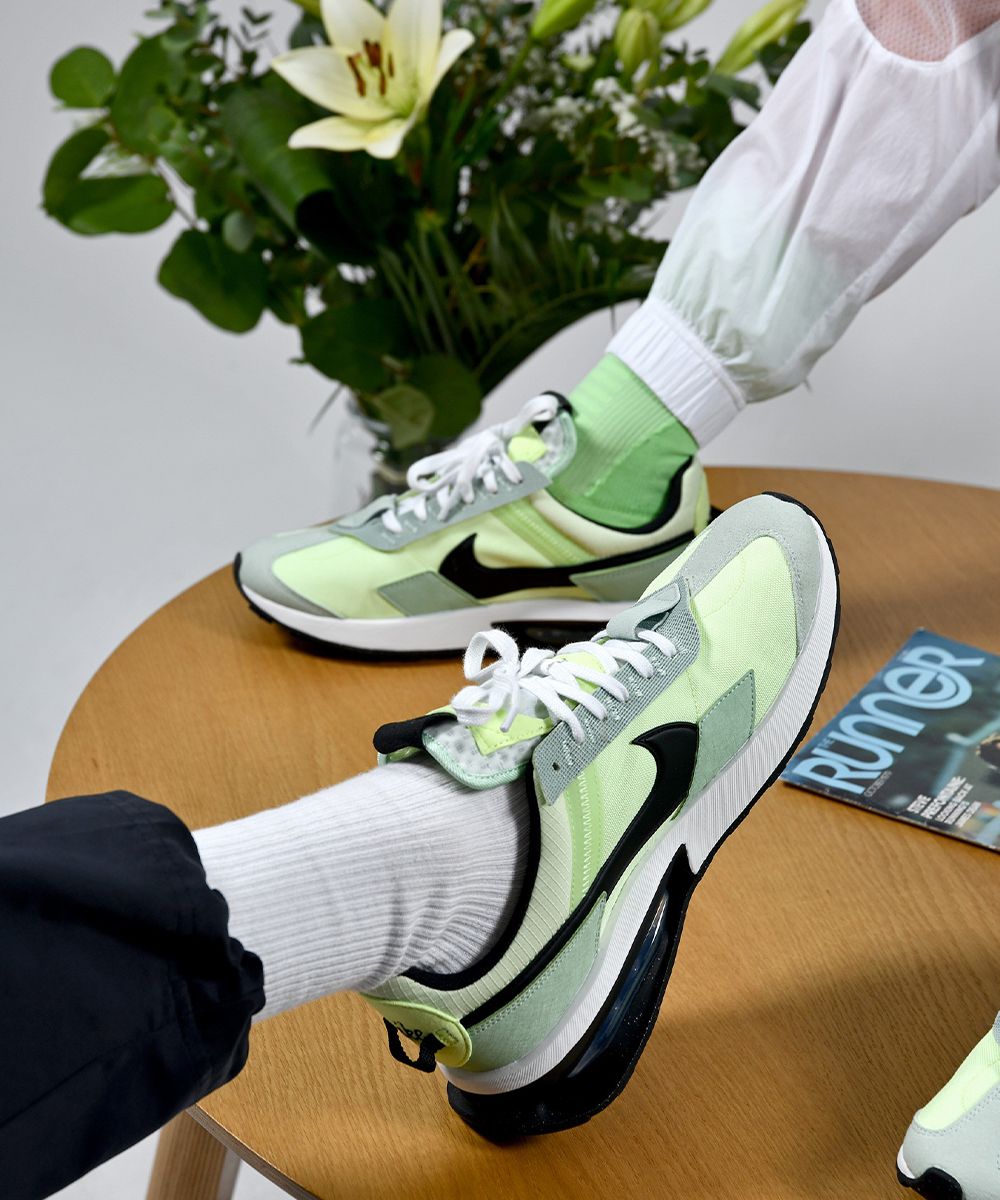 In celebration of Air Max Day 2021, Nike channels their "golden era" and future with the inclusion of a fully visible Nike Air heel unit for the first time in history. Because of the simple design, Nike was able to make the sneakers with at least 20% recycled materials. The upper, which resembles the daybreak silhouette, appears to be normal at first glance, but it is entirely made of recycled polyester. The exposed Air unit, however, is the main attraction, bringing the concept that Tinker Hatfield became renowned for to a whole new level.