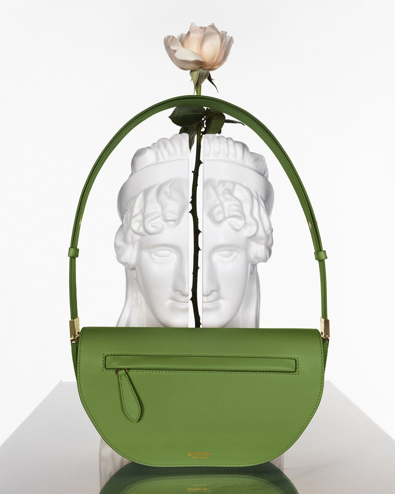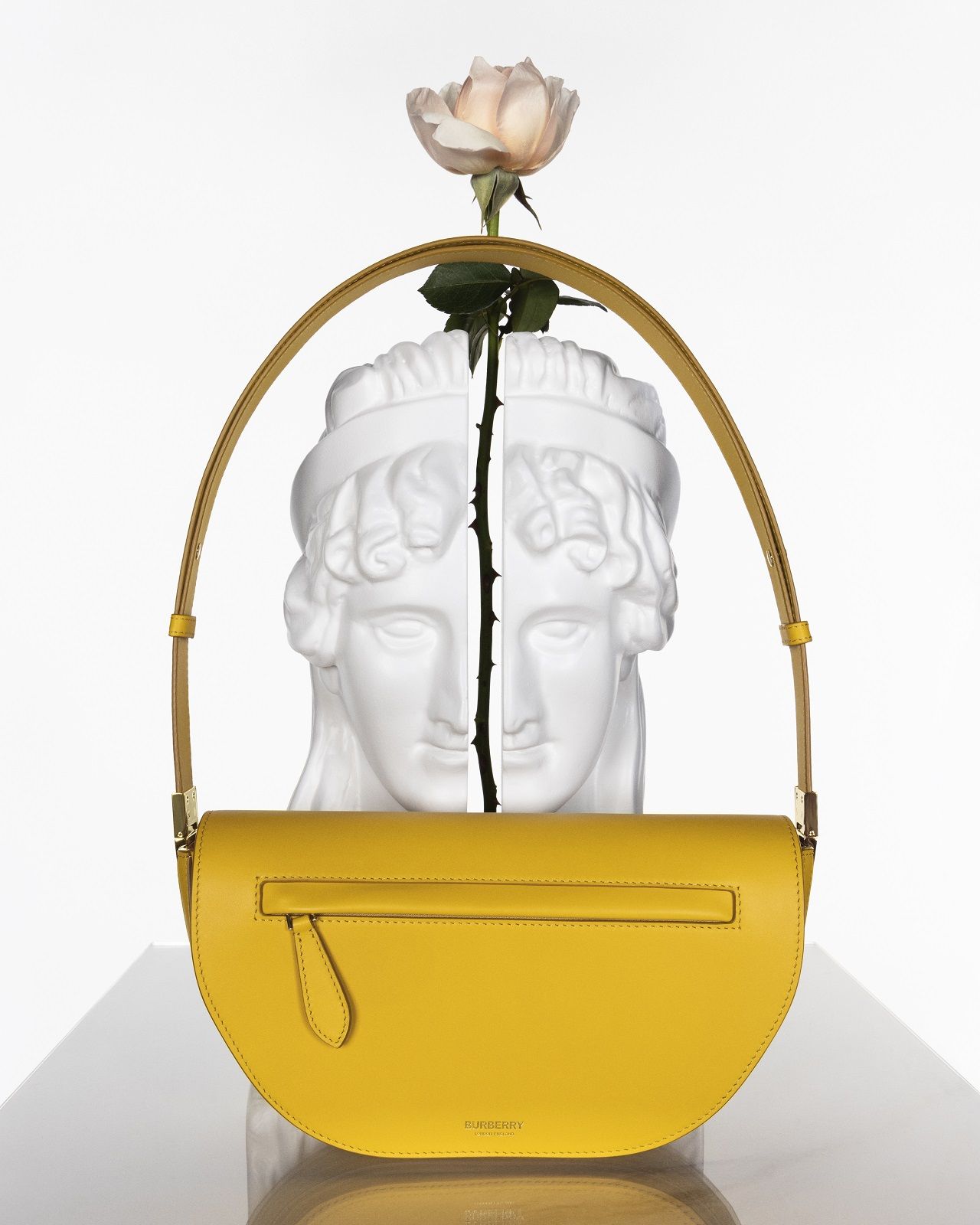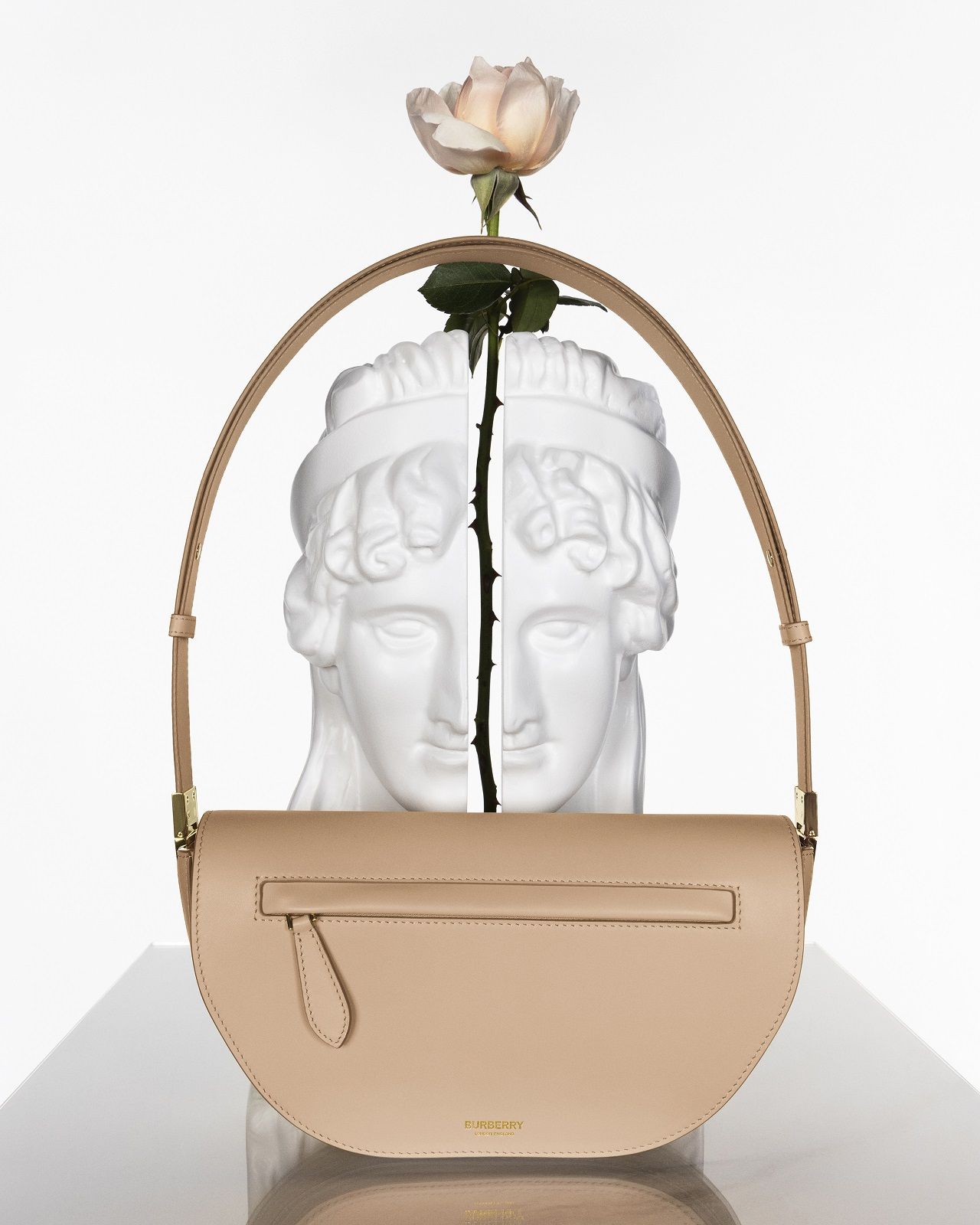 Looking at Inez and Vinoodh's shots, it's not only the brand ambassadors that catch the eye, but also Olympia with her crescent curve that looks perfect to be worn on the shoulder, adhering to the body. Crafted in Italy using the highest quality leather, the bag features a curved silhouette and gold or palladium plated metal elements engraved with the Burberry logo. Launched with a pop-up series (World of Olympia), it is available in the brand's stores worldwide and online in three sizes and many colors, from classic sand to marigold yellow or juniper green.
