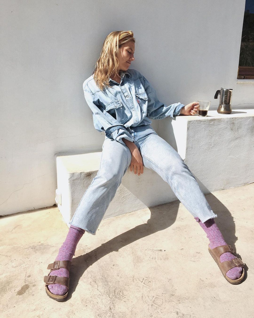 If in our country there are those who believe (exaggerating just a little) that the outfit is a real offense to the good taste for which Italians are famous worldwide, iconic brands such as Celine, Gucci or Prada and American celebrities have proposed the daring combo several times in recent years. If history reveals us the Ancient Romans wore sandals with socks, as early as 2000 years ago, as they did almost everyone before Allan Gant invented tights in 1959, much of the emergence of the art of the sandal + sock is due to it-girls like the Olsen Twins, Rihanna, Gigi Hadid, Kendall Jenner and Kim Kardashian. Each of them declines the two accessories according to their own style: in the winter more cosy, with the classic Birkenstocks, ribbed wool socks, overalls and oversized coats; while in the warmer season the socks are cotton or terrycloth, may be matched with the popular Adilette by adidas or a pair of Suicoke, cycling shorts and a bralette.