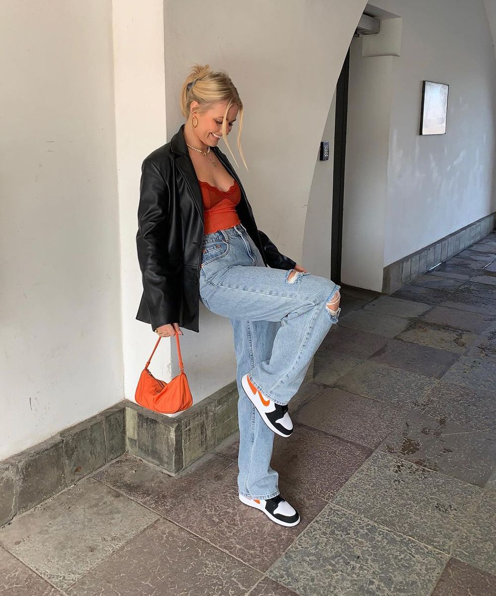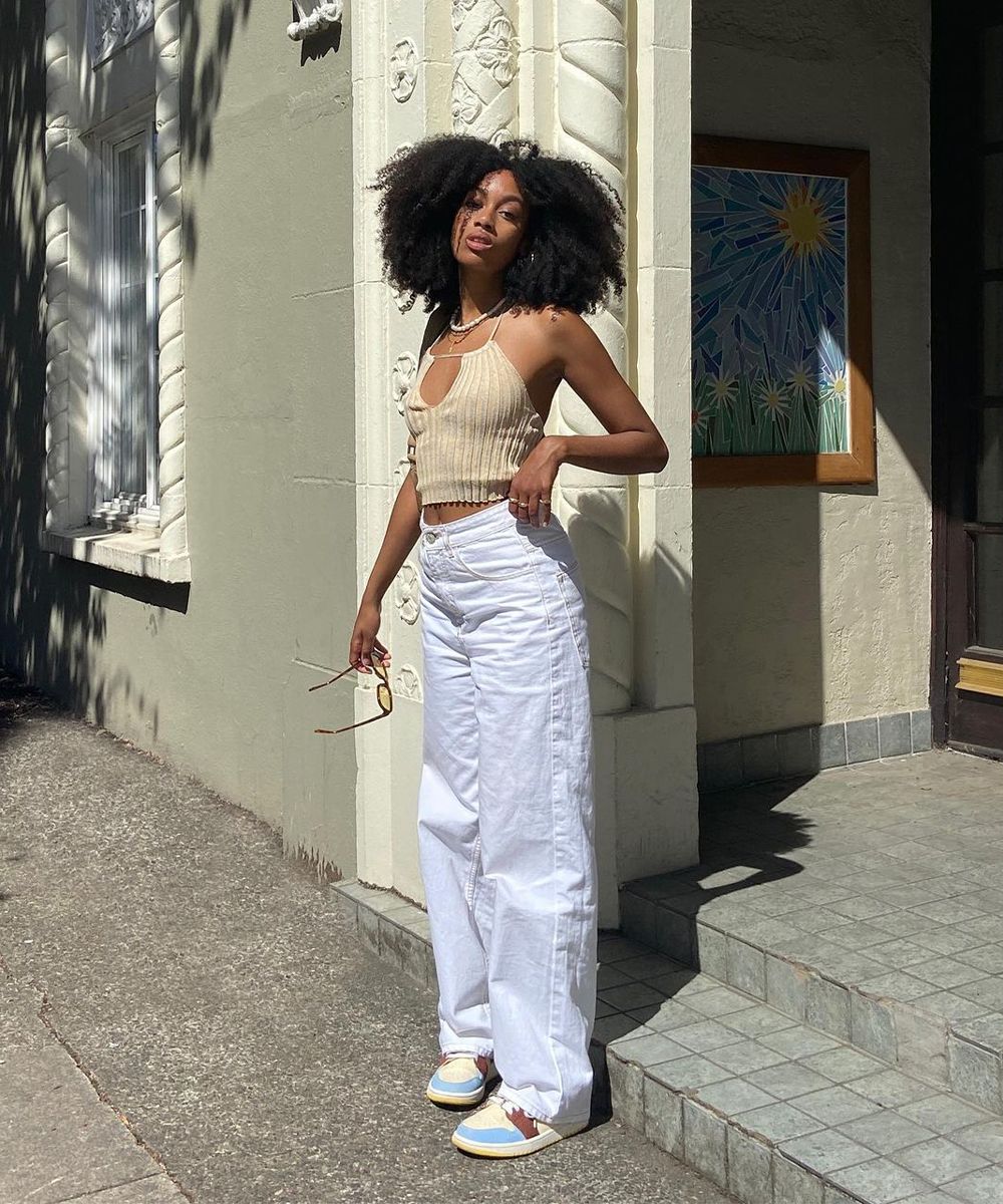 Even if the weather forecast for the next few months is for warmer days, there will always be that one cooler day or evening that forces you to return to full leg coverage. That's where wide leg jeans come to the rescue. The wide leg silhouette has become a year-round staple in recent years, as the baggy style allows for more breathability and comfort while still providing coverage and draping perfectly over Air Jordan 1s.