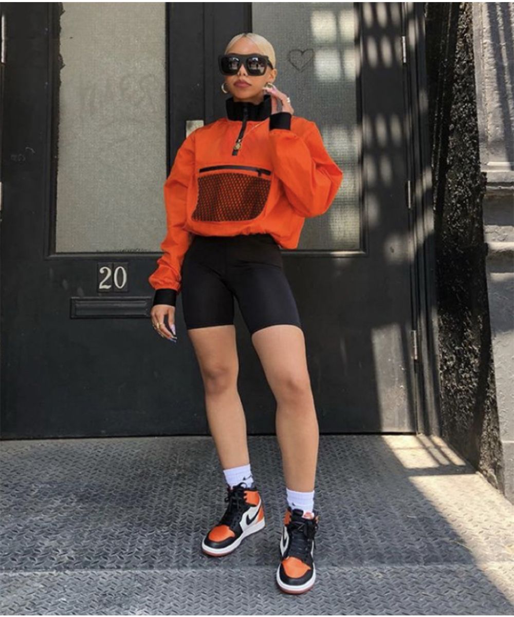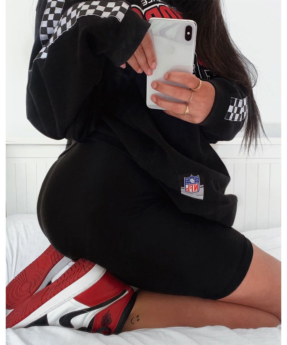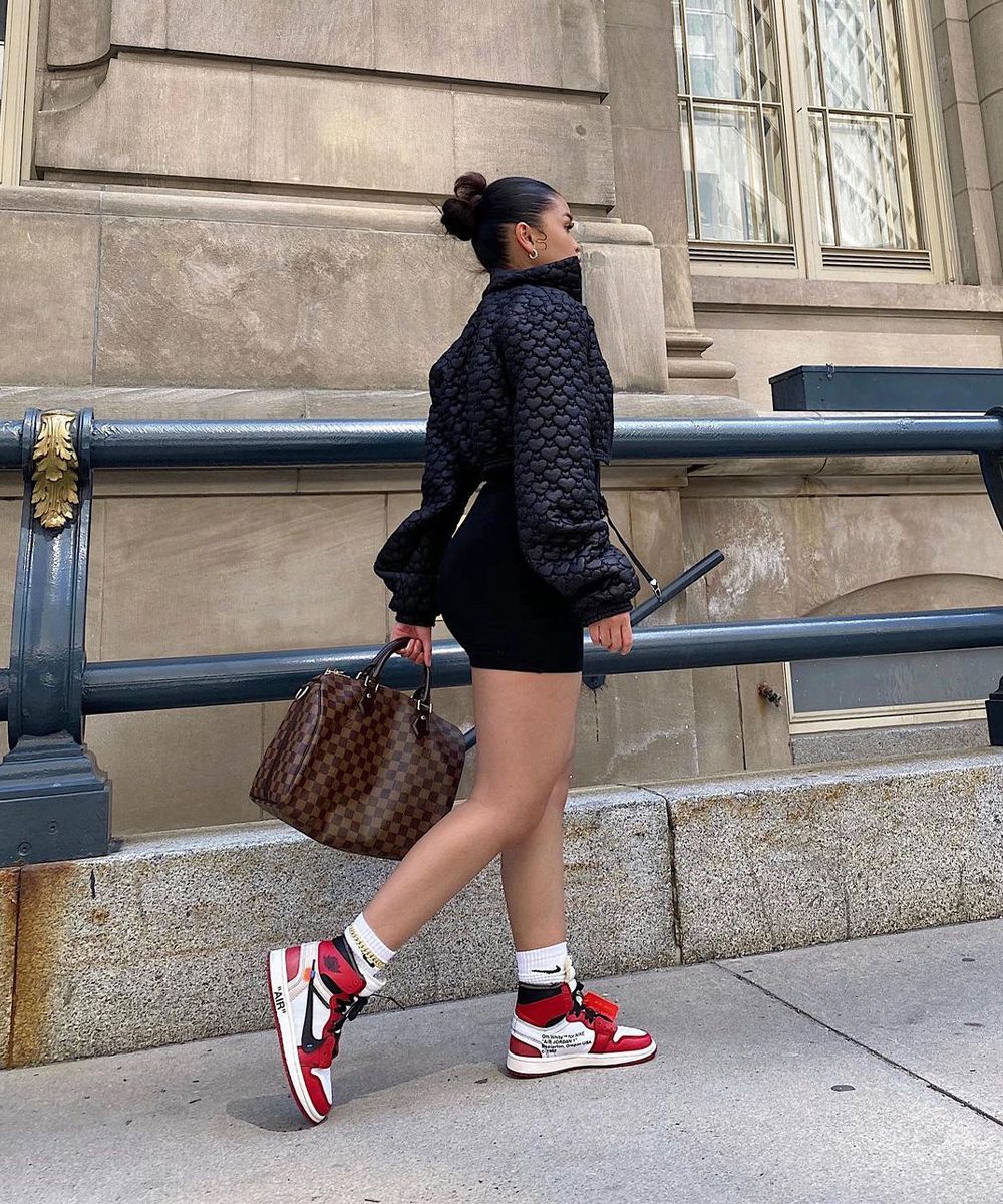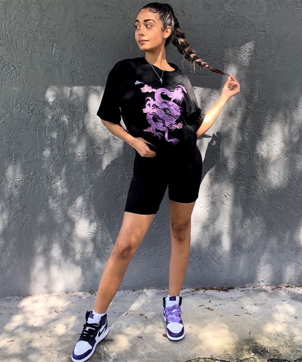 Biker shorts are another short style; they're a great option if you're going for a more athletic vibe. Biker shorts are just not for cyclists: they're the perfect mix of athletic and casual, making them ideal for sports as well as recreating the timeless 90s aesthetic with an oversized sweatshirt, chunky crew socks, and a pair of Air Jordan 1s.