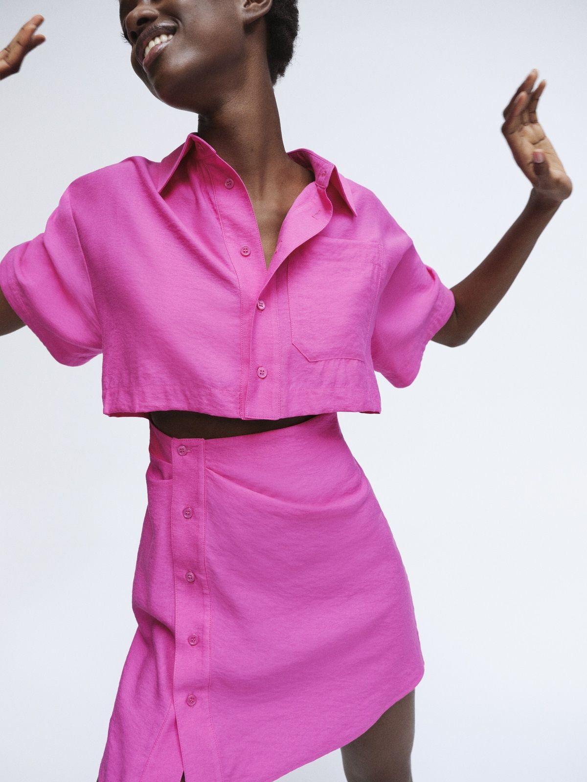 Hot pink and orange give an energetic, fun and feminine twist to the French brand's clean shapes. Mixed together, the 13 pieces of the capsule recreate the perfect summer wardrobe, for every occasion: the crop shirt can be matched with shorts, tops and leggings fit the body giving a sensual twist to every athleisure look, the blazer is the passepartout item, while the mini-dress is perfect for a romantic date or for a dinner at the restaurant with friends. The accessories, from Chiquito and Bambino bags to sandals, are tinted in the same pop shades.