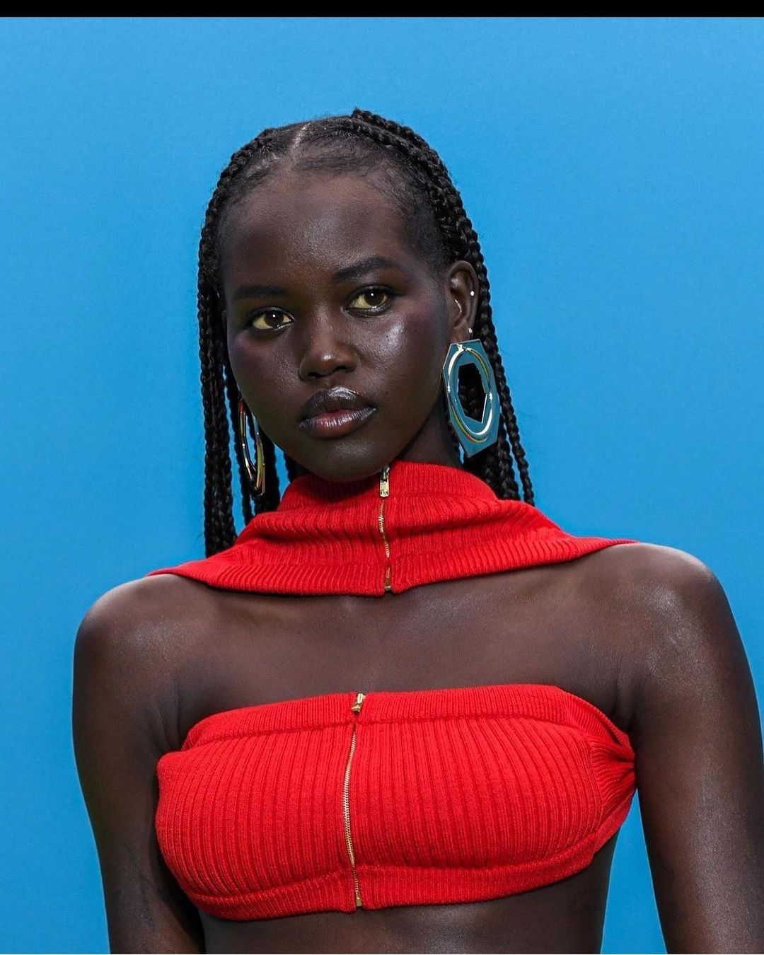 A year after the wheat fields of L'Amour, Jacquemus is back with La Montagne, a see now buy now show full of references to the world of hiking. Abandoning the bucolic atmospheres, Simon Porte Jacquemus recreates a sort of abstract still life version of a hiking trail inside a hall in Saint Denis, painting the walls sky blue and the floor as green as a meadow of grass. In this scenario that seems to have come out of a child's drawing, in front of a small group of guests including the singer Rosalía and Alice Pagani, models alternate, from Kendall Jenner to Bella Hadid, from Jill Kortleve to Adut Akech, turned into colorful and sexy hikers.