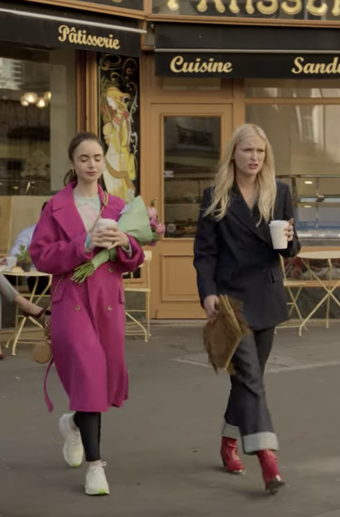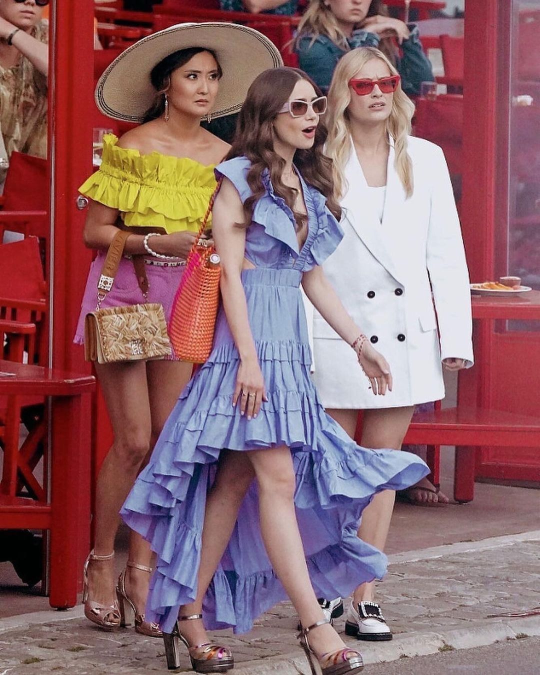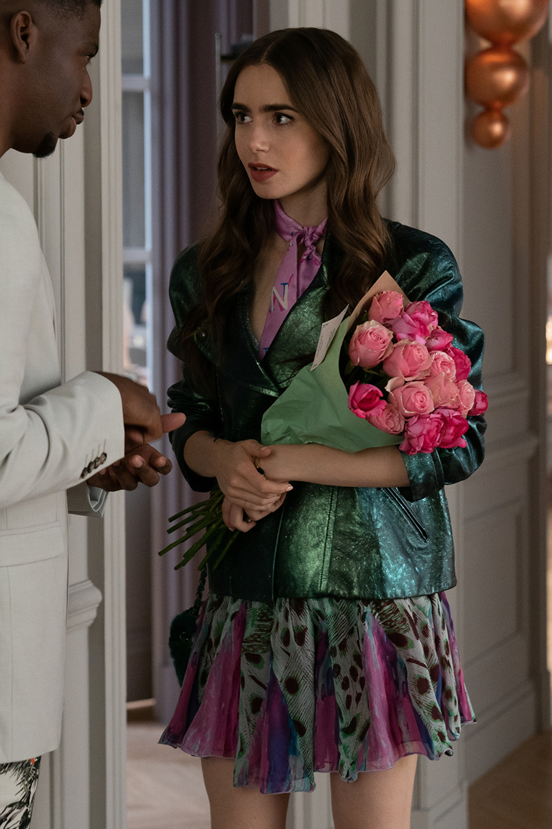 Emily Cooper is lively, self-confident even wearing the snake print combined with colorful flashes and the brightest fuchsia. Patricia Field wanted to give the most courted girl of the moment a true and decisive style, which often makes style slips like the red faux fur charm larger than the bag that she wears on her arm. Emily is as sincere as Carrie Bradshaw, she often wears what she finds in the wardrobe inspired by the styling game of the moment. And she does one thing that the Carrie we all know would never have done for any reason: rest her stilettos to go get a bouquet of flowers or have breakfast under the house, preferring a pair of cozy sneakers. But then she moved to Paris.